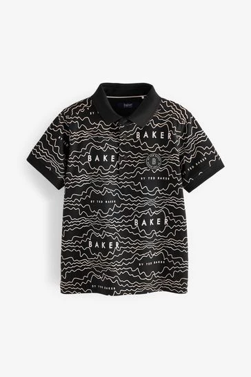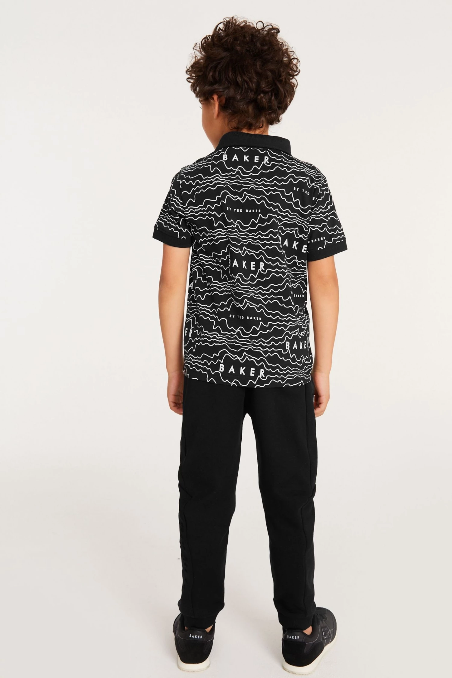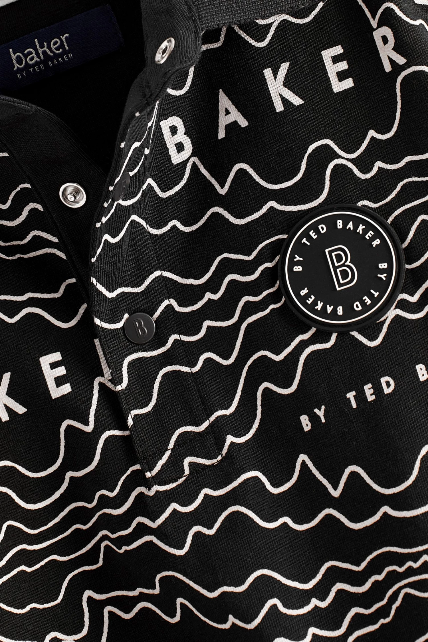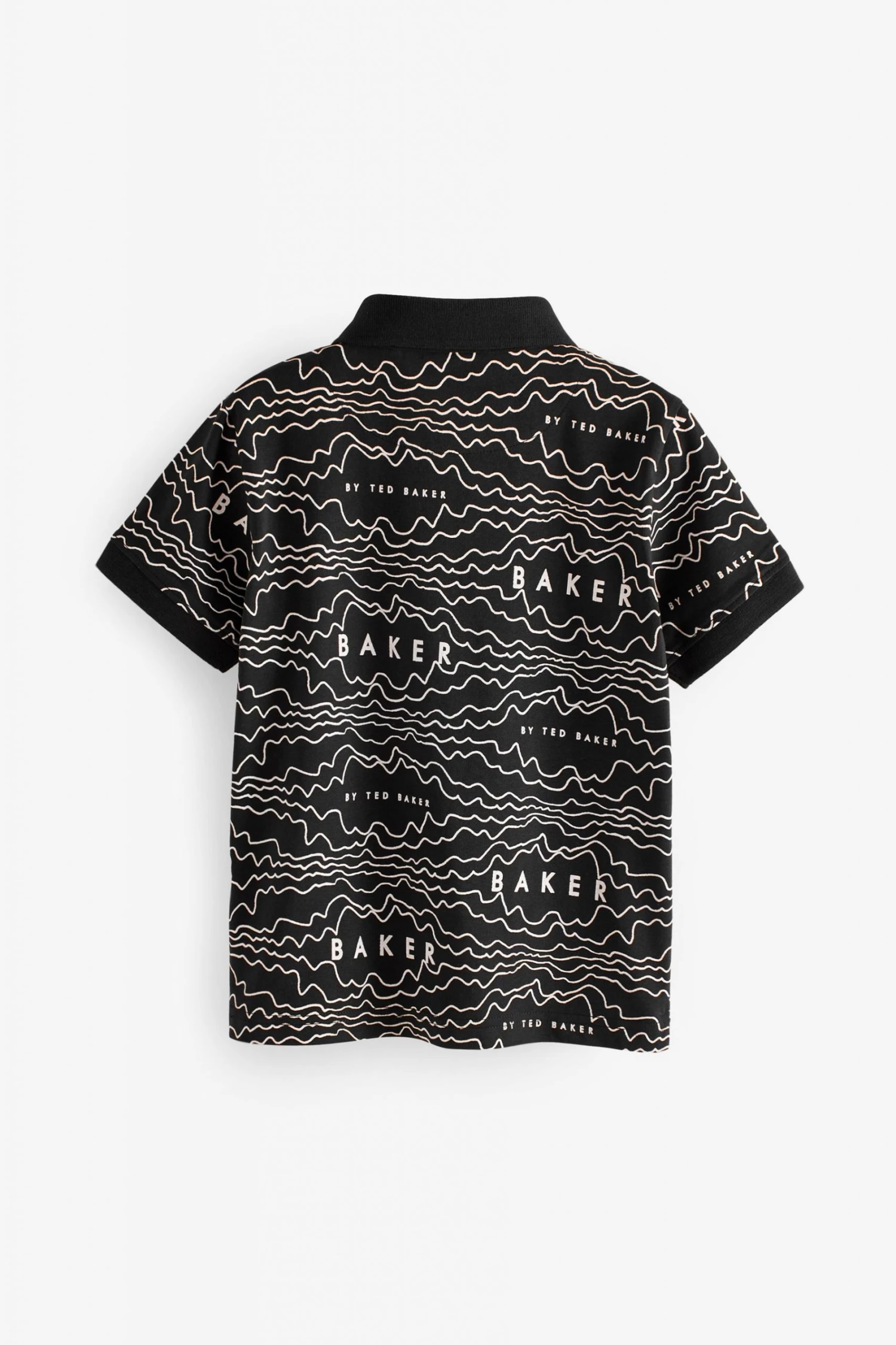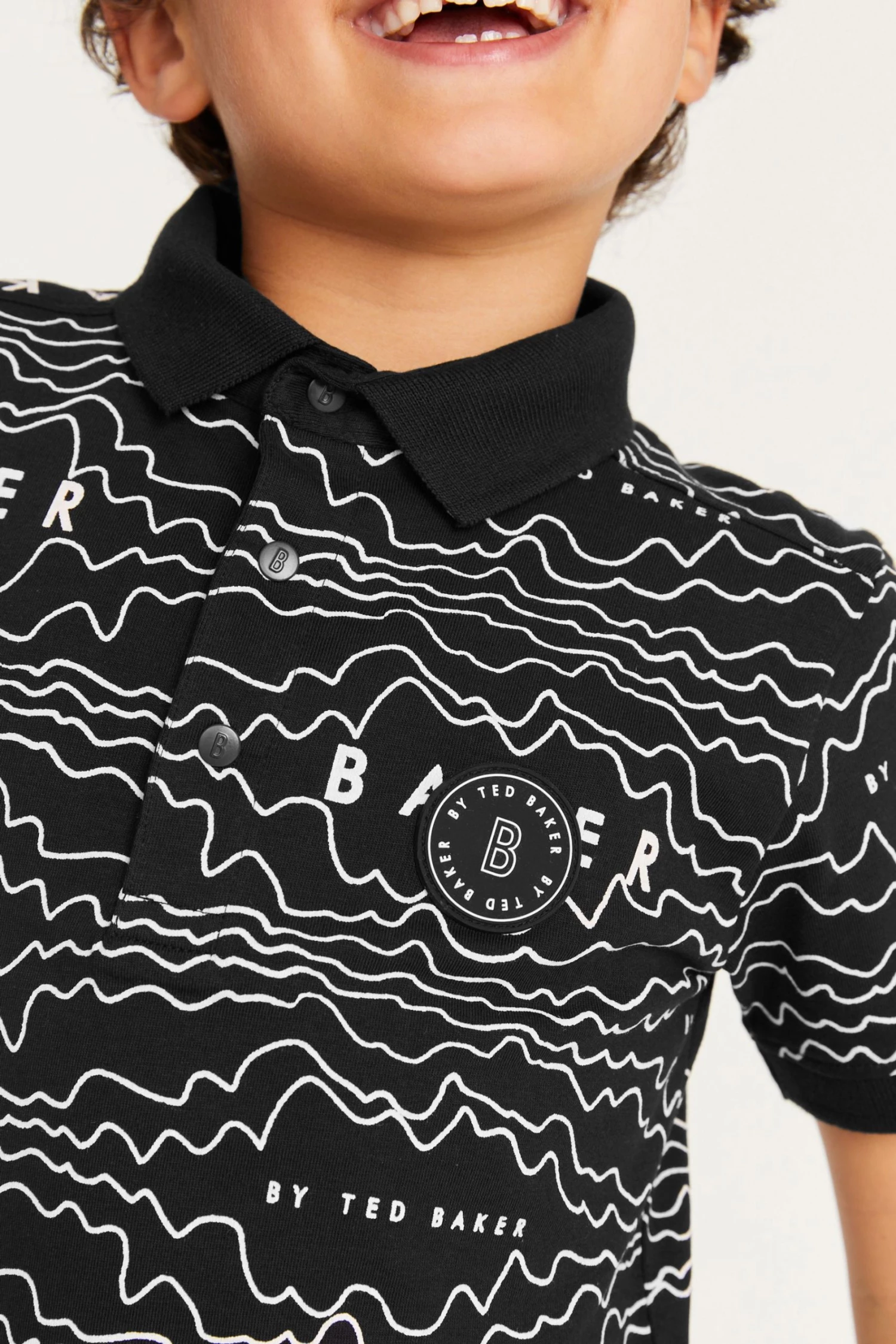 Super cool and ready for summer, this polo shirt from Baker by Ted Baker brings a whole new vibe to their sunshine wardrobe. Featuring new all-over branded print, it has a neat 3 snap fastening at the collar, short sleeves and is made from a luxe textured cotton that makes this t-shirt lightweight and breathable. The Ted Baker badge sits proudly at the chest for a luxe touch to his outfit.