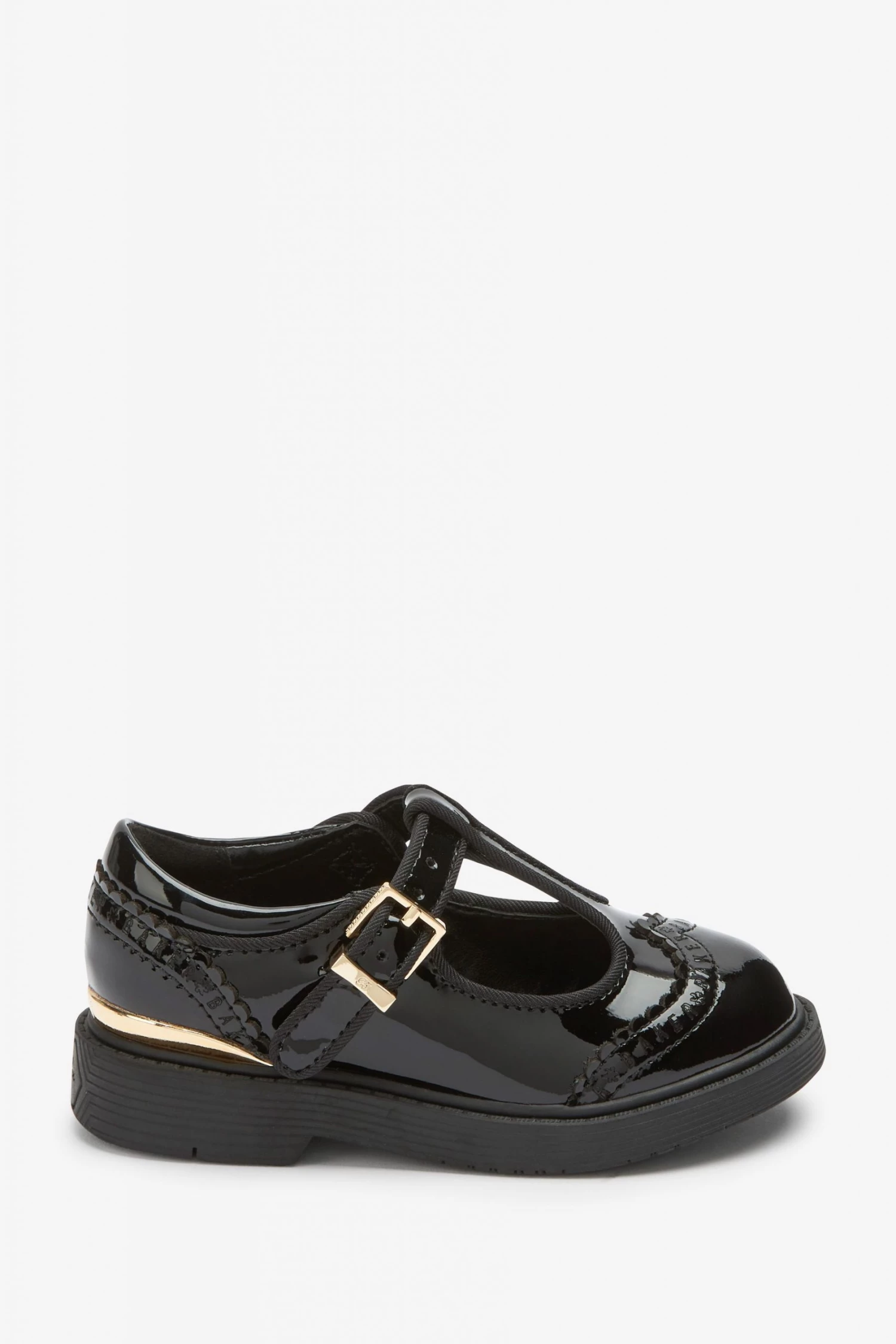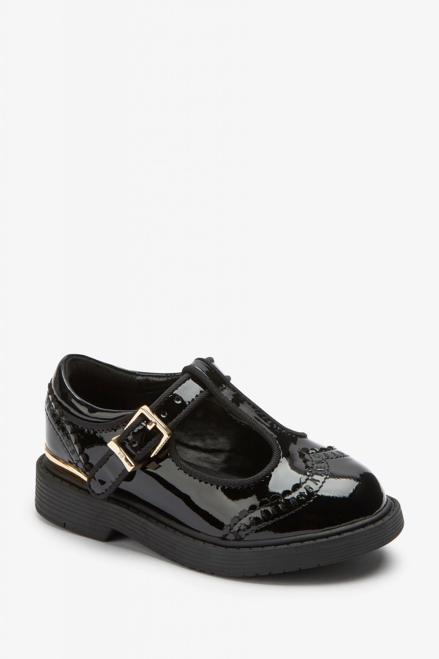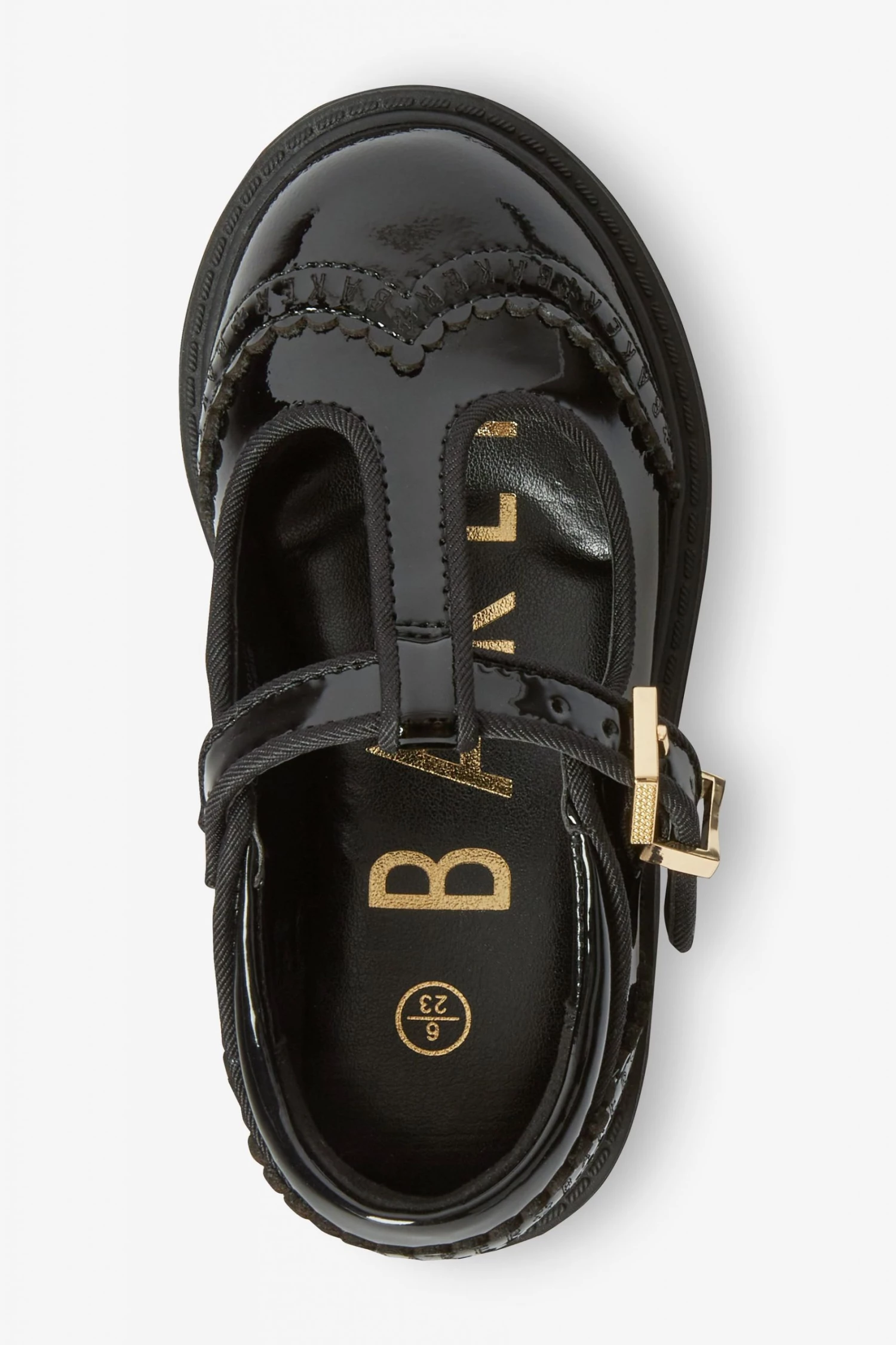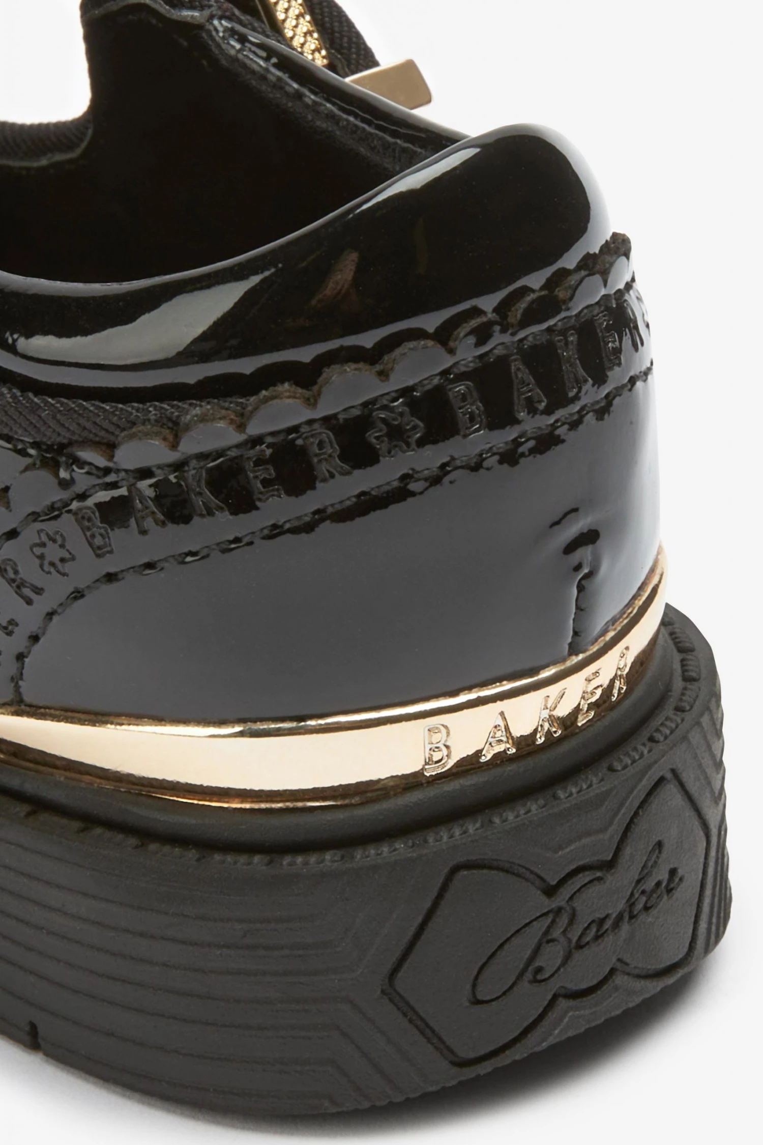 These black patent T-bar shoes from Baker by Ted Baker feature luxe gold branded hardware. Designed with durable soles and cushioned heel counters for ultimate comfort, they have branded scallop brogue detailing. Made from real leather.