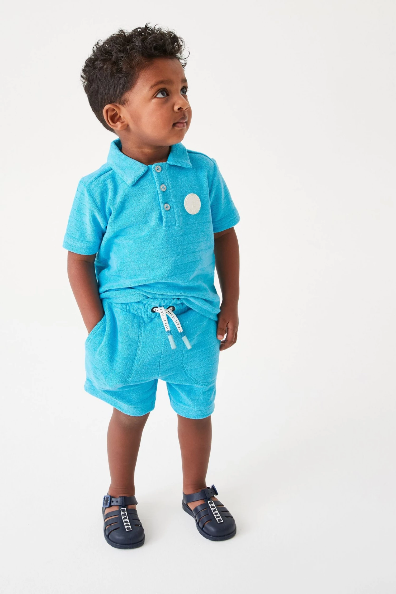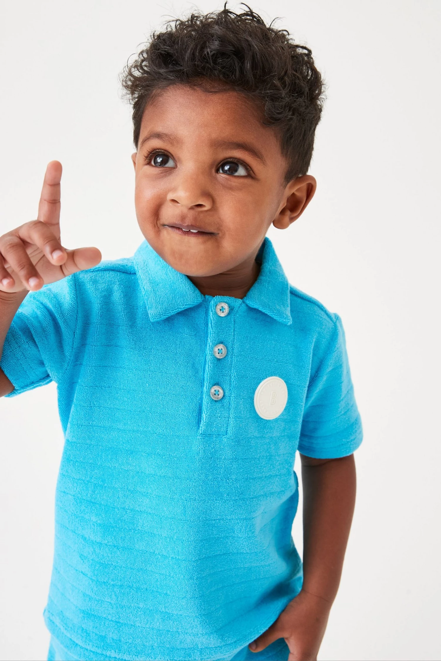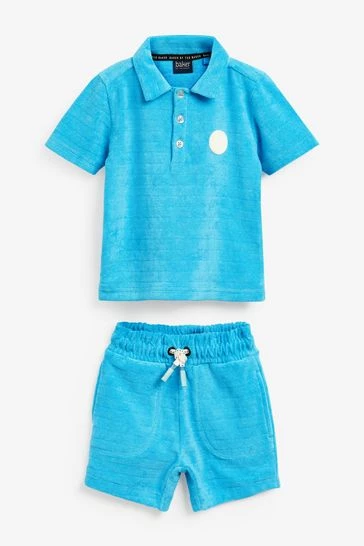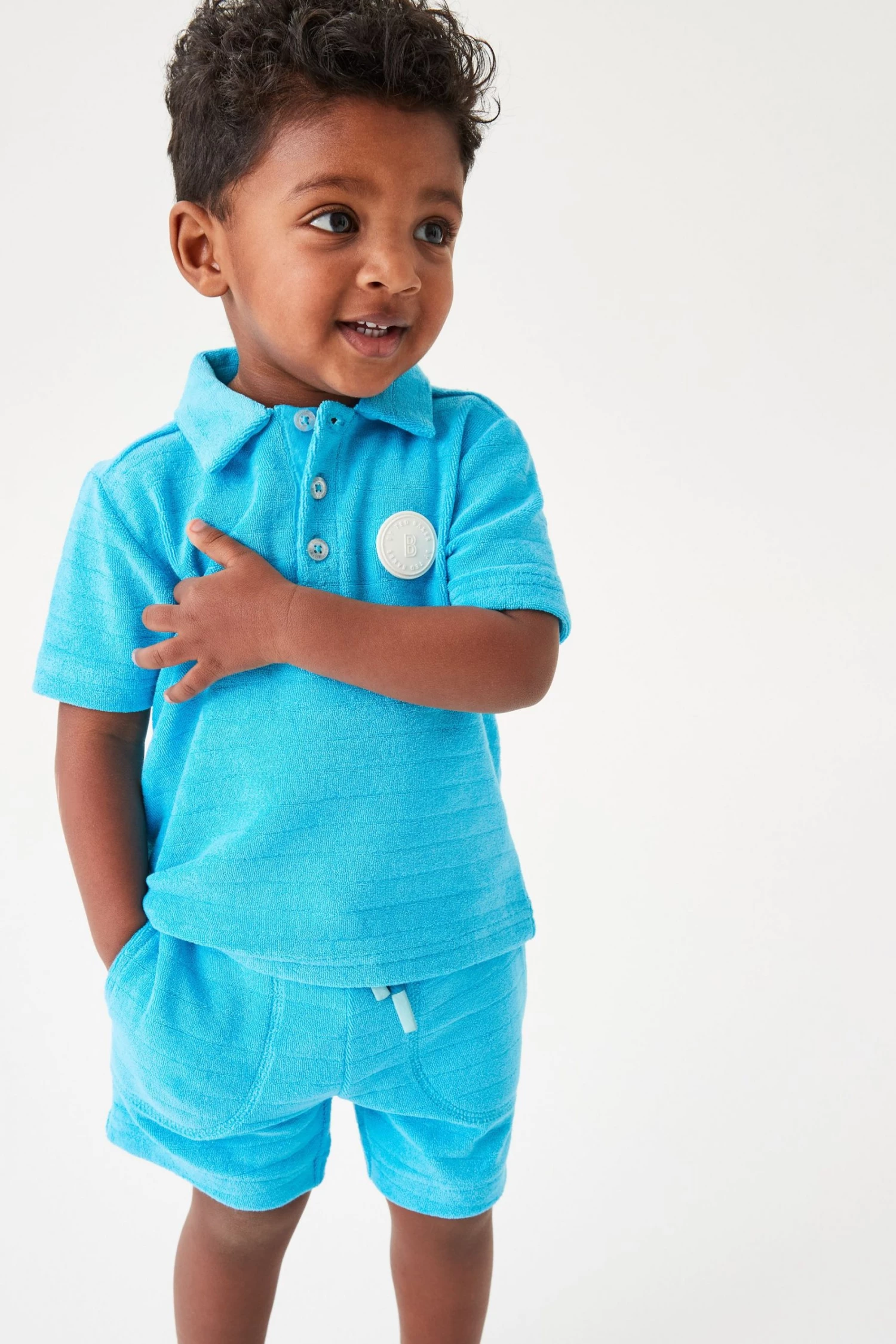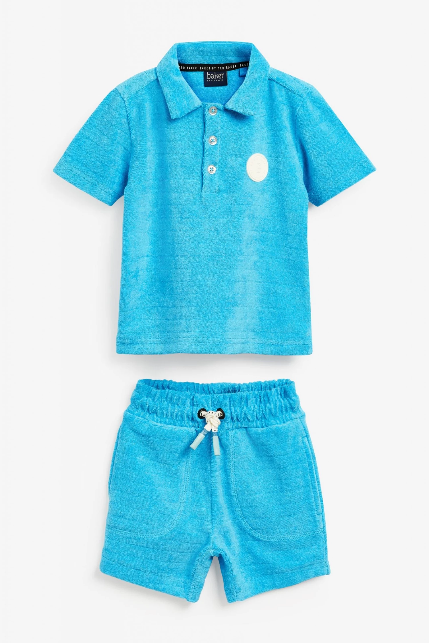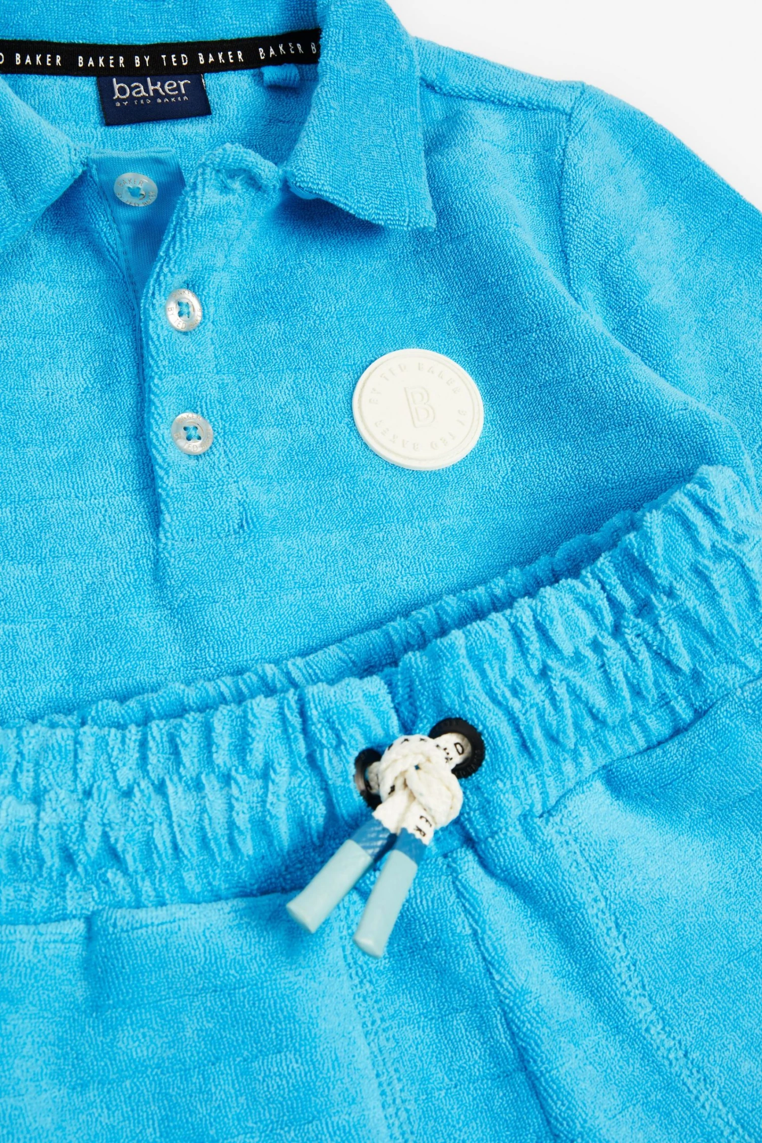 A sporty style with an elevated finish, this boys blue polo shirt and shorts set from Baker by Ted Baker is designed in a soft jersey with signature branded chest badge.
