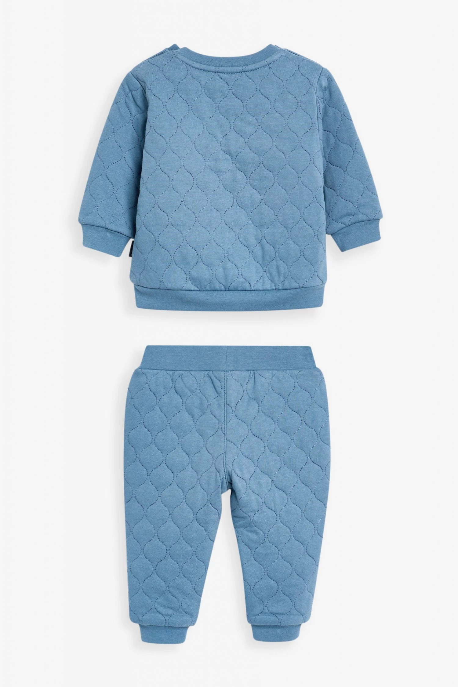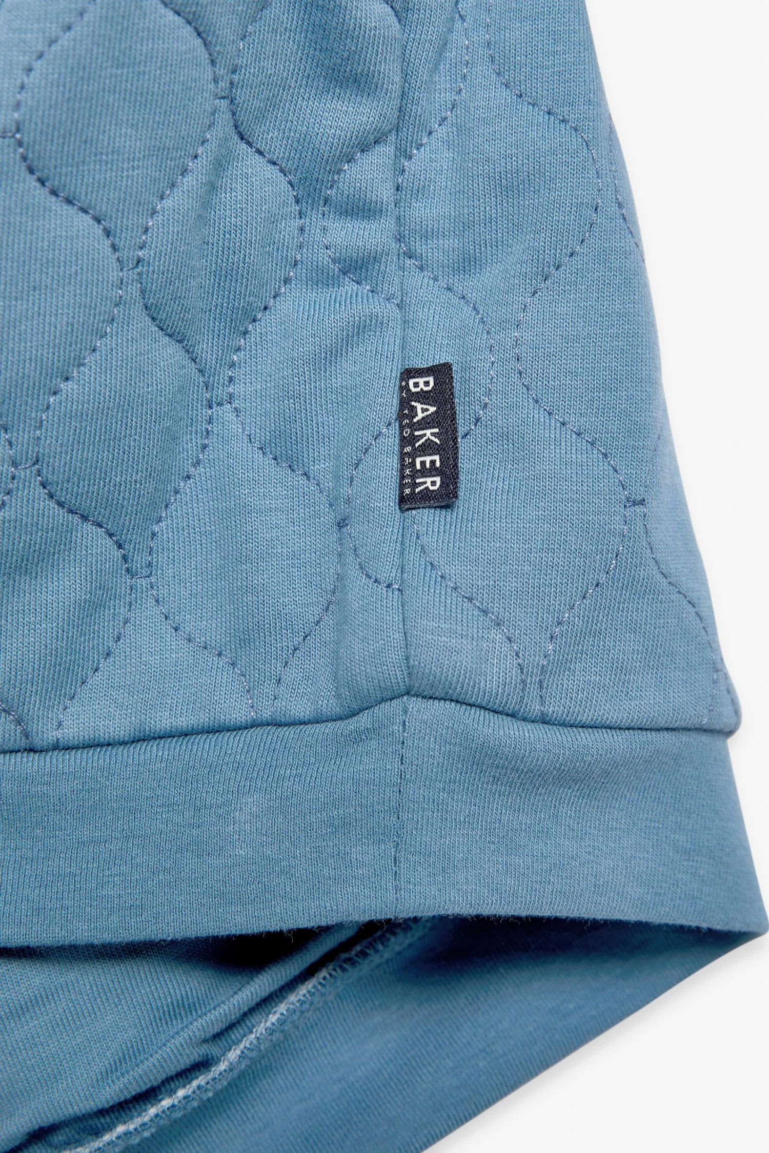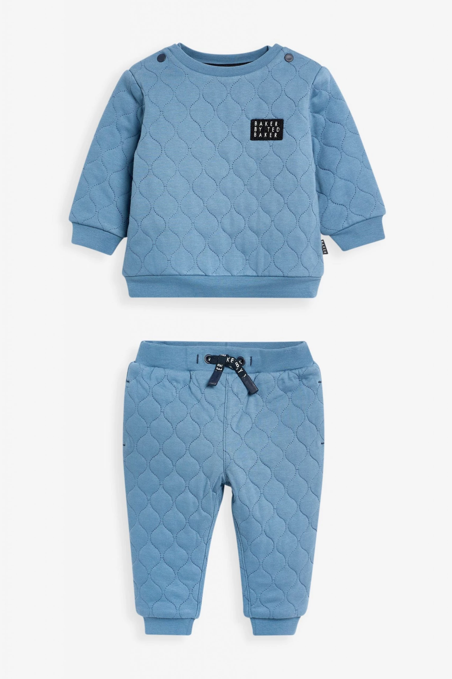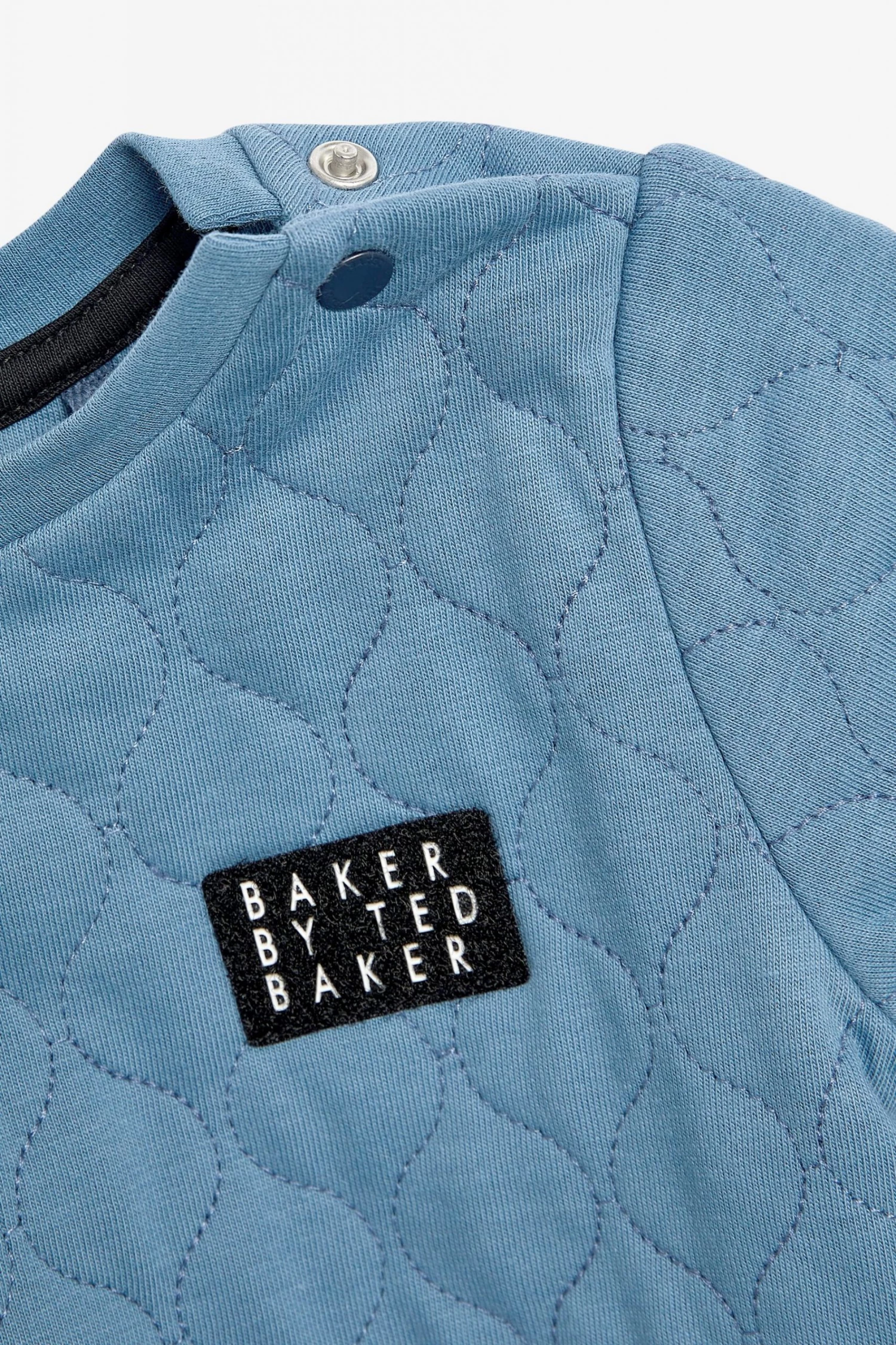 This cute 2 piece set from Baker by Ted Baker is made from soft cotton in an adorable quilted effect with warm wadding. The long sleeve sweat top features branded badge to the chest, branded seam tab and shoulder popper fastening for easy dressing. The cuffed joggers have a pull-on elasticated waistband with branded drawstring.