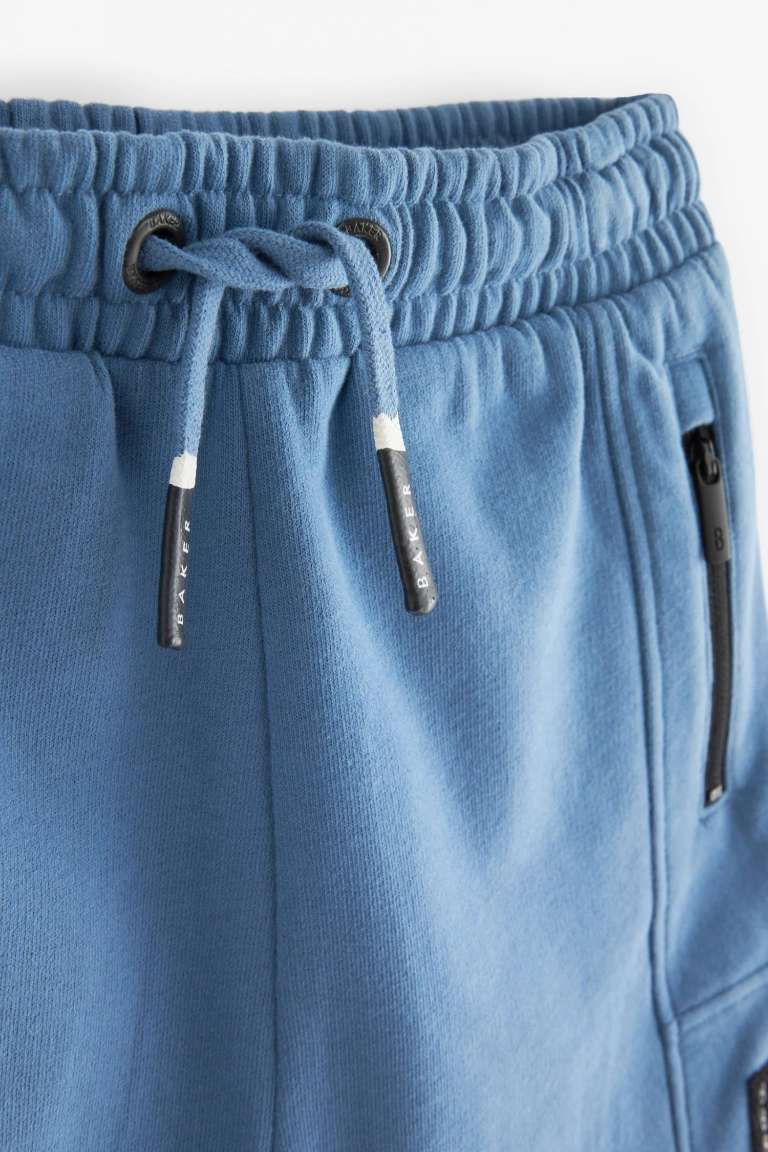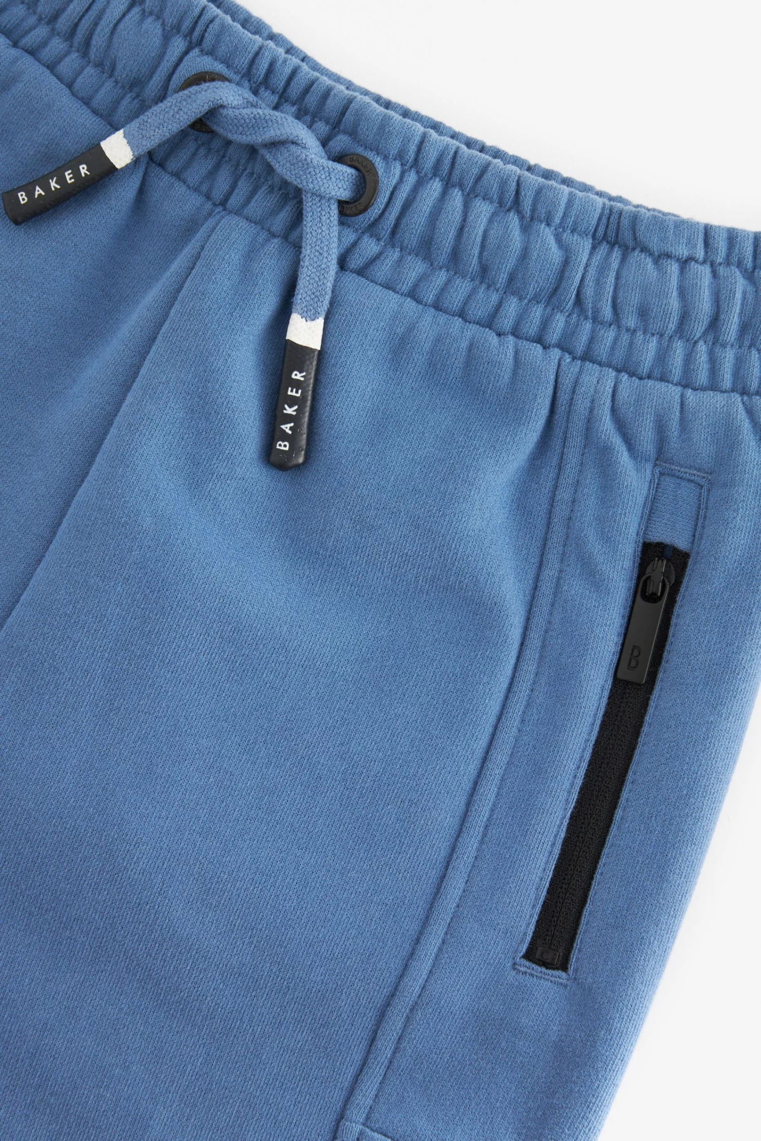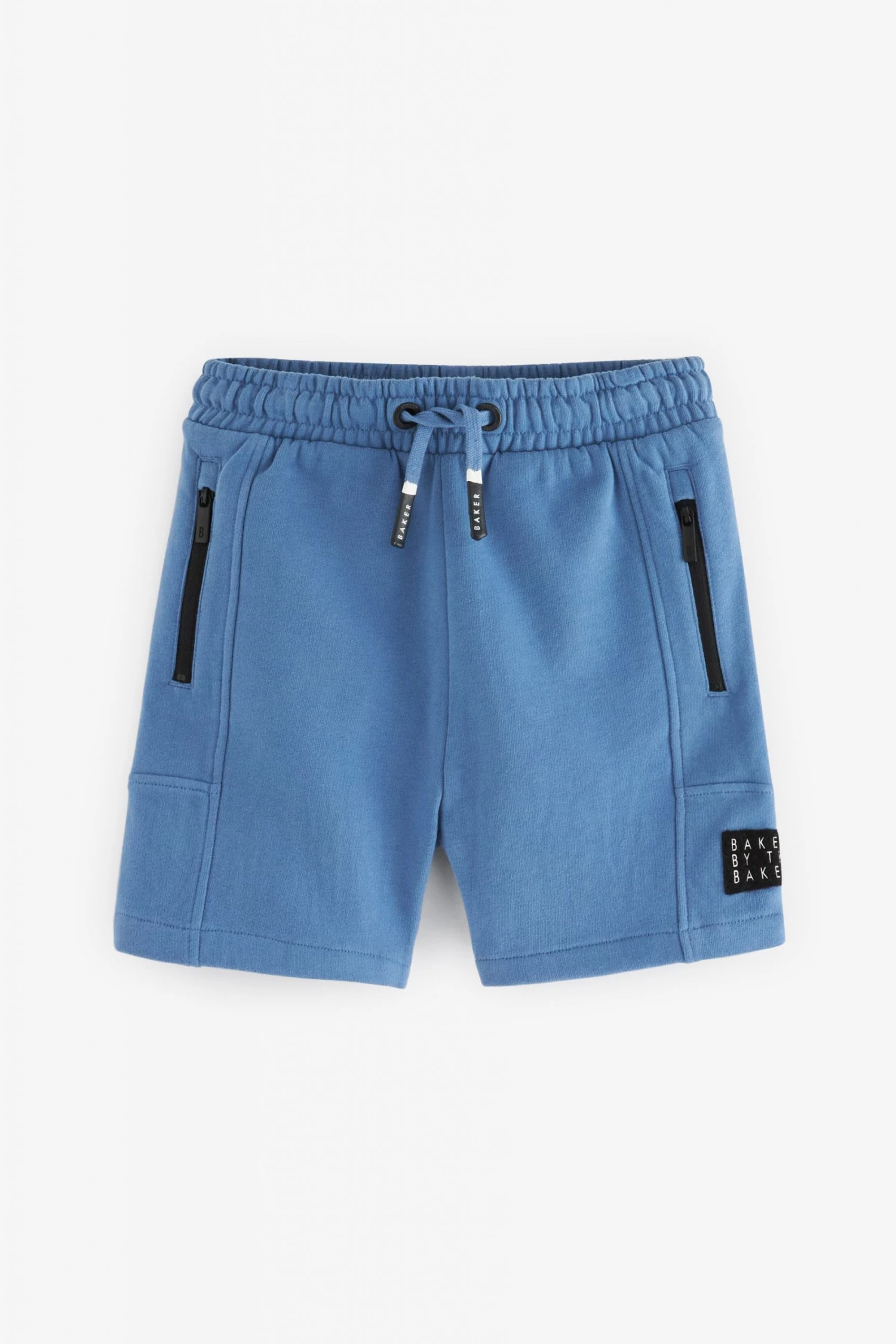These blue sweat shorts from Baker by Ted Baker are made from soft cotton jersey for a comfortable all-day wear. With contrast side zipped pockets, Baker branded badge to left leg, back welt pocket and feature seam detailing. Finished with an elasticated easy pull-on waistband.