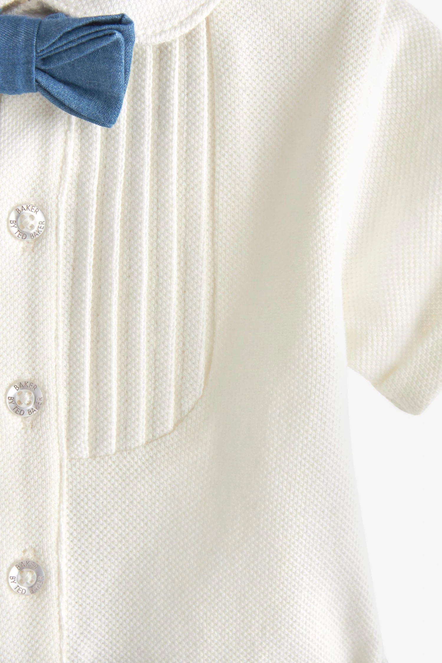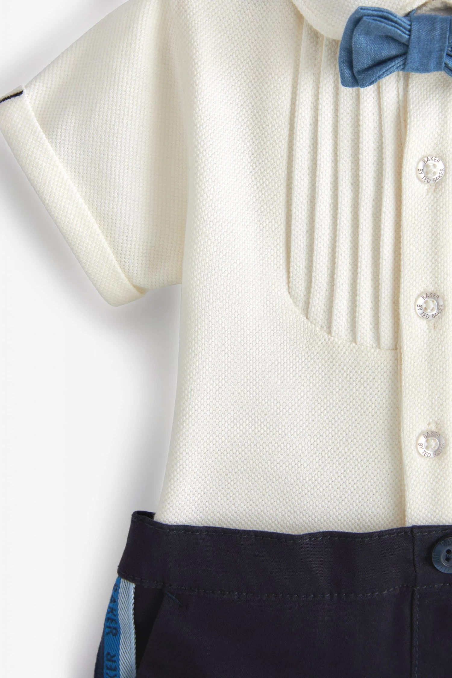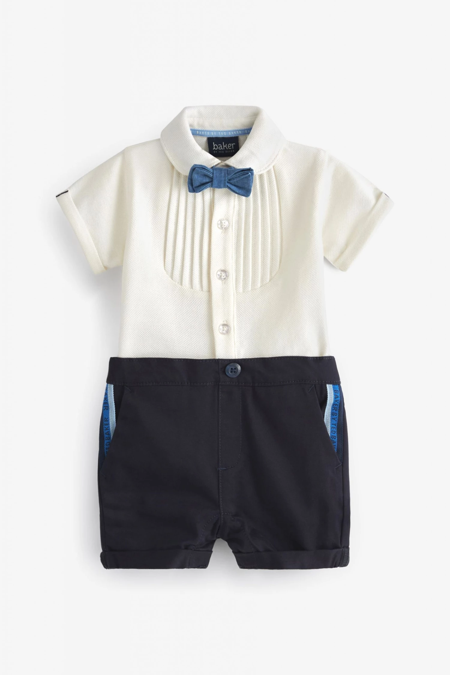 Dress your newborn to impress with this beautiful Ted Baker bow tie romper this summer. Designed with a bow tie fixed on a button up front and shorts print. It is the perfect occasionwear for your little one in the summer weather.