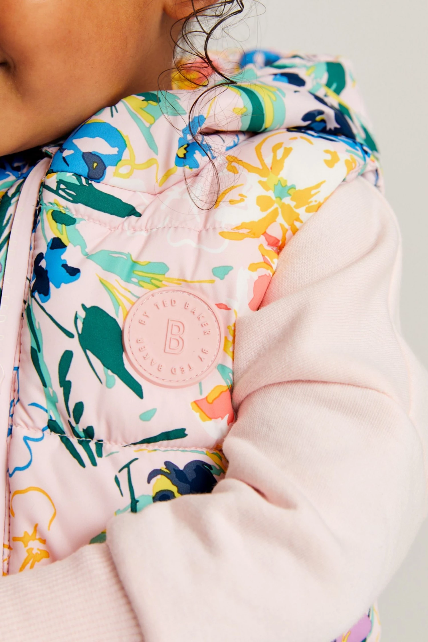 This hooded gilet from Baker by Ted Baker is perfect for autumn layering, With pretty all-over floral Baker print, branded zip and jersey lining for extra warmth.