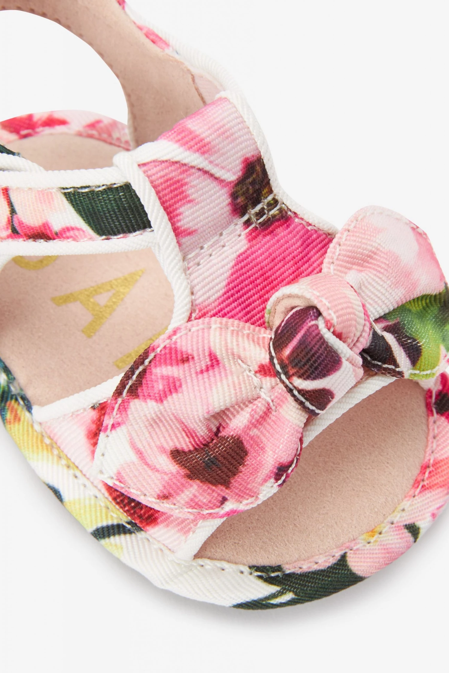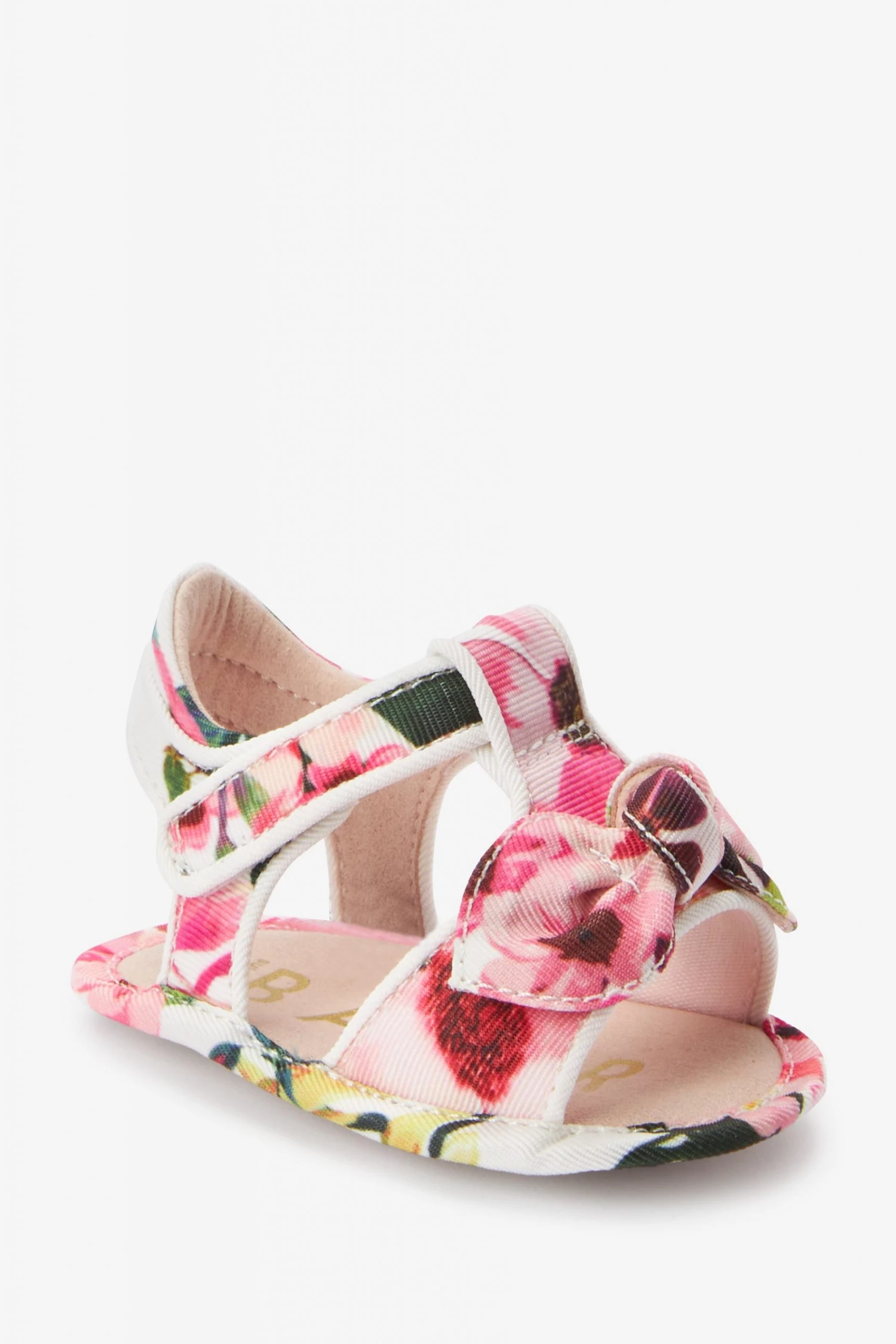 These adorable sandals from Baker by Ted Baker are crafted with a supersoft textile upper to protect little feet. Decorated in a beautiful floral print with statement bow on the front and t-bar strap with adjustable touch fastening for the perfect fit.