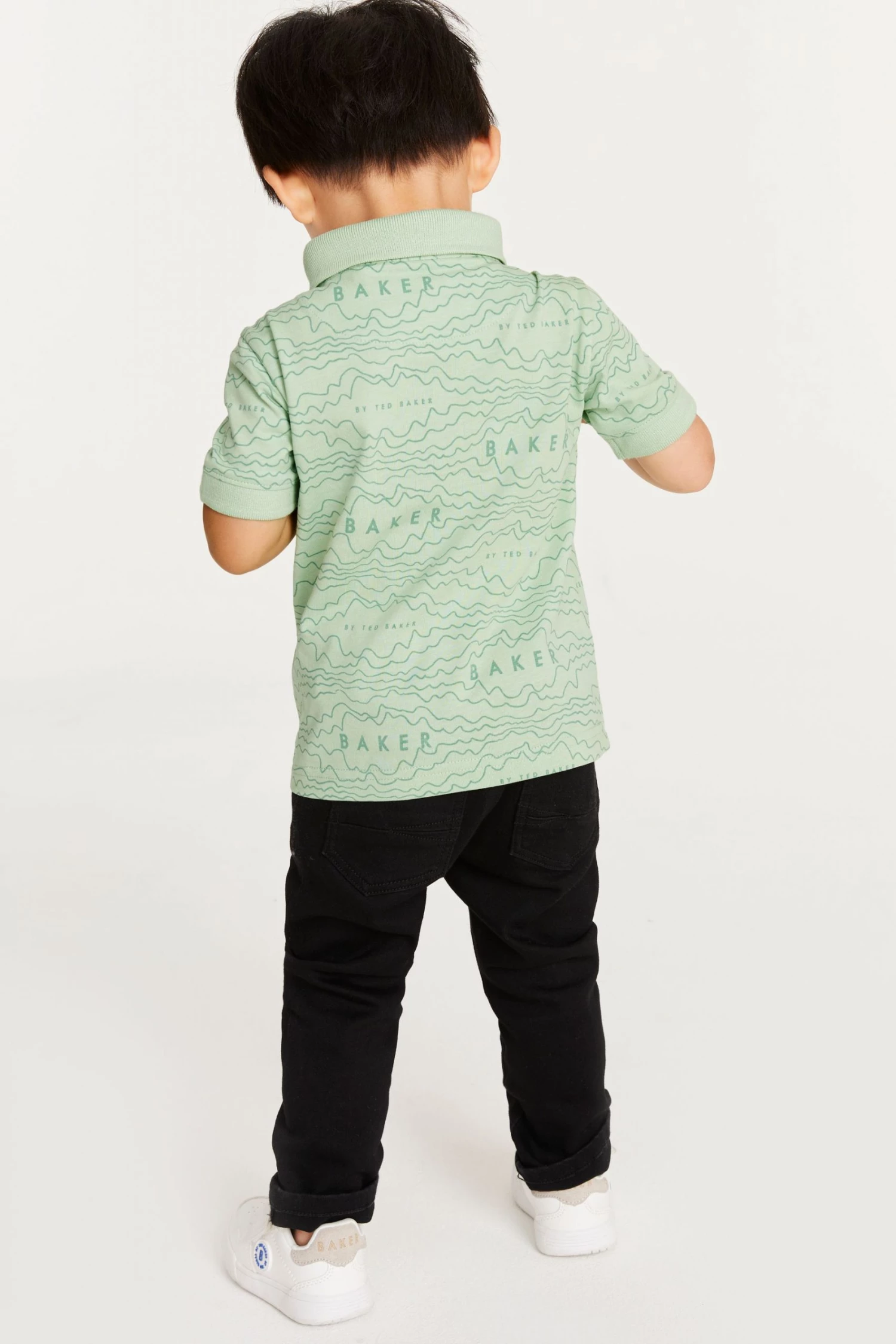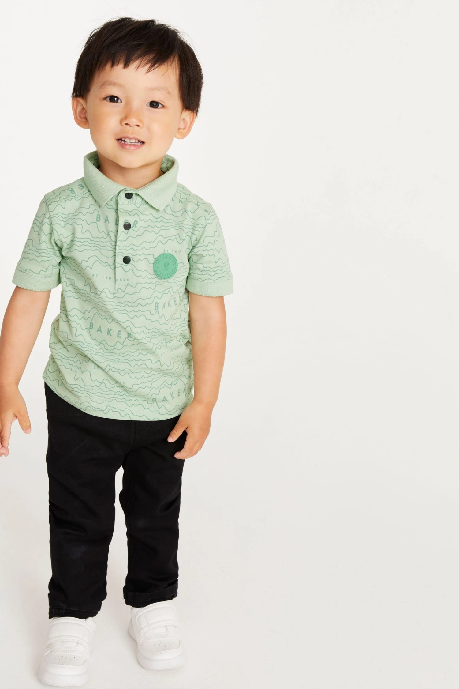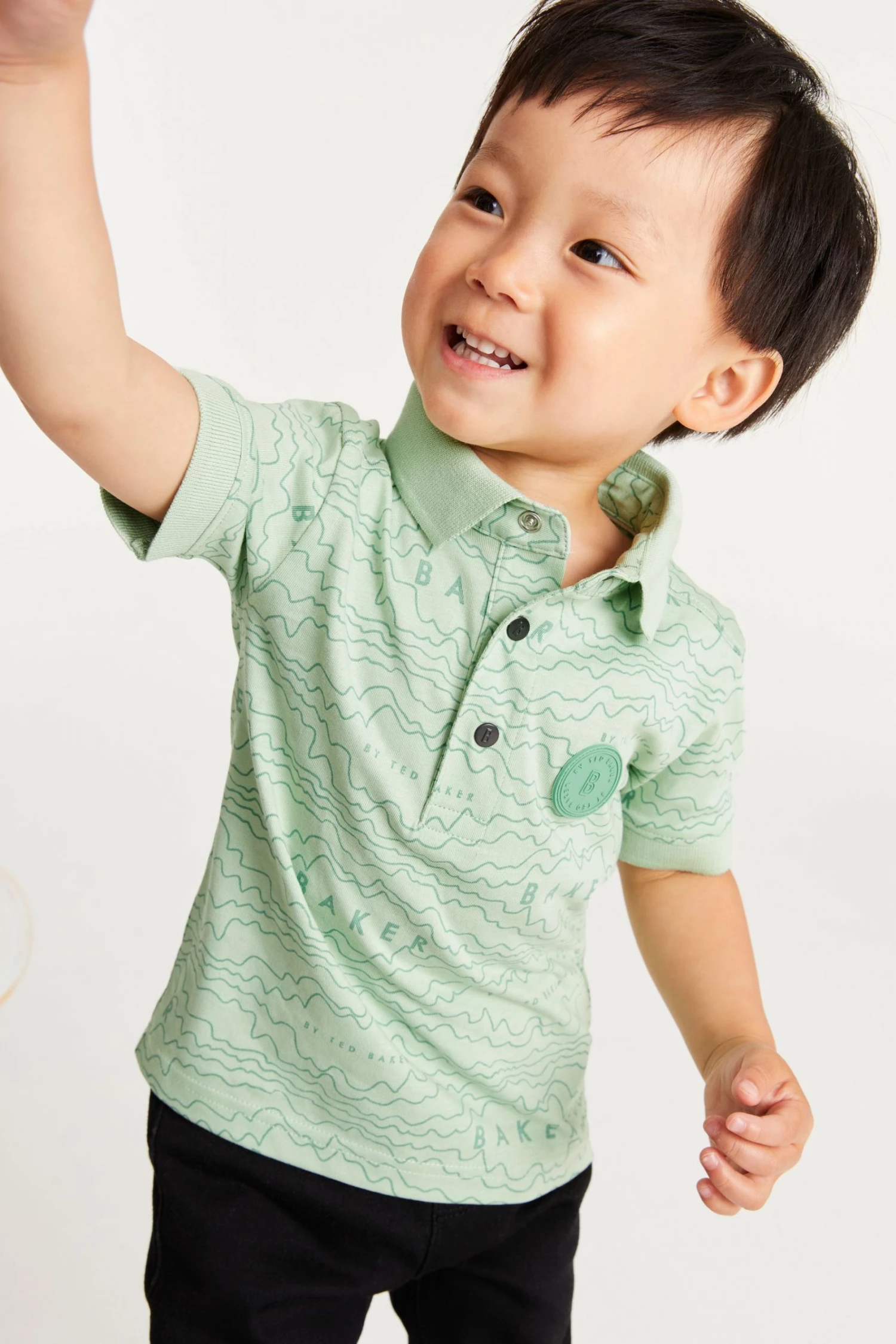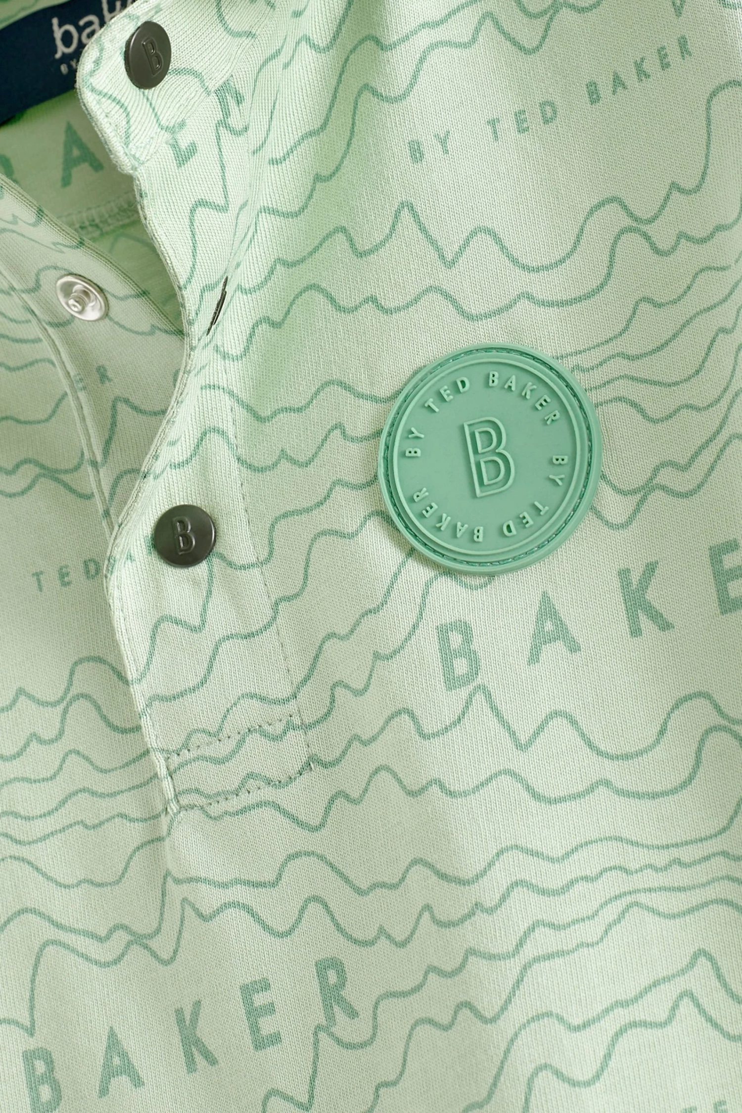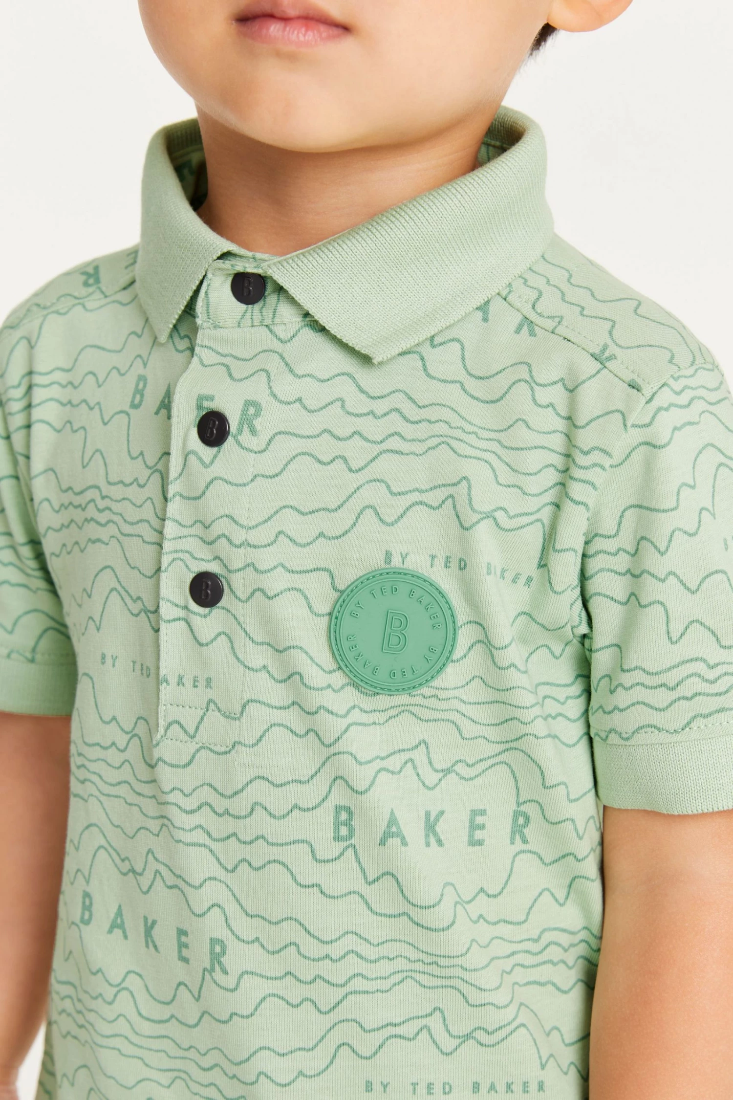 Super cool and ready for summer, this polo shirt from Baker by Ted Baker brings a whole new vibe to their sunshine wardrobe. Featuring new all-over branded print, it has a neat 3 snap fastening at the collar, short sleeves and is made from a luxe cotton that makes this t-shirt lightweight and breathable. The Ted Baker badge sits proudly at the chest for a luxe touch to his outfit.