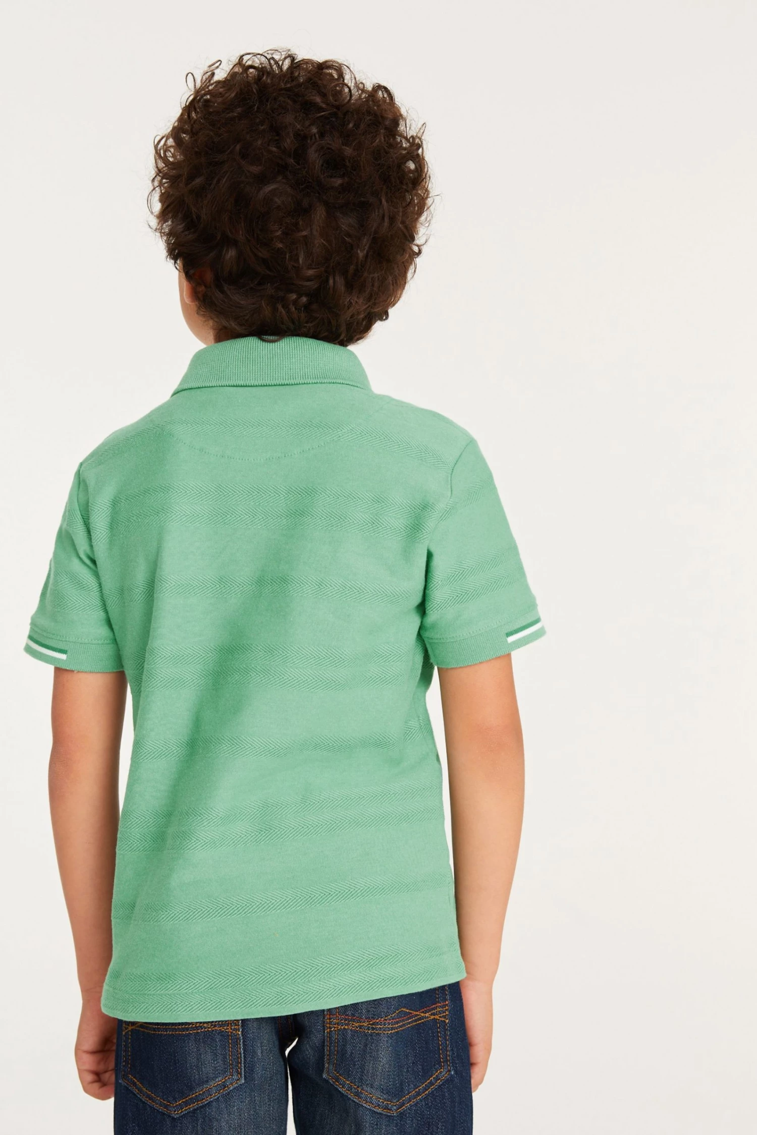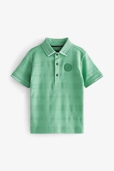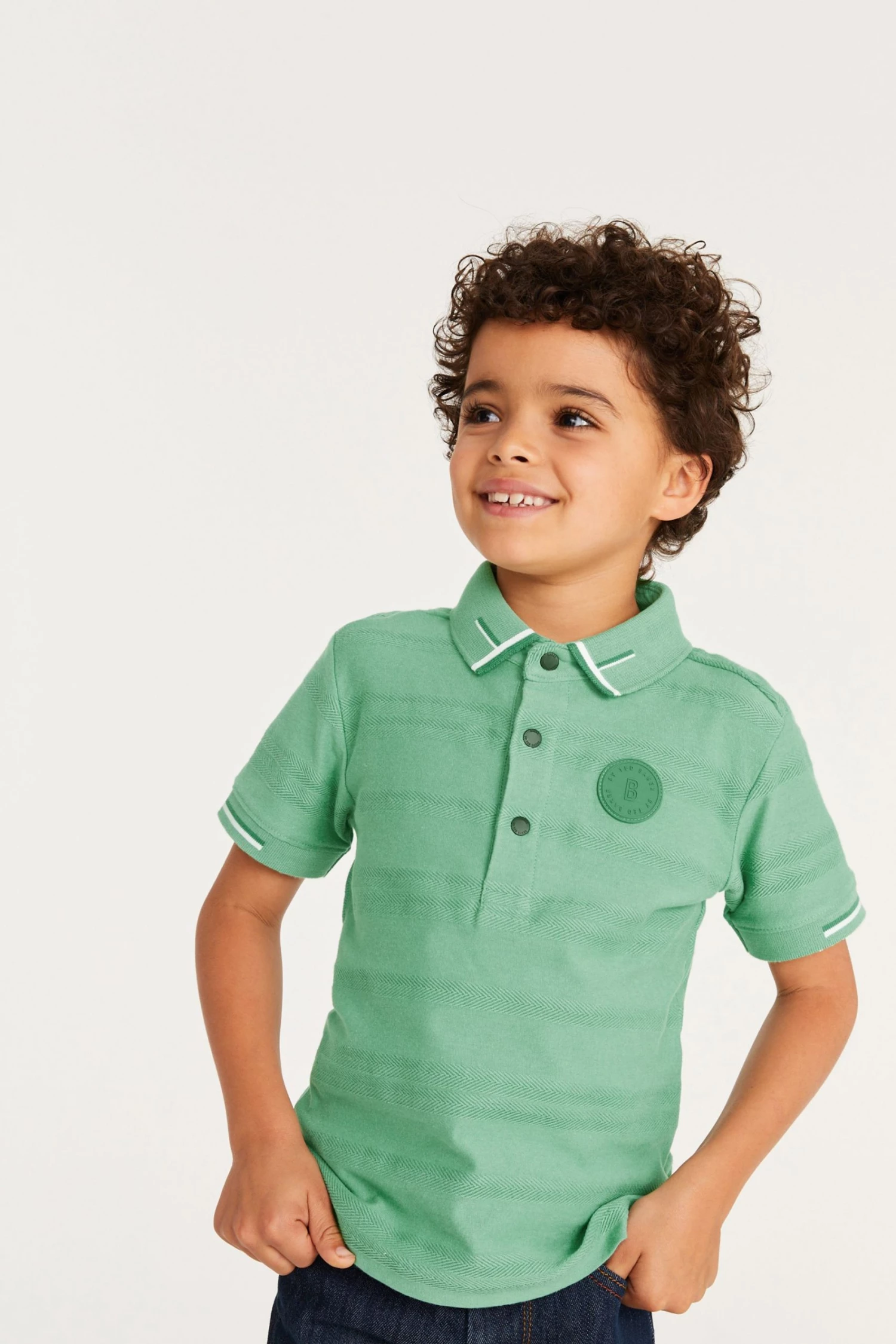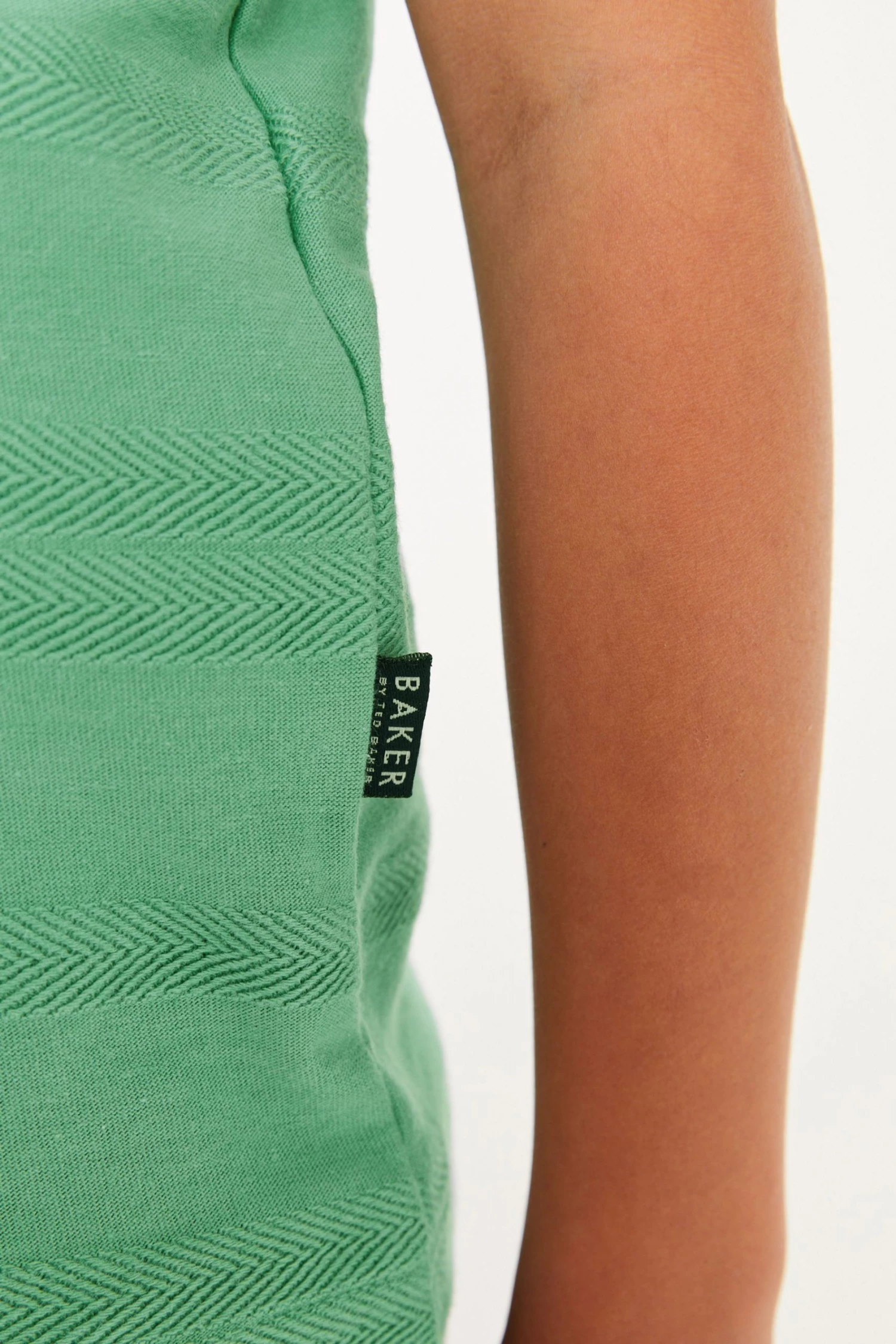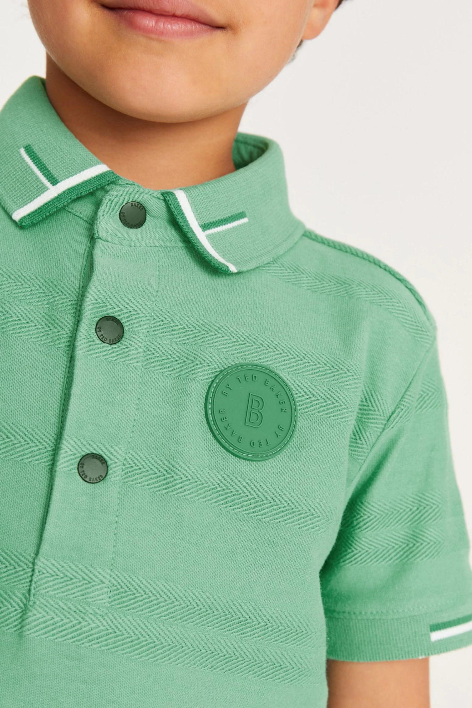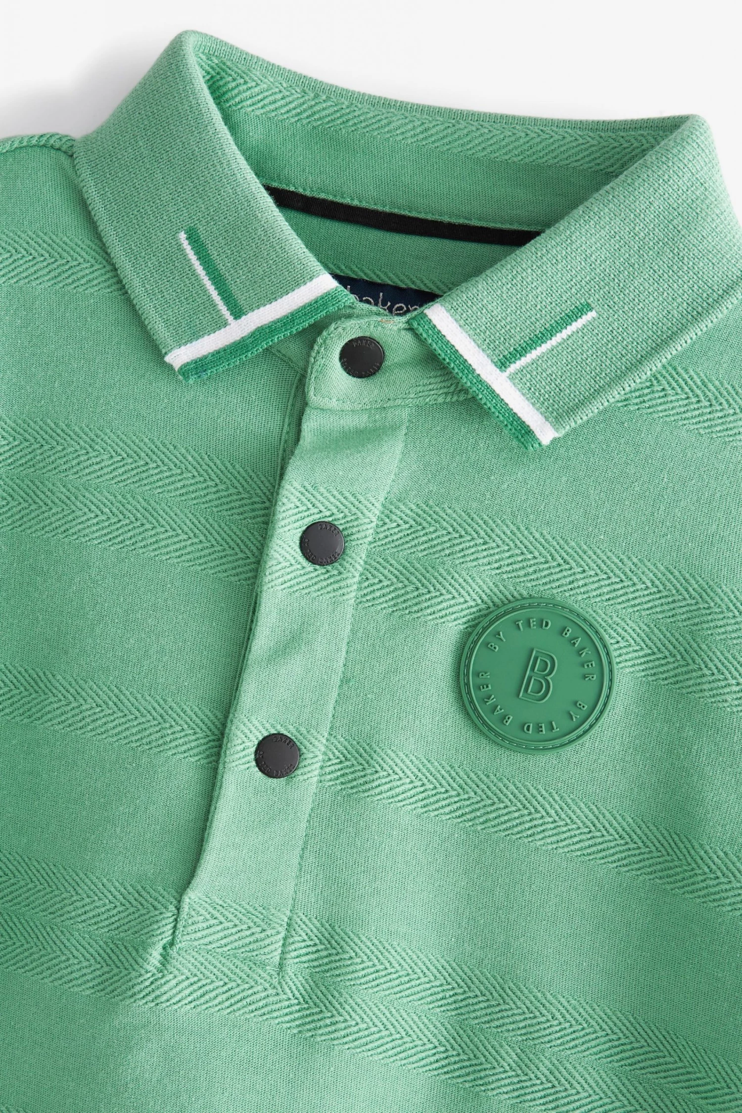 Build on their classics for the season ahead with this boys’ polo shirt from Baker by Ted Baker. With all the classic features they love, it has a neat 3 snap fastening at the collar, short sleeves and is made from a luxe textured cotton that makes this t-shirt lightweight and breathable. With white and green tipping at the collar and sleeves, the Ted Baker badge is positioned at the chest, and woven tab sits at the side seam.