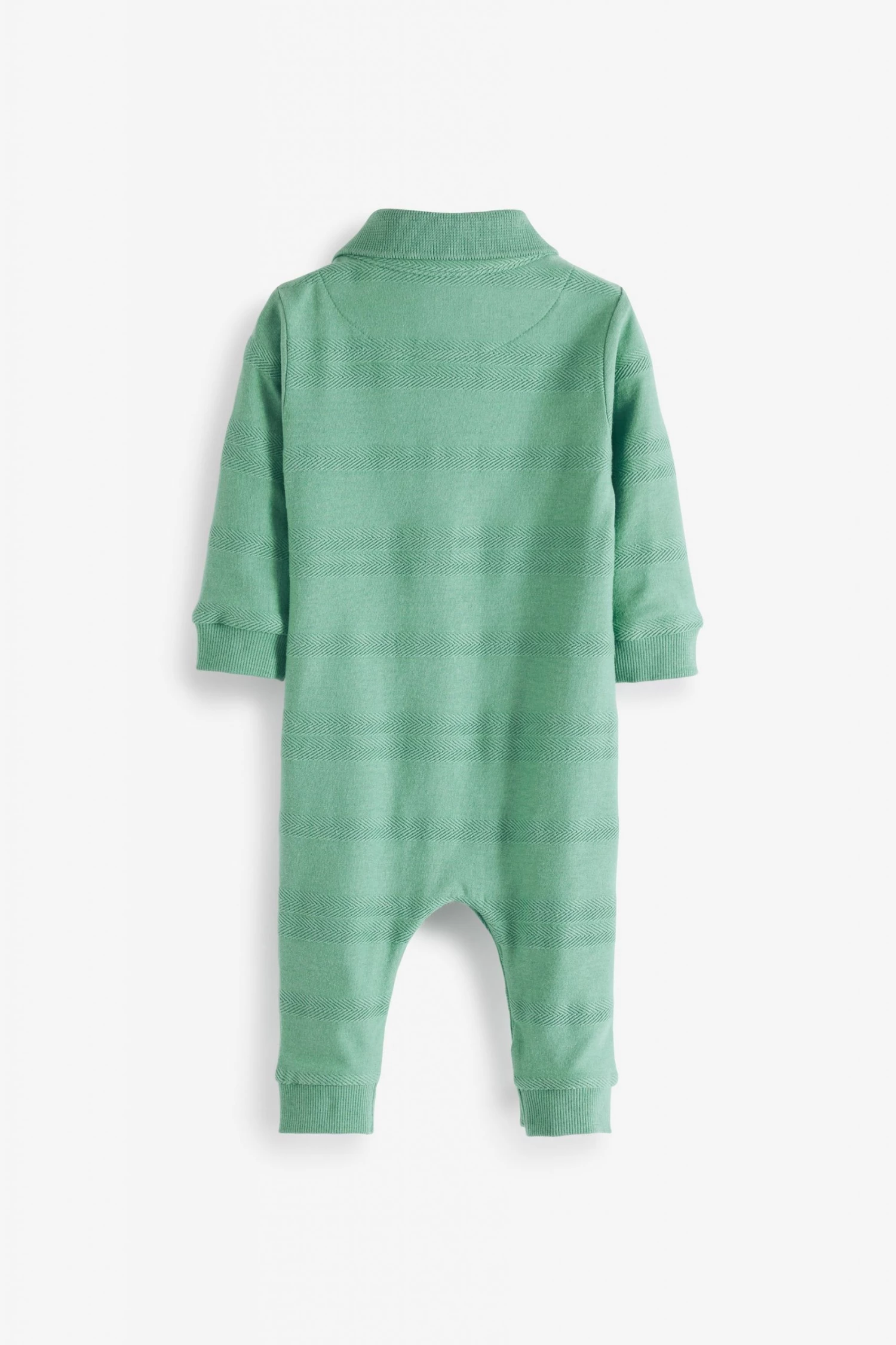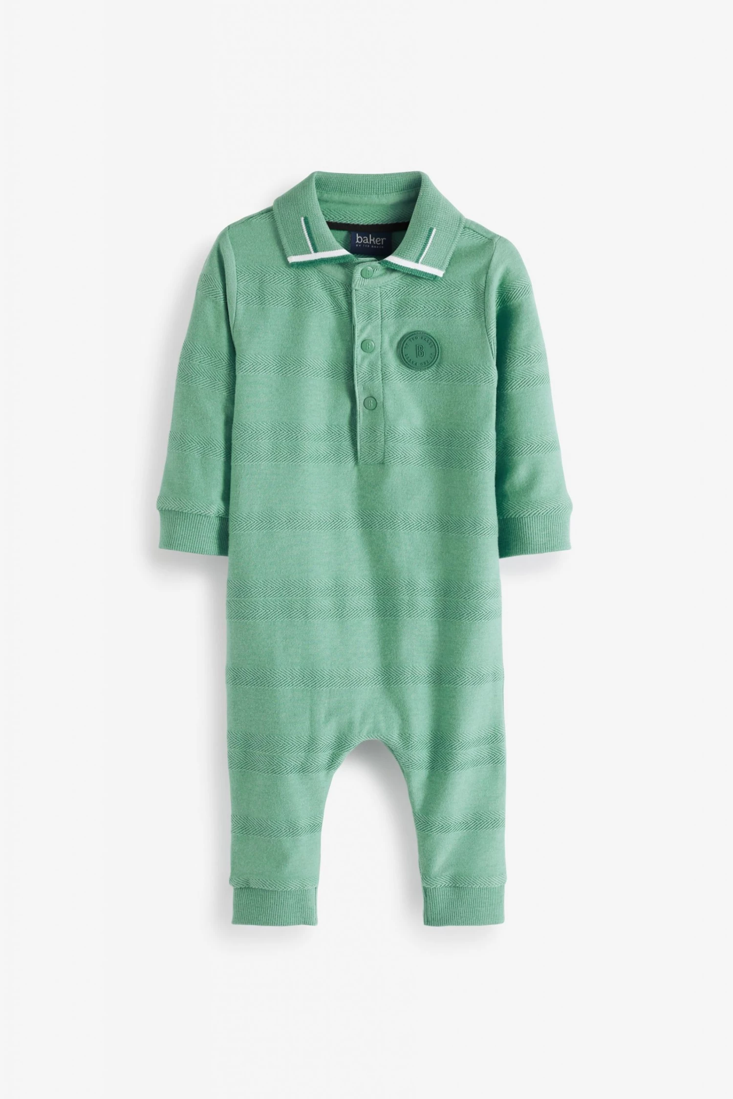 A supersoft premium textured romper from Baker by Ted Baker. With tipped polo shirt collar and popper fastening, this soft and breathable all-in-one is lightweight and comfy with plenty of stretch. Made from natural cotton fibres that are kind to their skin, it has branded Ted Baker patch at the chest.