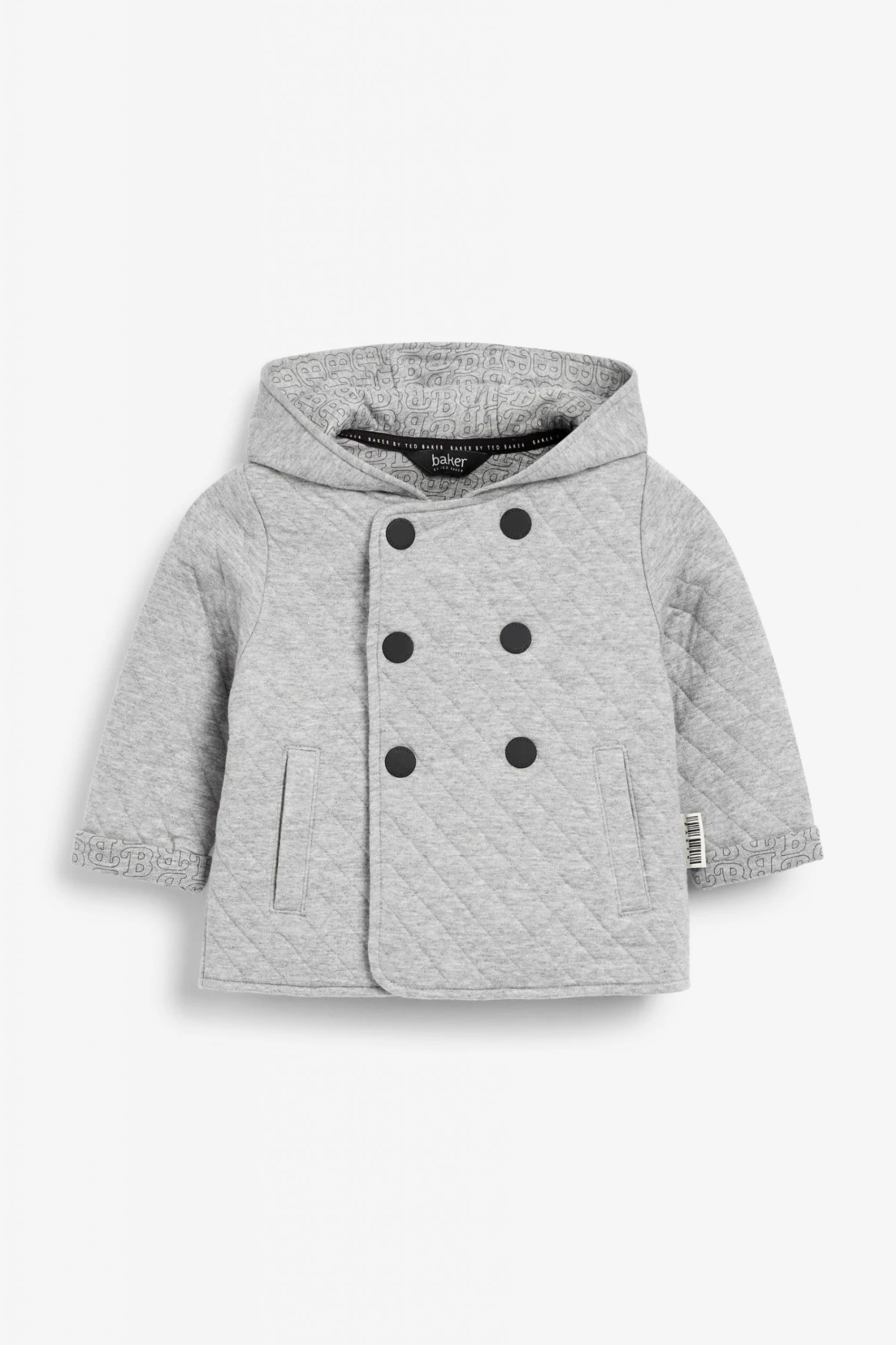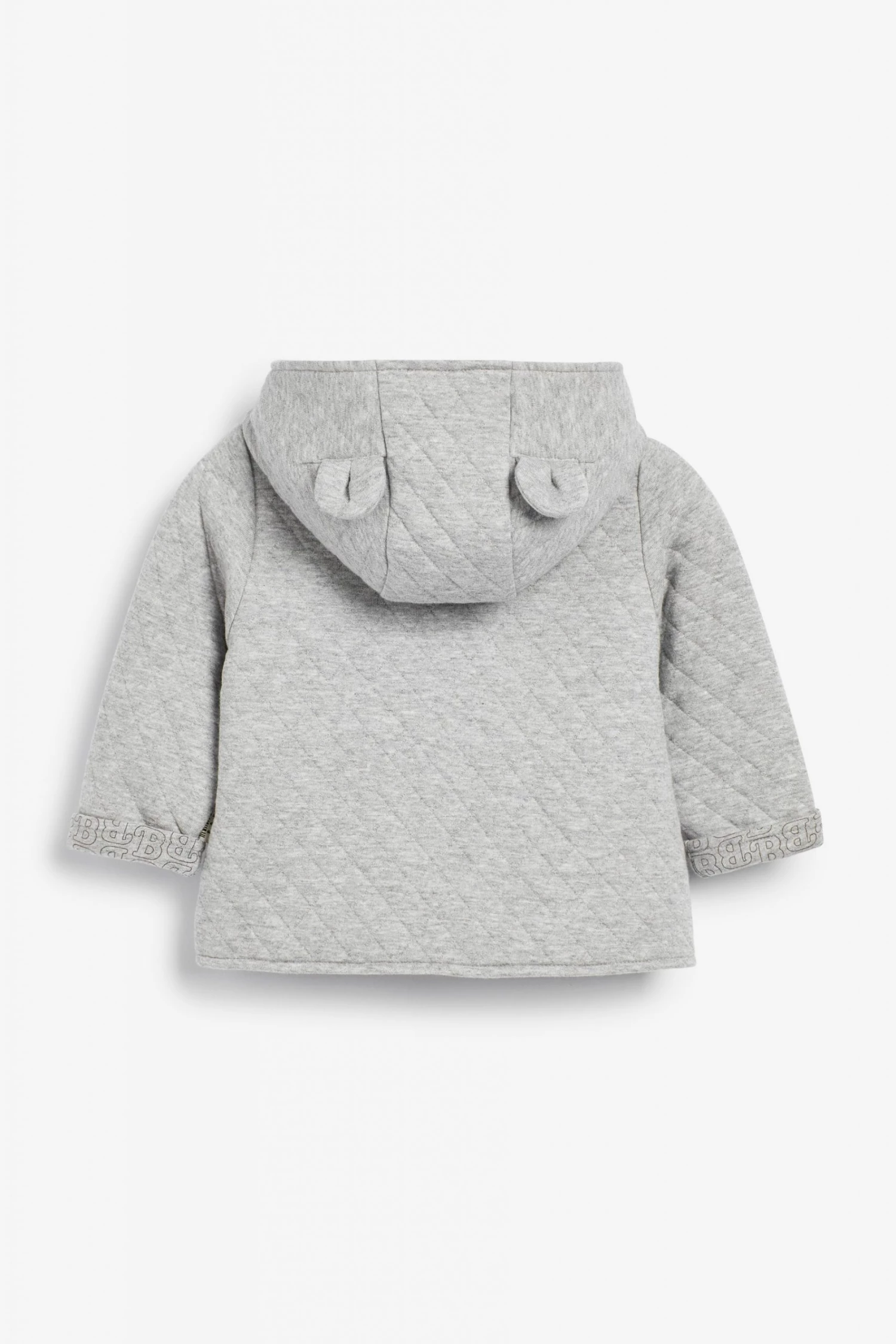 Elevate their outerwear with this double-breasted grey jacket crafted in a soft and cosy, quilted fabric. Featuring ears on the hood that adds a fun vibe to a classic style.