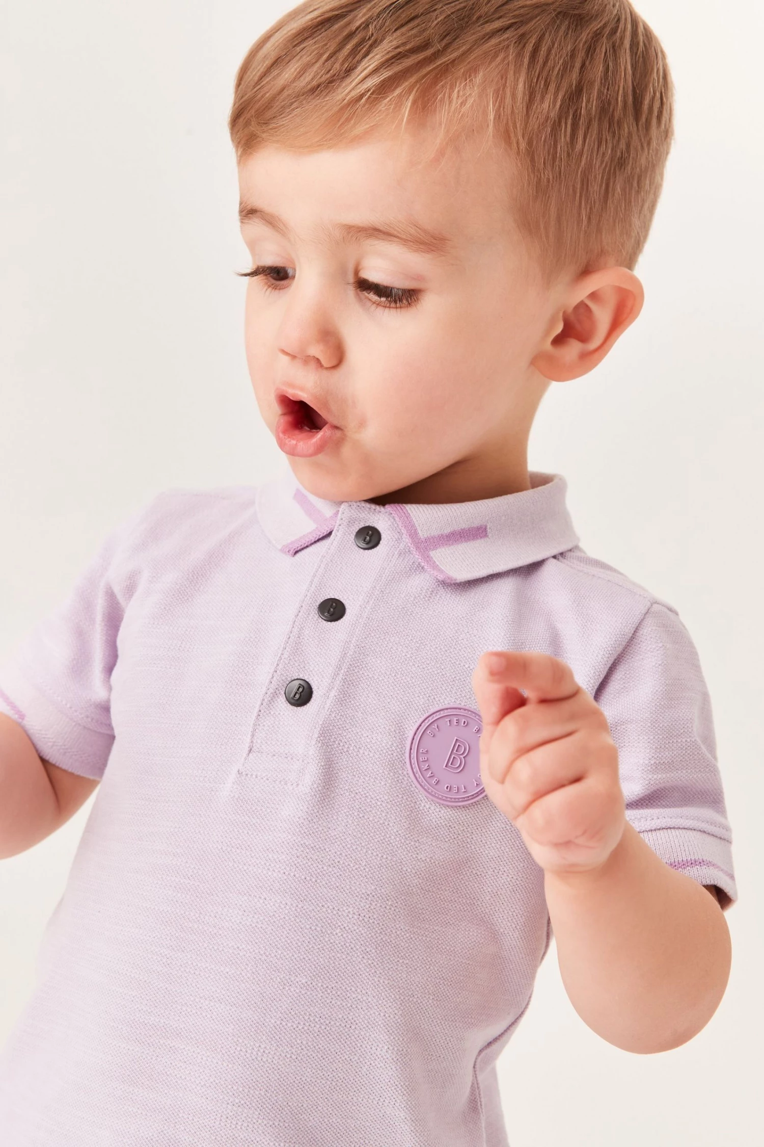 Update his wardrobe with this stylish Baker by Ted Baker lilac polo shirt with collar neckline, short sleeves, colour tipping details, and branded PU chest badge. Perfect for layering under a jumper or styling with his favourite jeans and trainers.