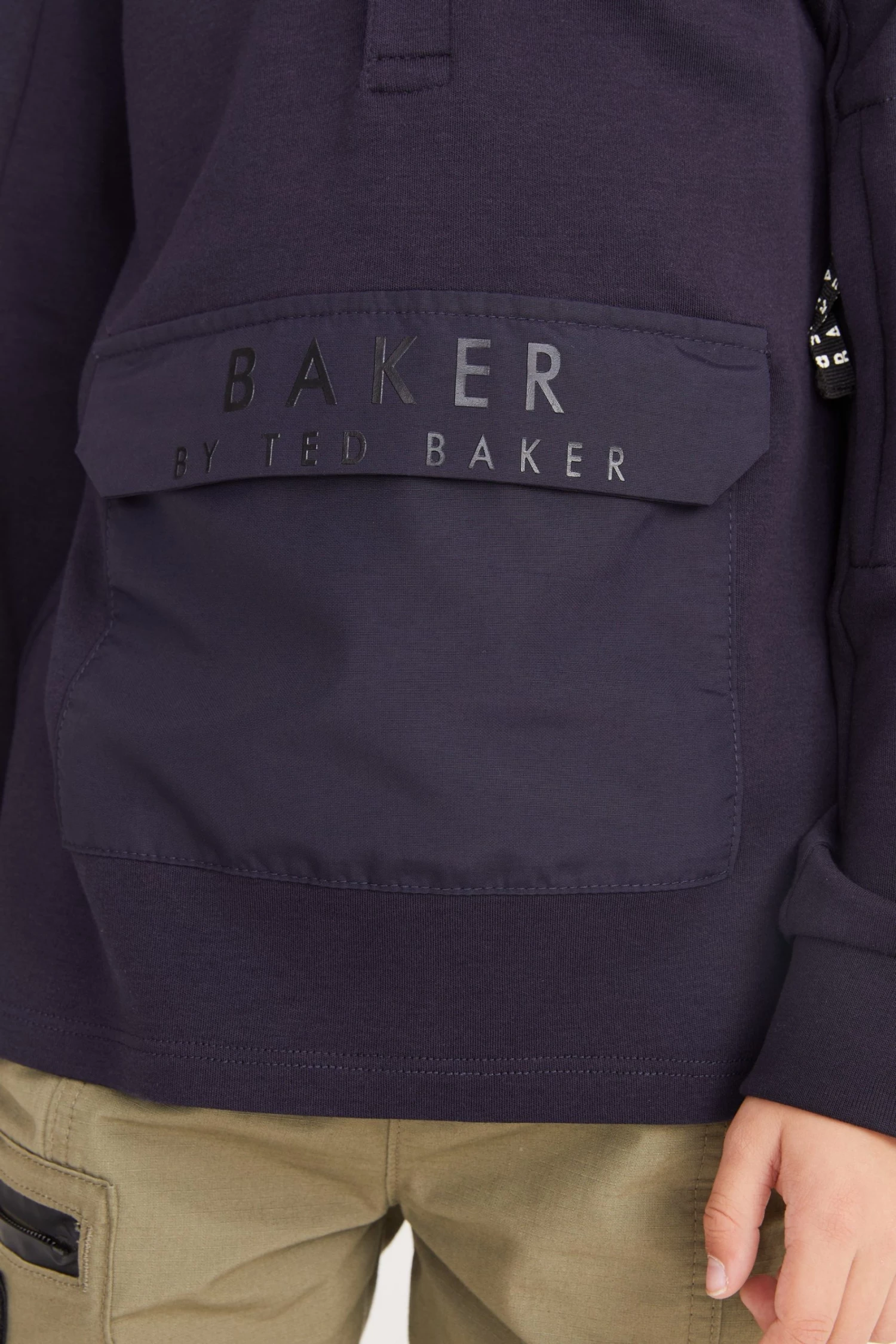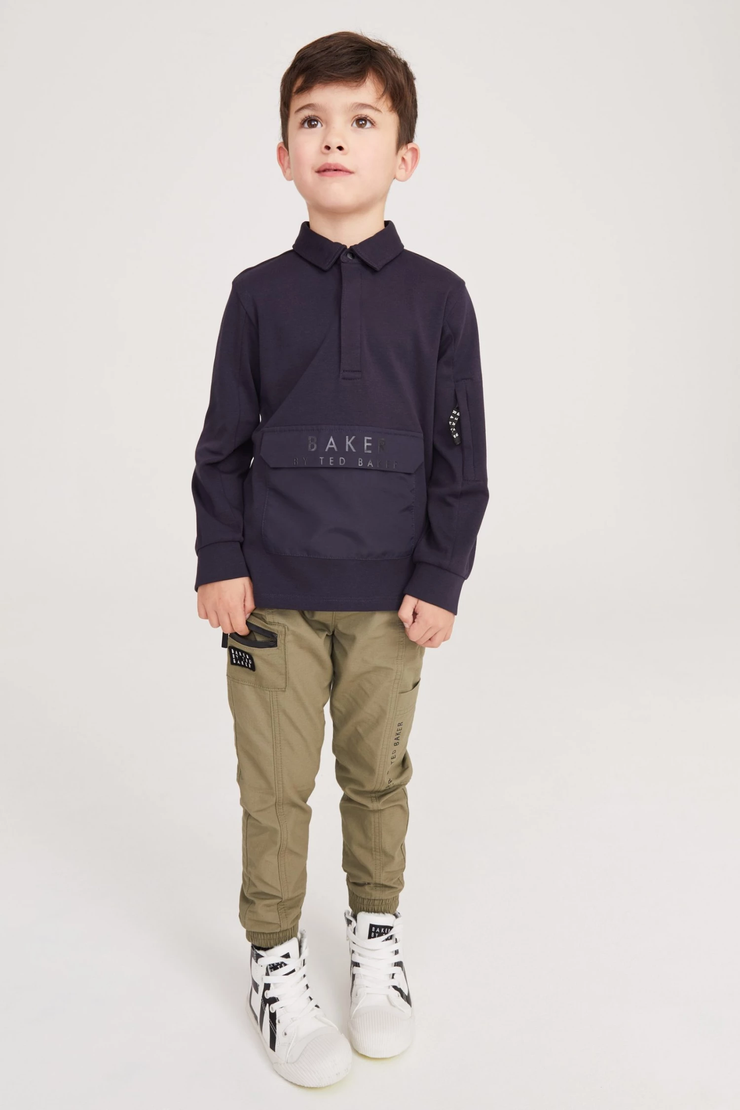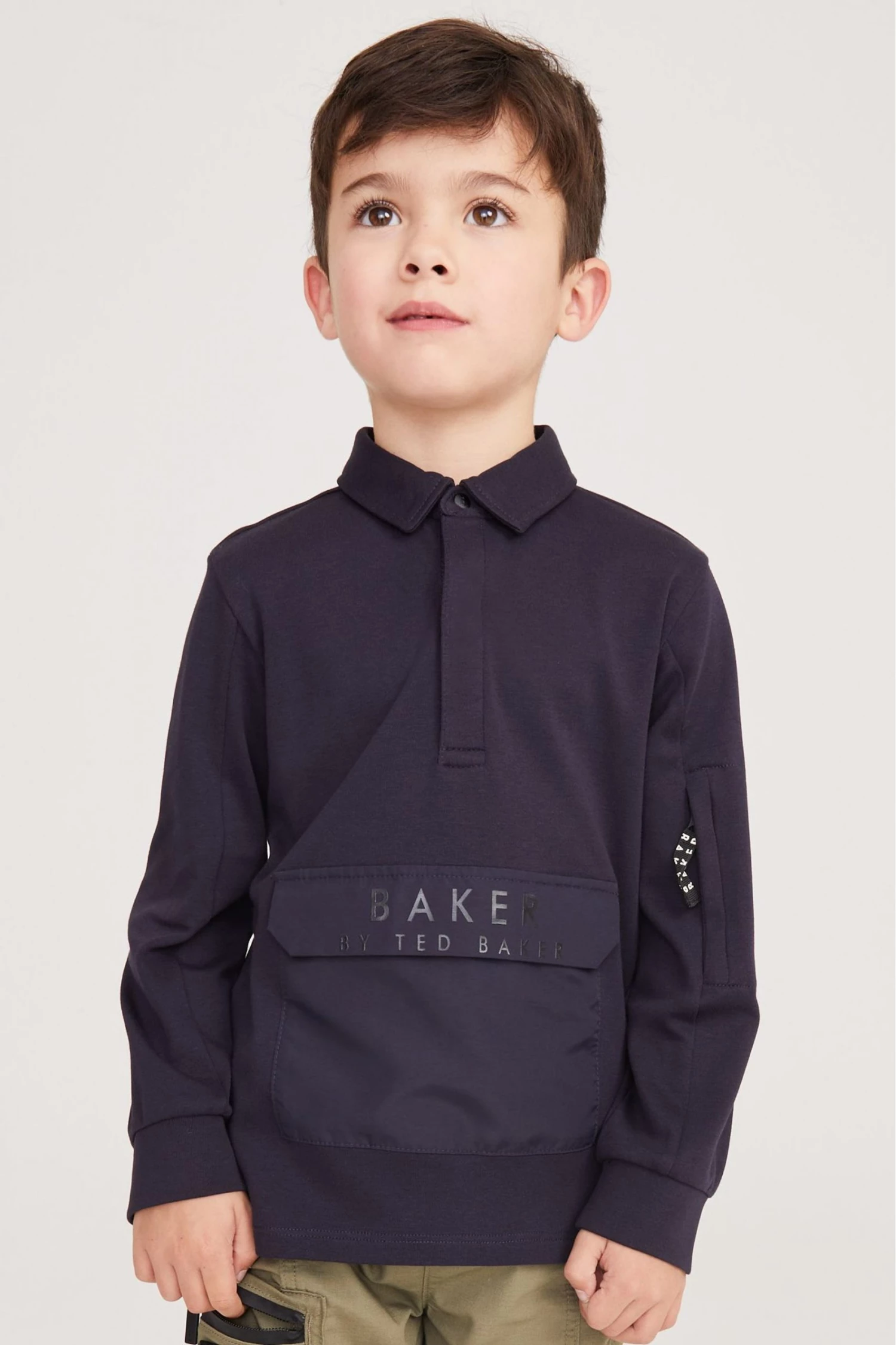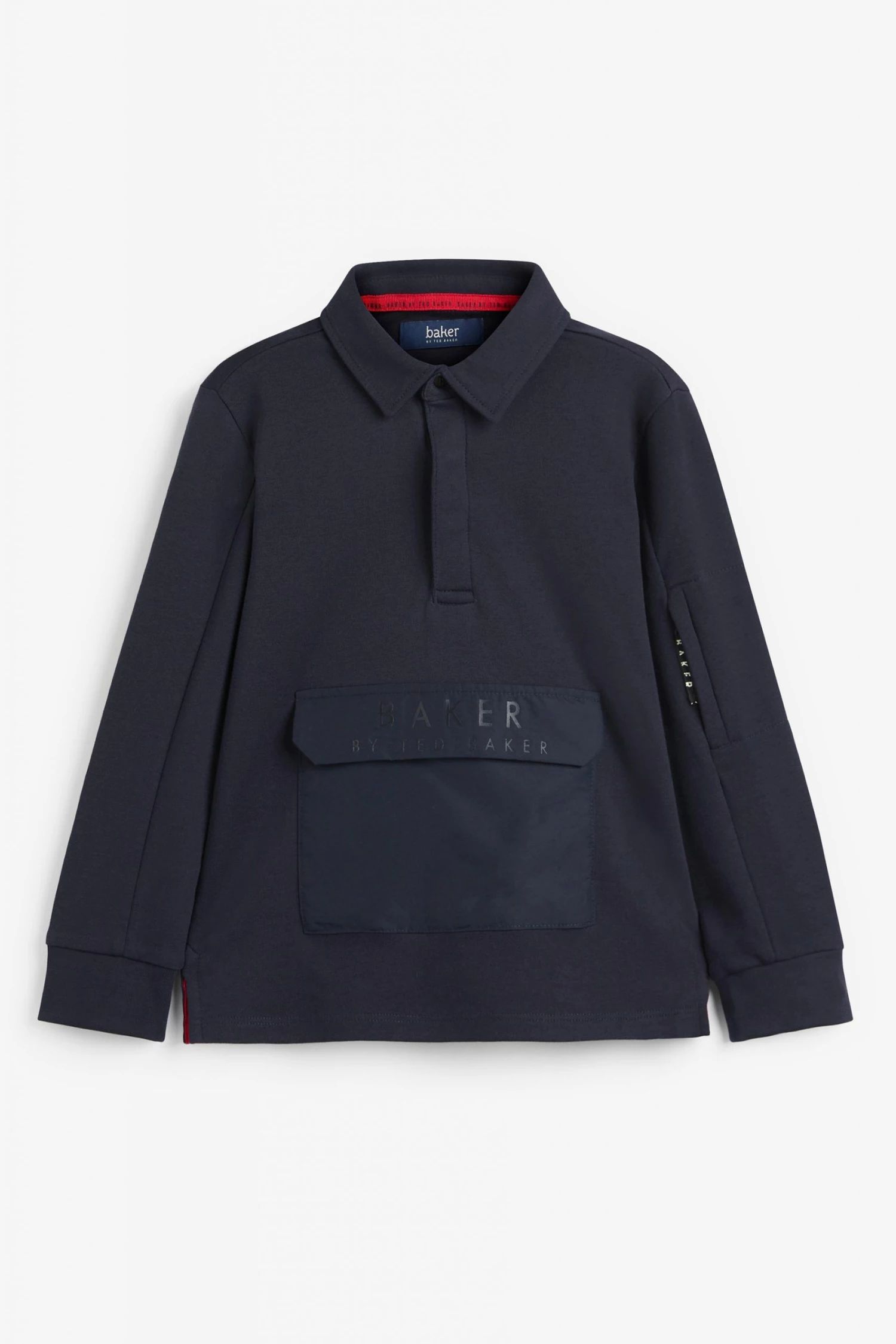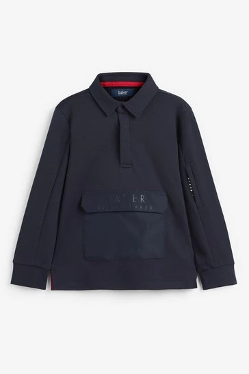This smart long sleeved polo shirt from Baker by Ted Baker is made from a soft cotton fabric for all-day comfort. Featuring large front pocket with Baker branding and smaller sleeve pocket with branded zip pull tab.