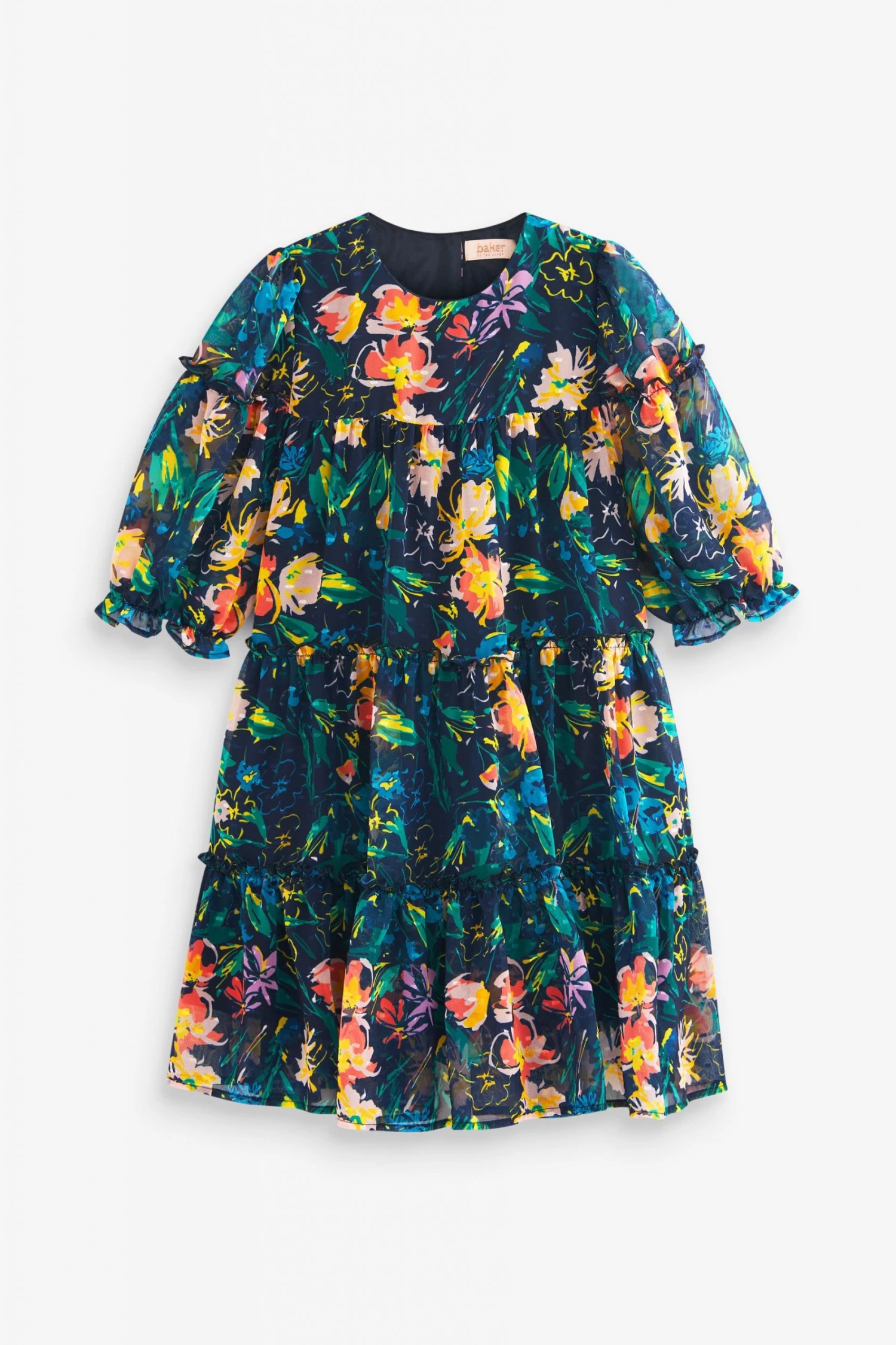 This gorgeous chiffon dress from Baker by Ted Baker is styled in a lovely tiered shape with comfortable cotton lining. Designed in an all-over floral print with pretty ruffle details and back button fastening.