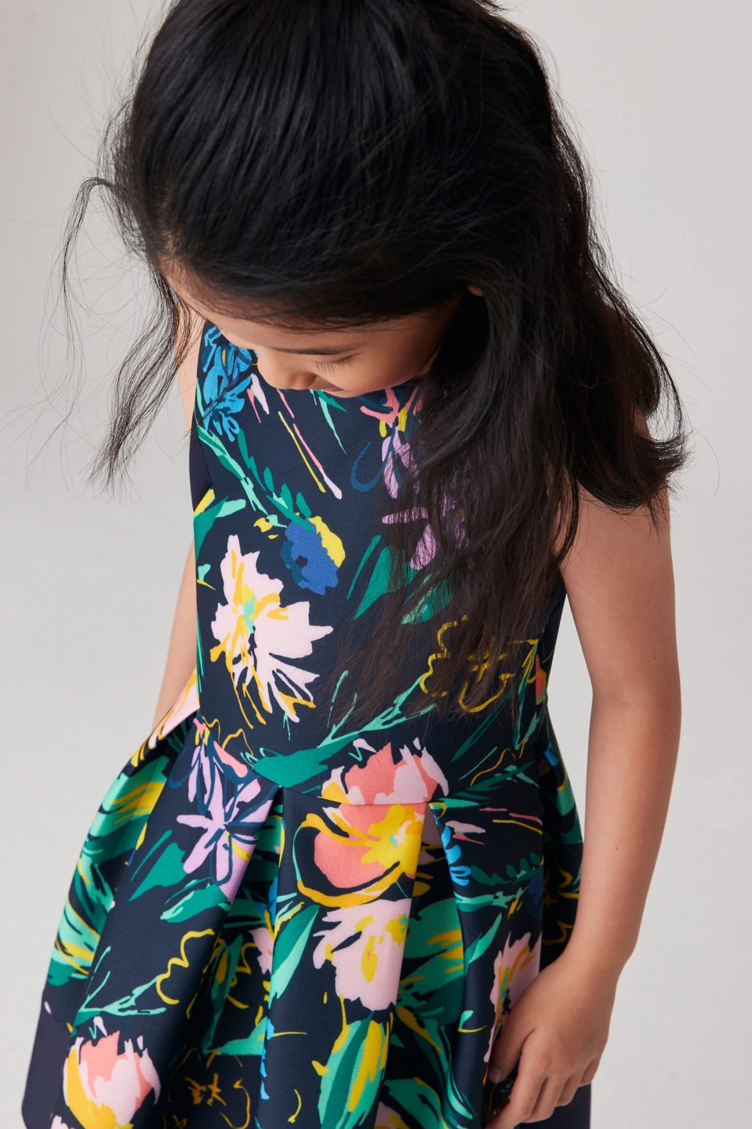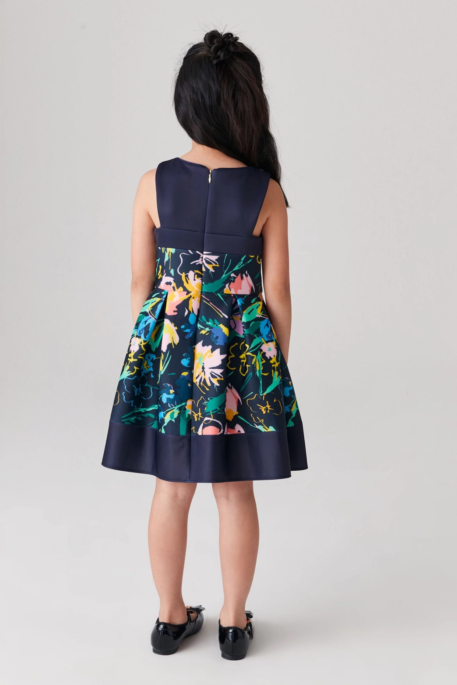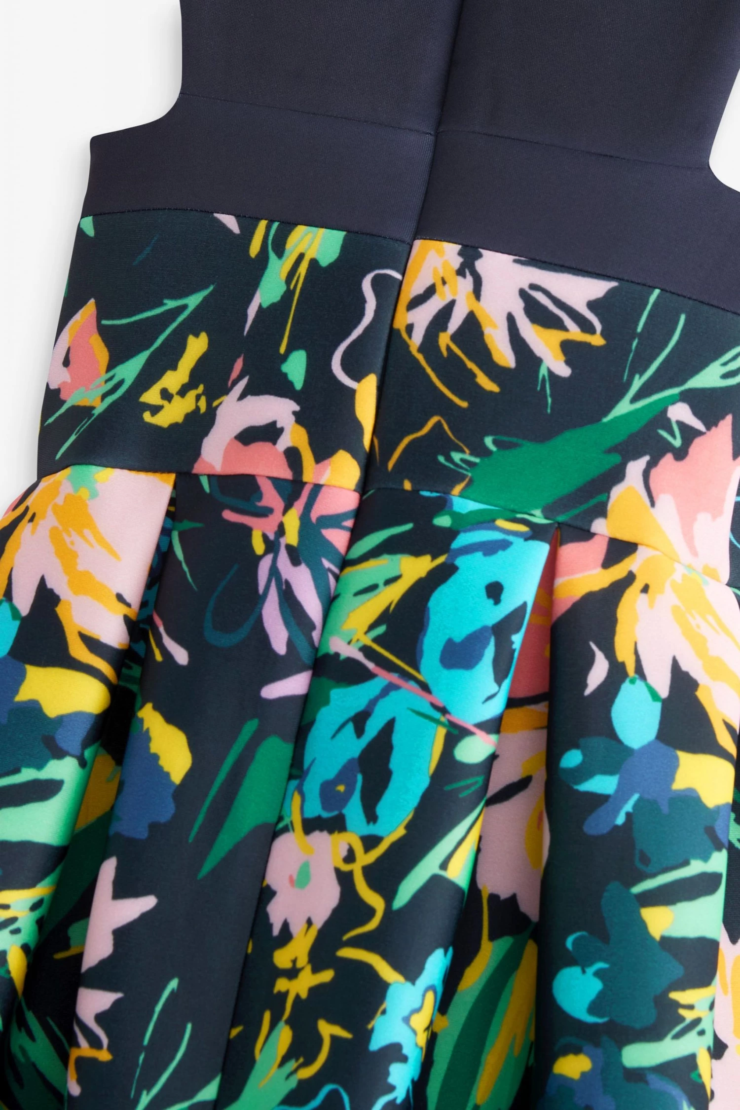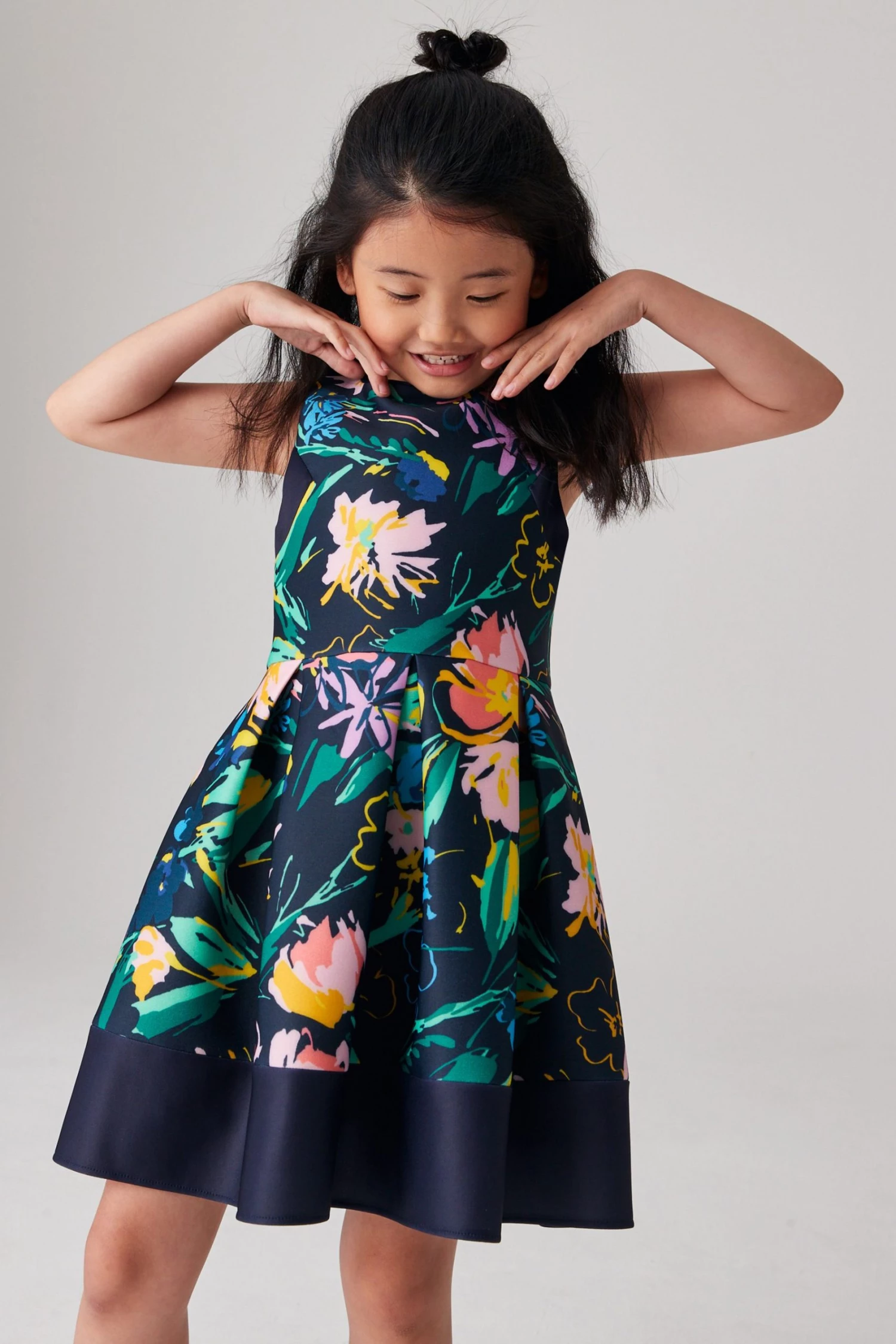 This pretty dress from Baker by Ted Baker is made in a beautiful floral print scuba fabric. Designed with a sleeveless bodice and full, twirl worthy skirt with soft cotton lining. It is finished with a concealed zip fastening at the back. Perfect for parties, weddings and special occasions.