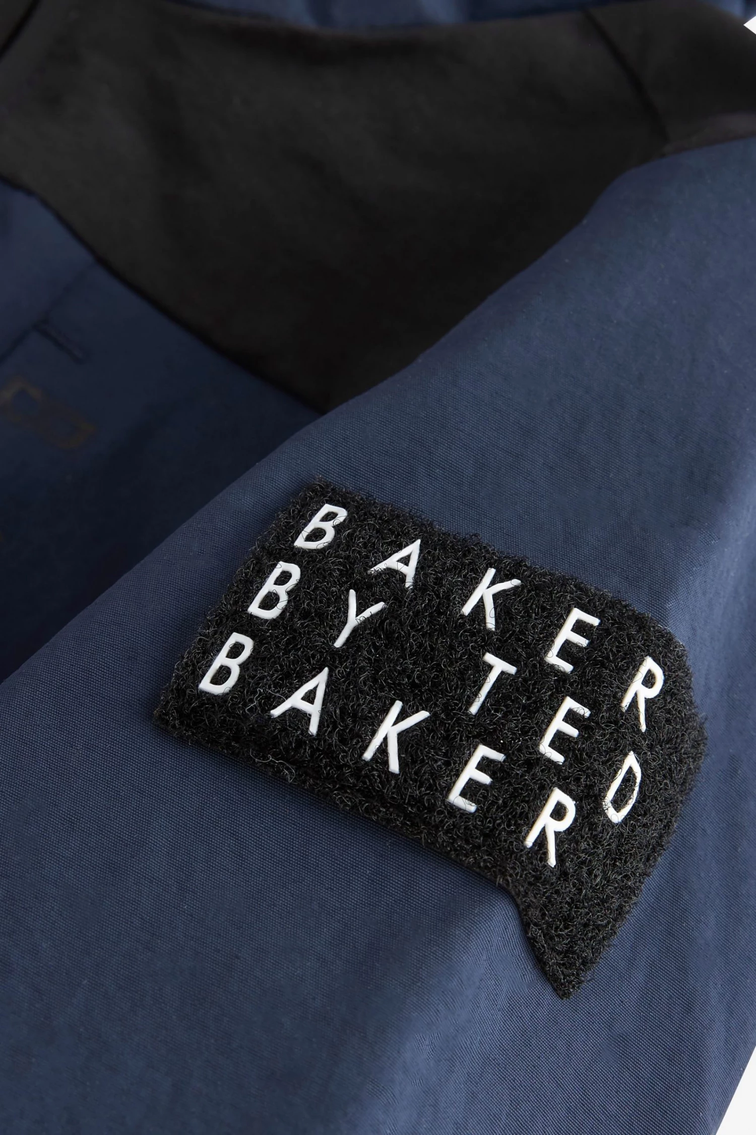 This navy colourblock jacket from Baker by Ted Baker is designed in a windproof, shower resistant fabric that is breathable and lightweight. Featuring internal pockets, branded zip, touch and close arm fastening, branded arm badge and cool branded tape detail.