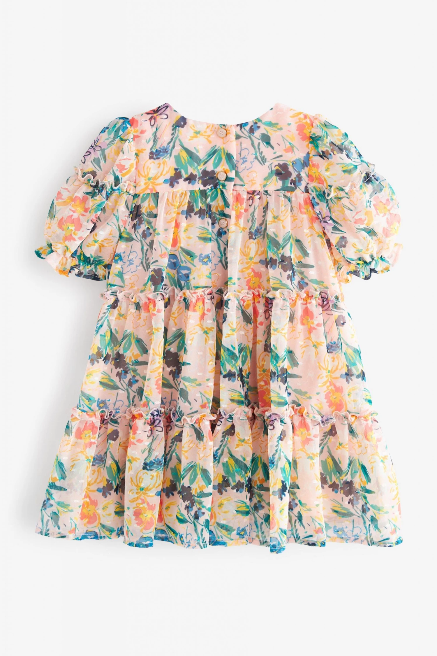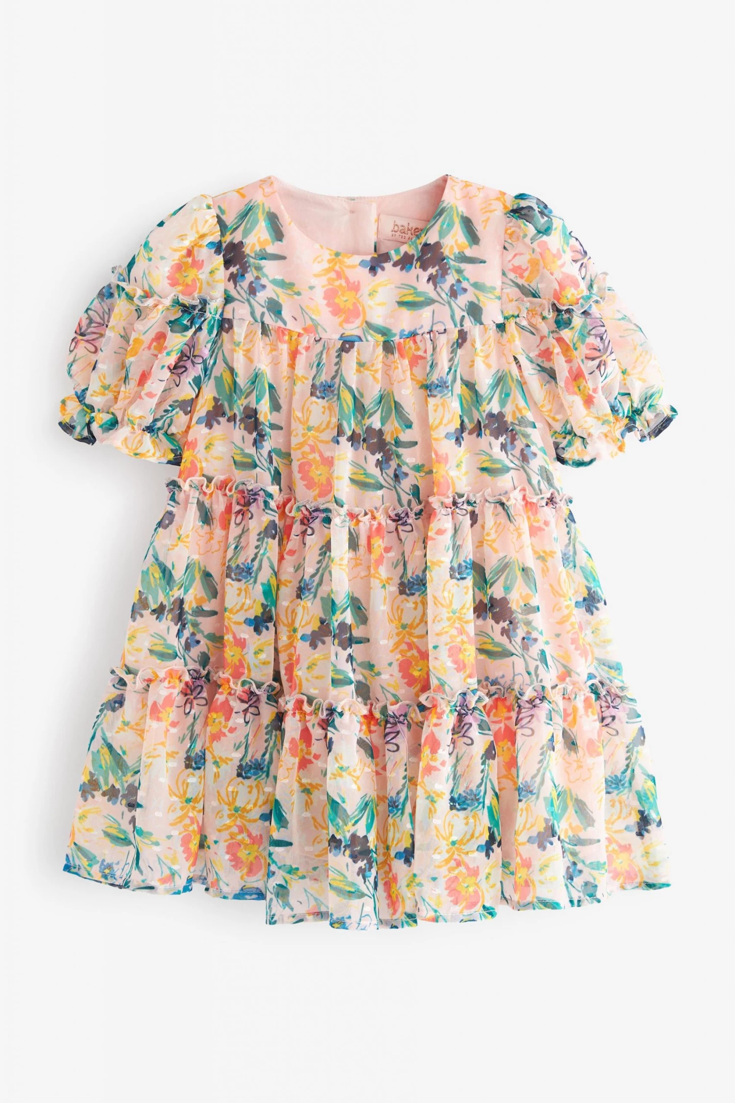 This gorgeous chiffon dress from Baker by Ted Baker is styled in a lovely tiered shape with comfortable cotton lining. Designed in an all-over floral print with pretty ruffle details and back button fastening with branded buttons.