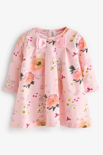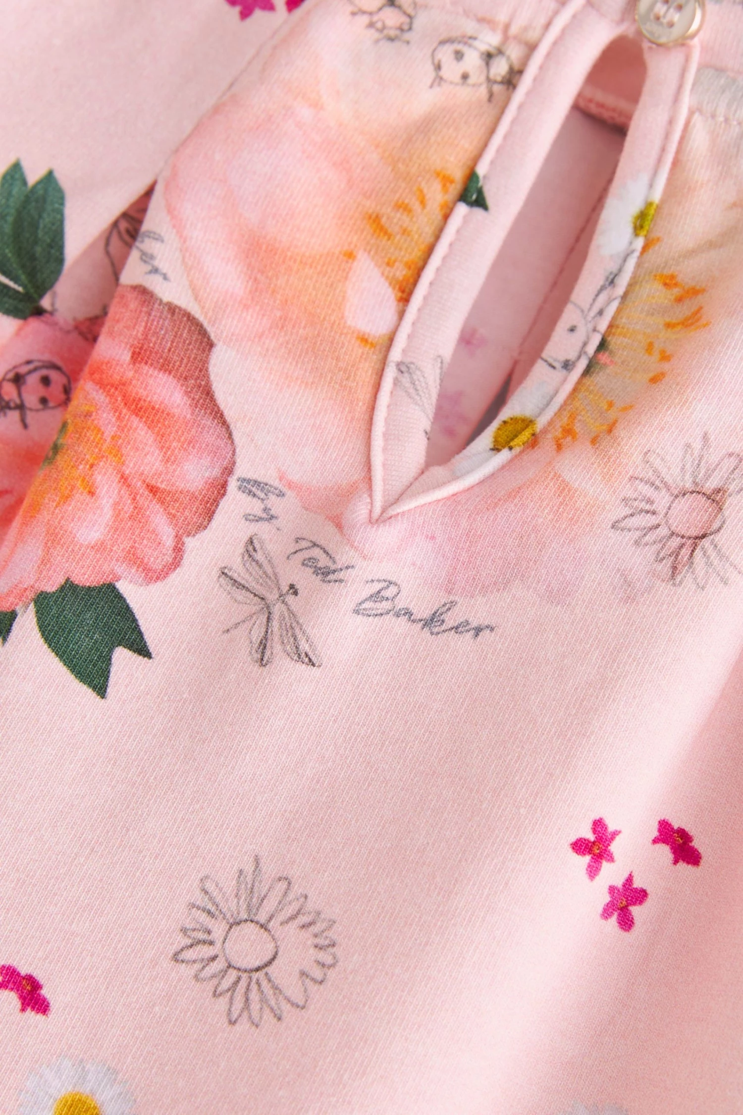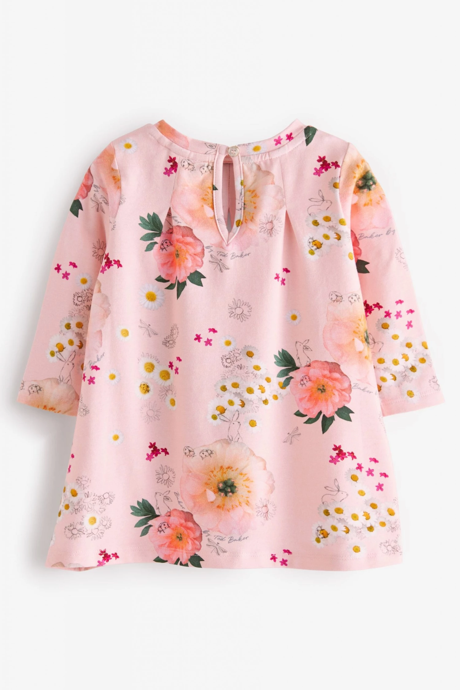 Pretty in pink, this summer dress from Baker by Ted Baker is crafted in a stretchy cotton and patterned with a gorgeous floral print. With a high neckline and long sleeves, it features pleating through the front, bow detail and button loop fastening at the back.
