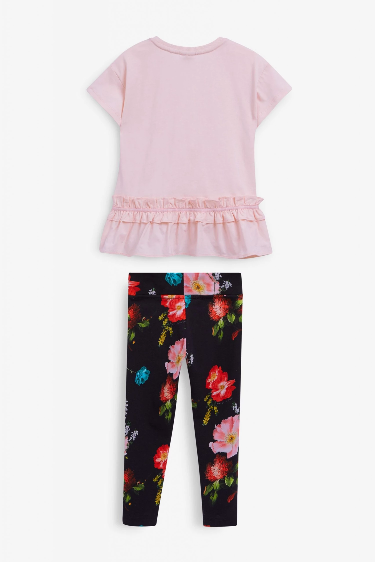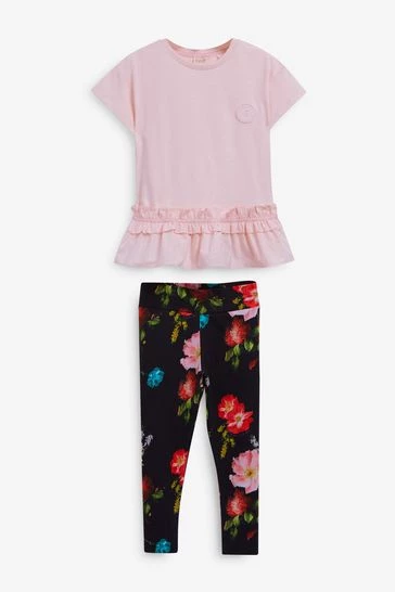 This pretty two piece set from Baker by Ted Baker comprises a cotton t-shirt with frill detail and branded chest badge and stretchy floral leggings with elasticated waist. An easy-to-wear casual outfit for her new summer wardrobe.