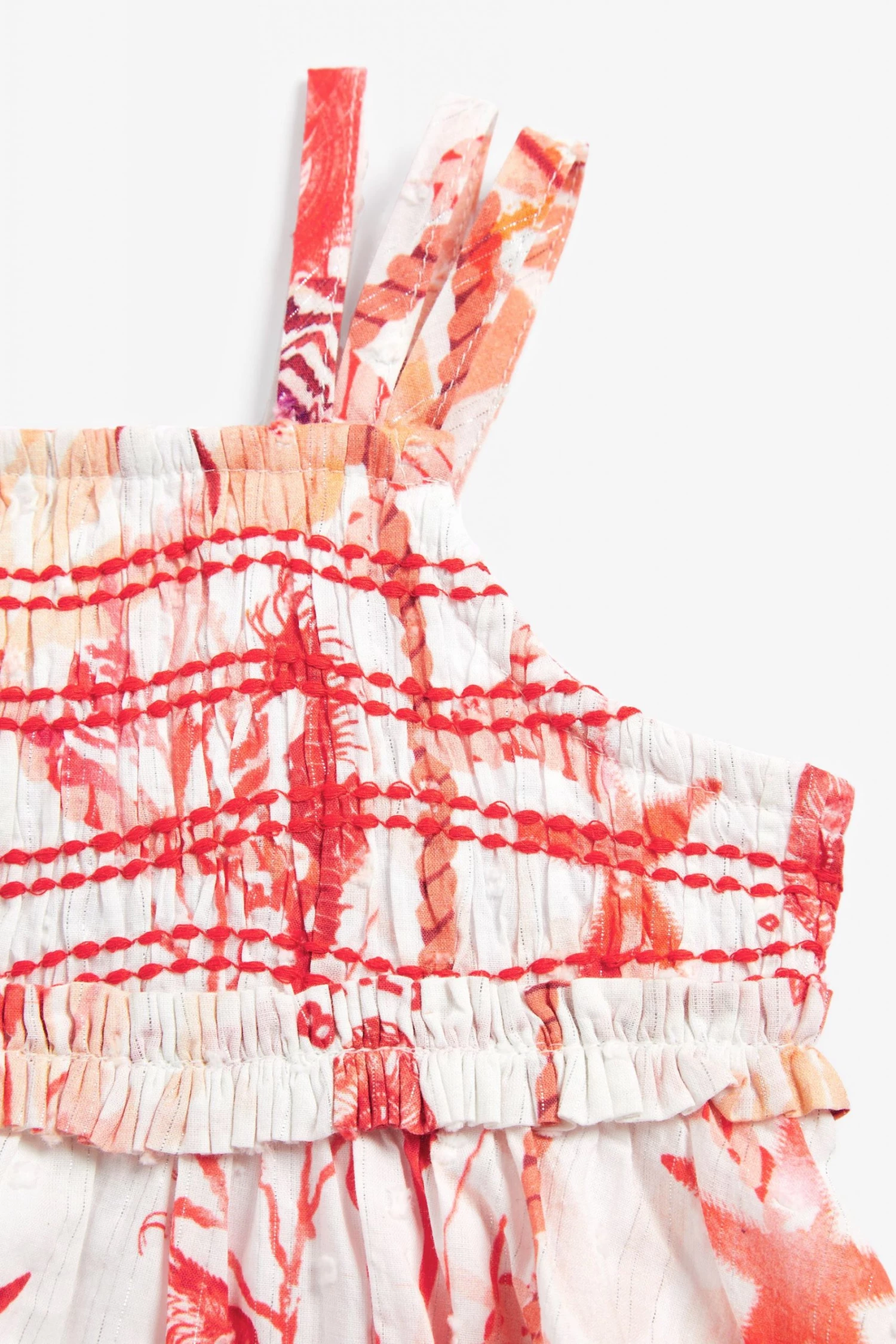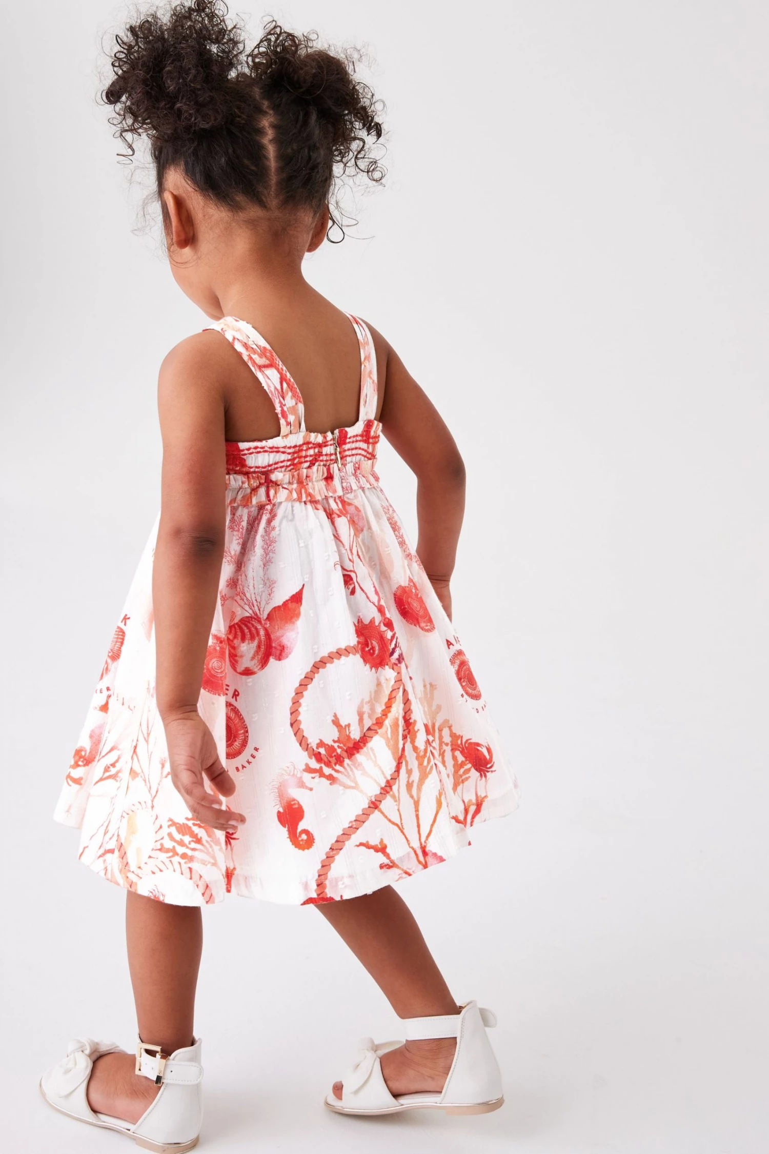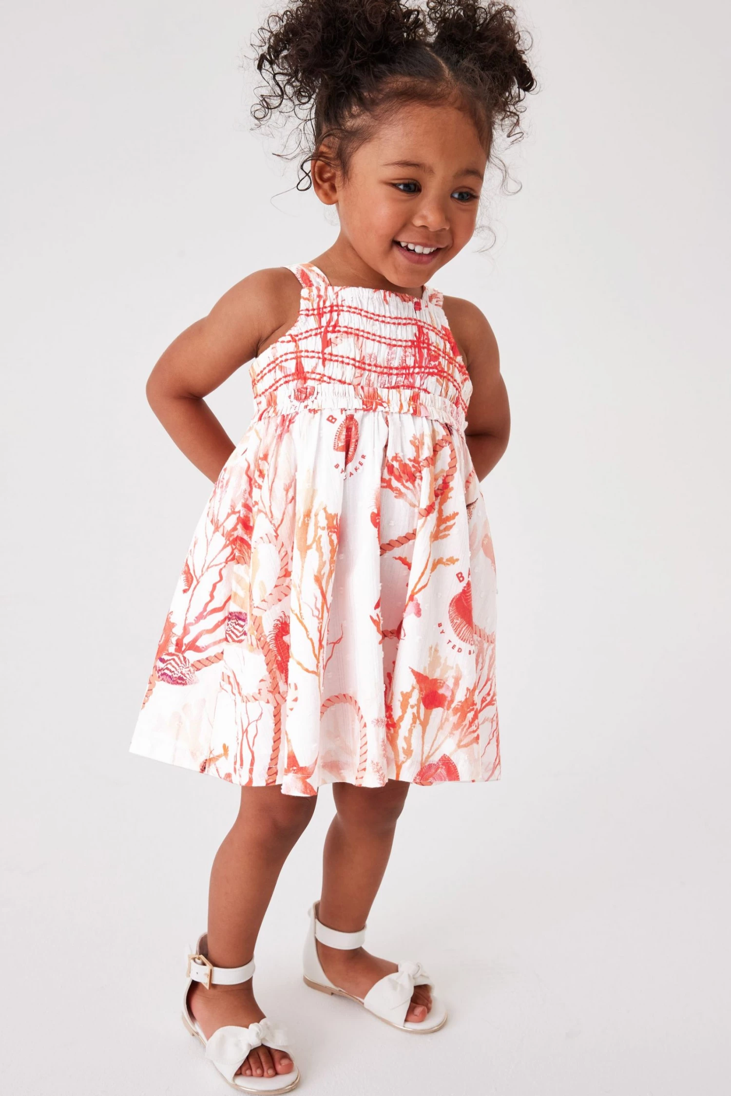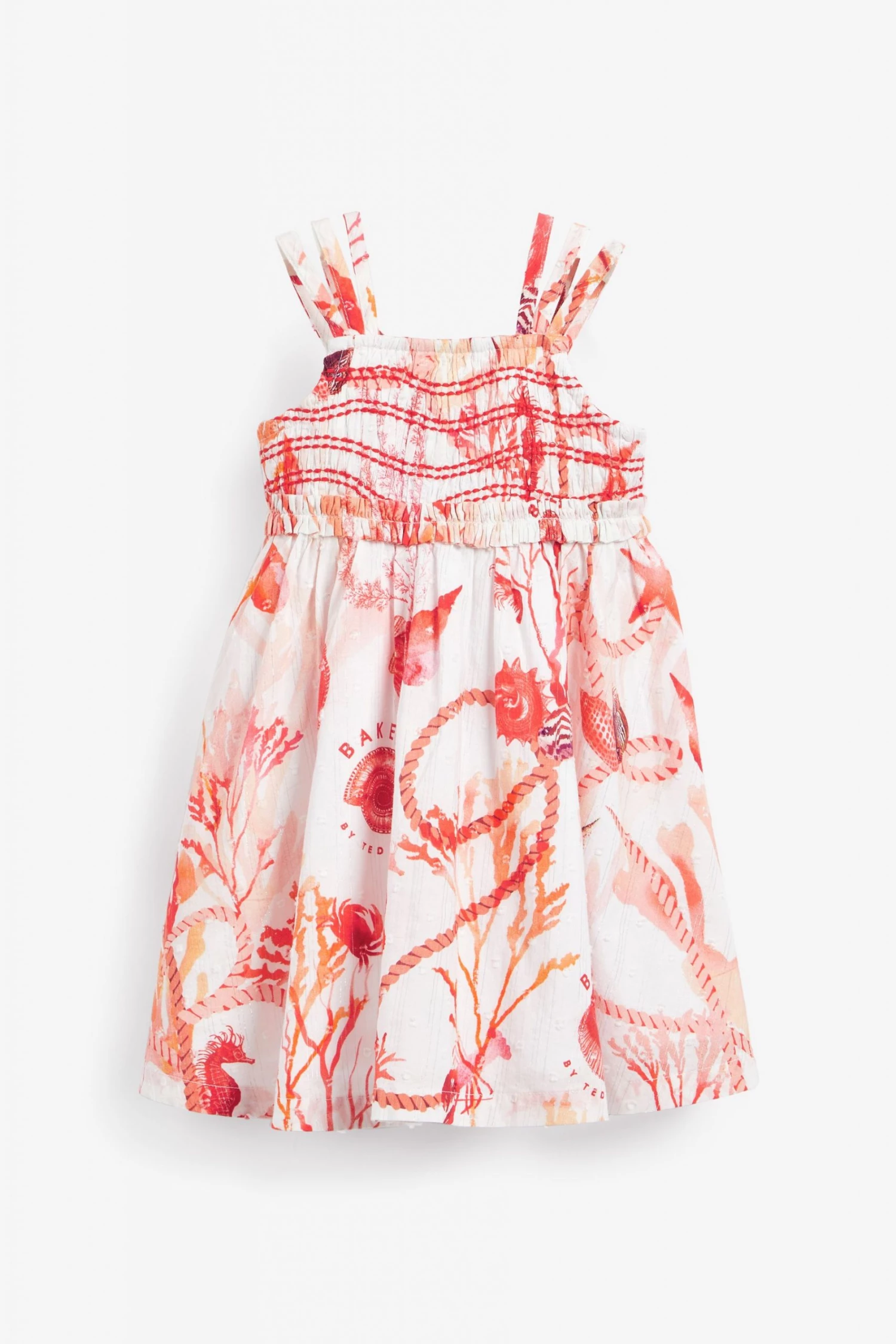 This printed coral pink dress from Baker by Ted Baker is everything a girl could wish for. Made from cotton for all day long comfort, it’s adorned with all-over floral design and pretty shirred bodice detail with red hand stitched accents.