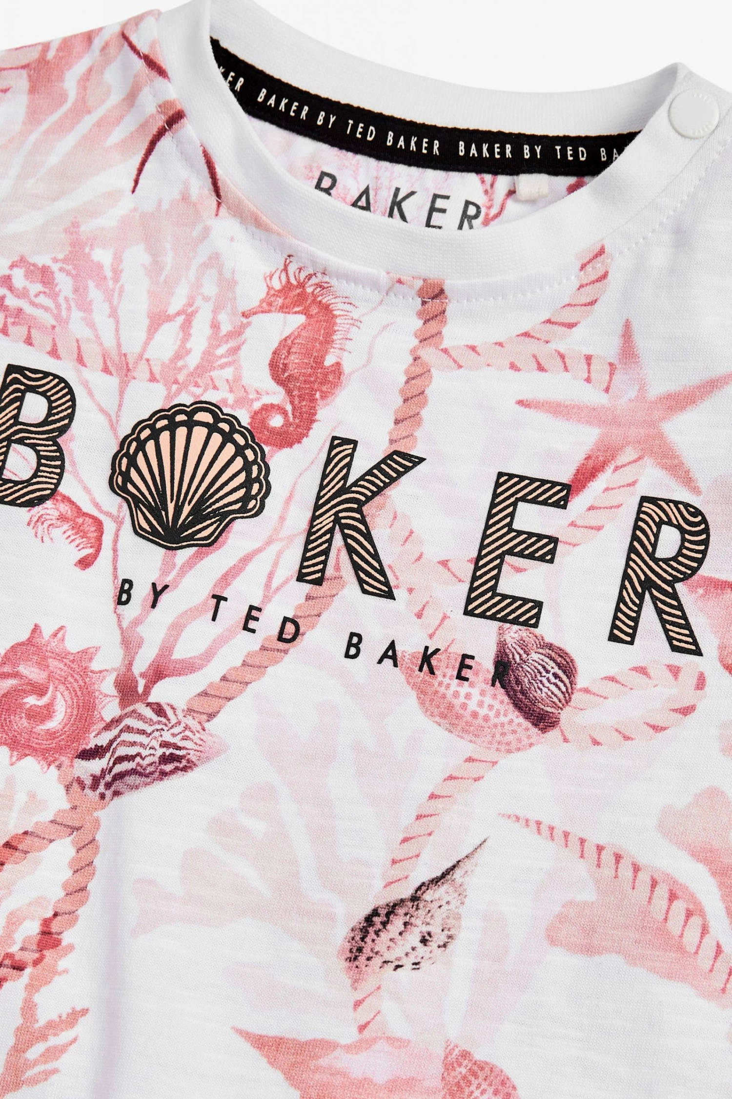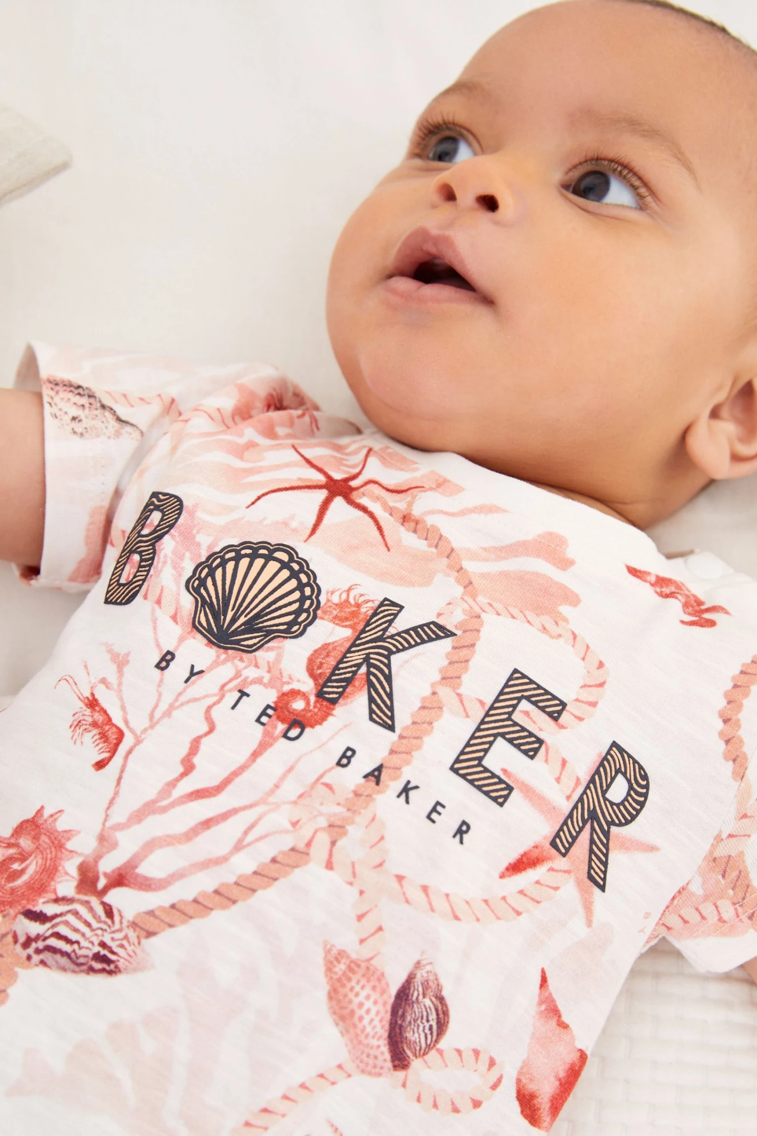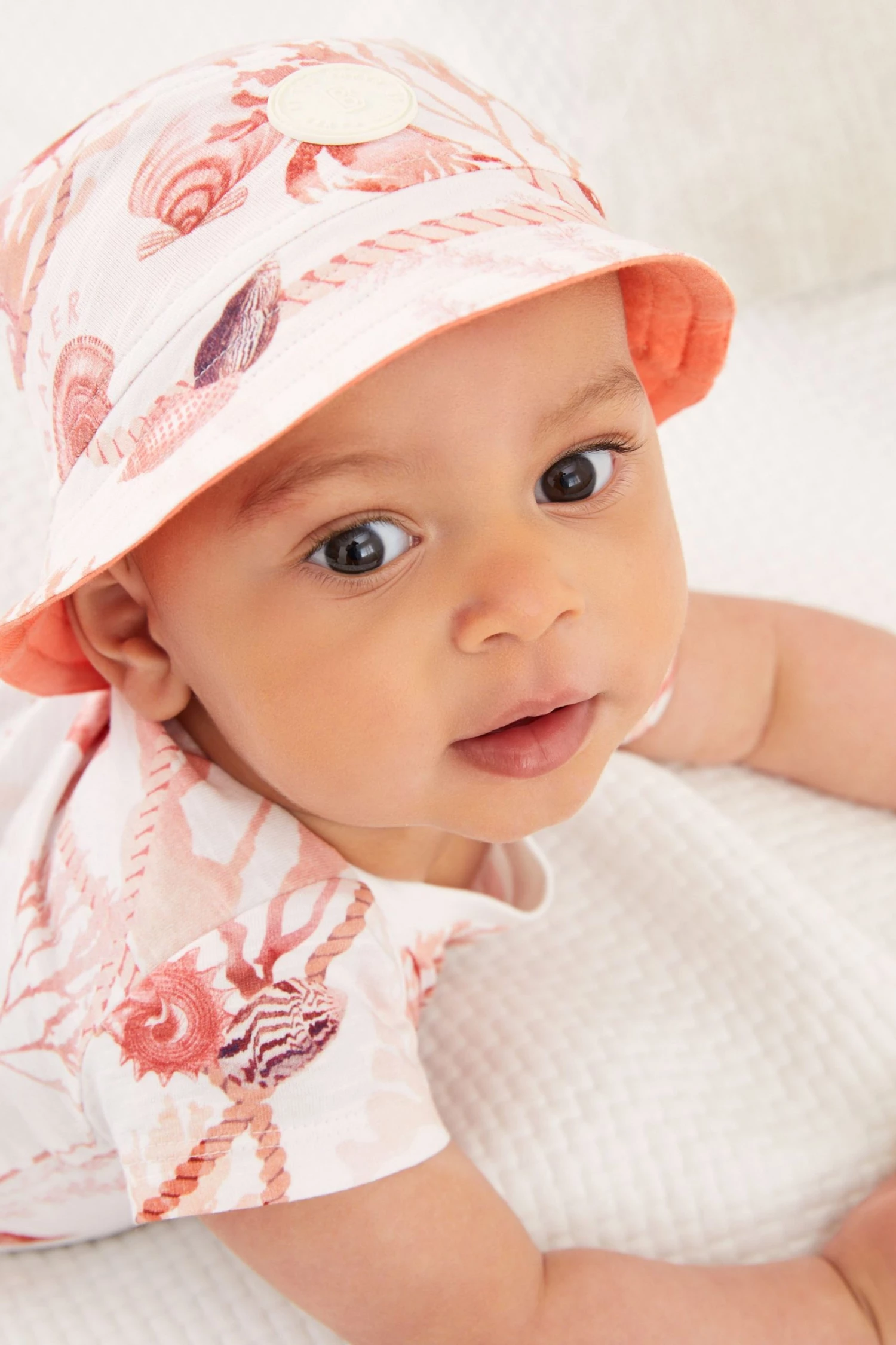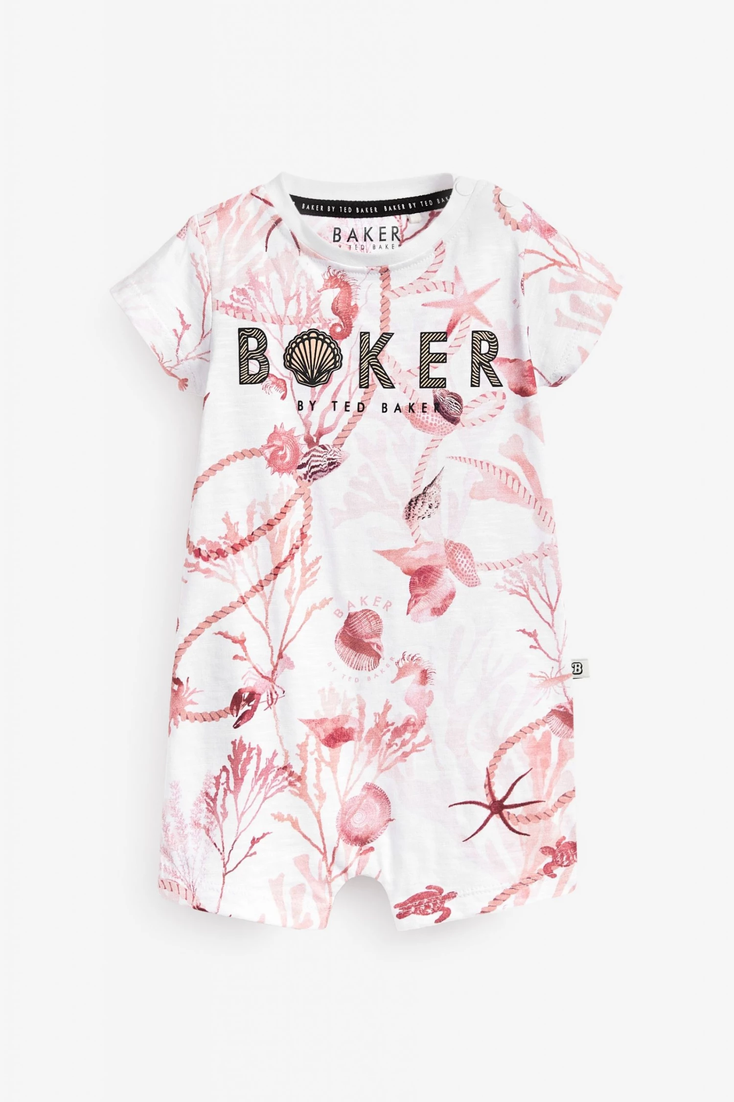 This printed romper and hat set from Baker by Ted Baker is made with supersoft luxurious cotton to give your little one much needed comfort. Featuring all-over print, short sleeves, crew neckline and Baker design in front. Complete with popper fastening on shoulder for the ease of dressing.