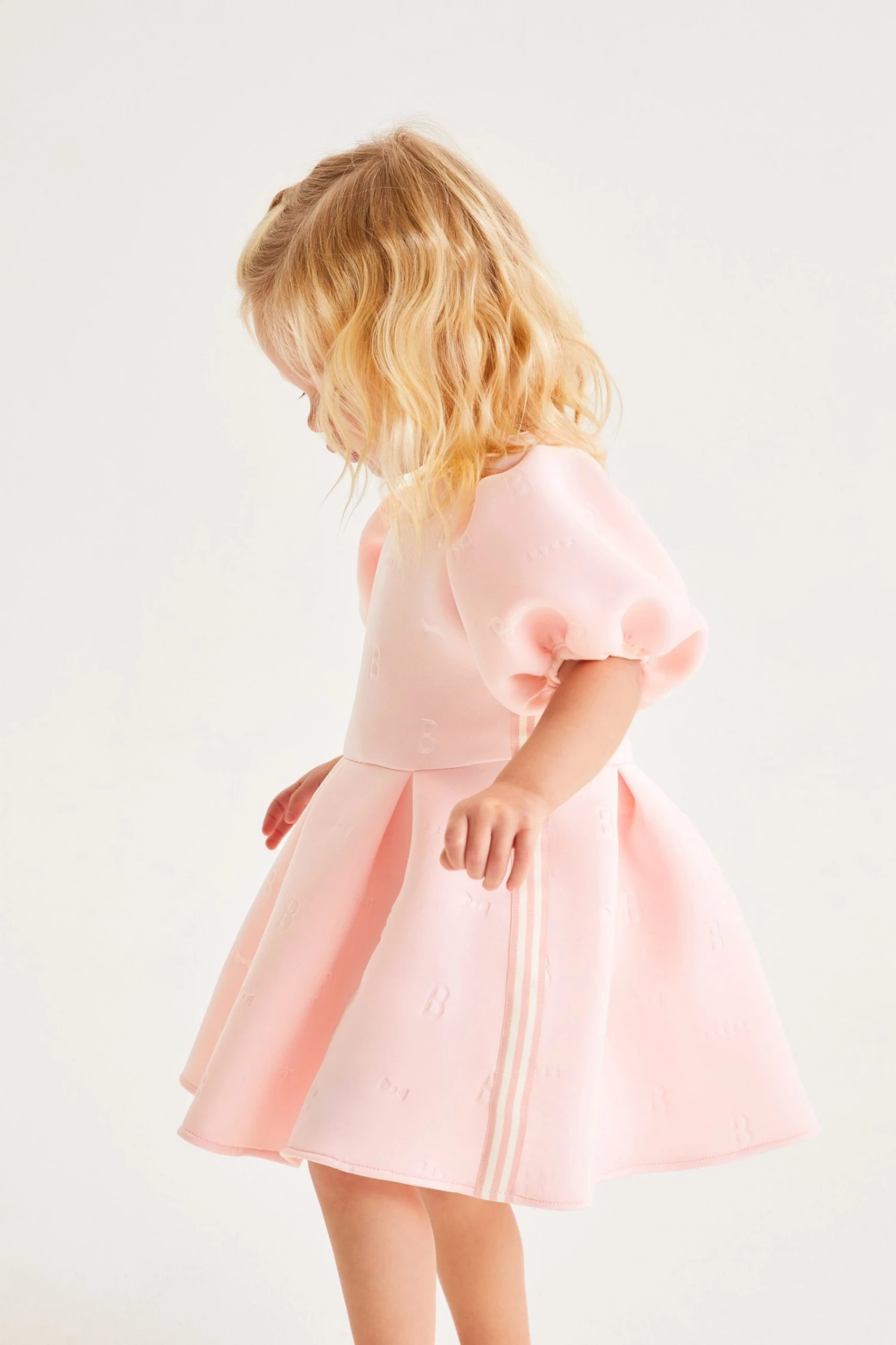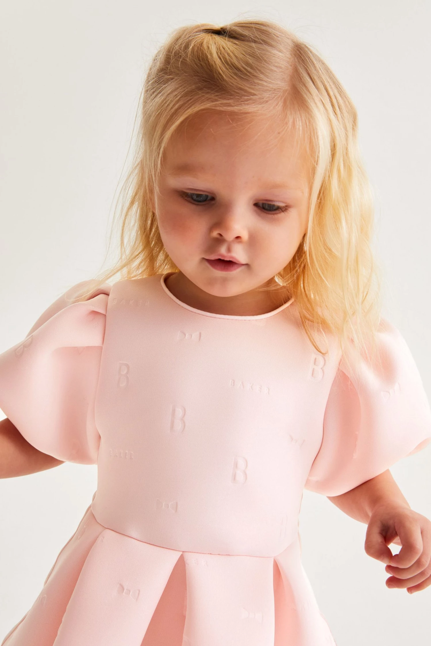 Your little one will look adorable in this pretty scuba dress from Baker by Ted Baker. Featuring embossed branding on the fabric and fashionable puff sleeve details.