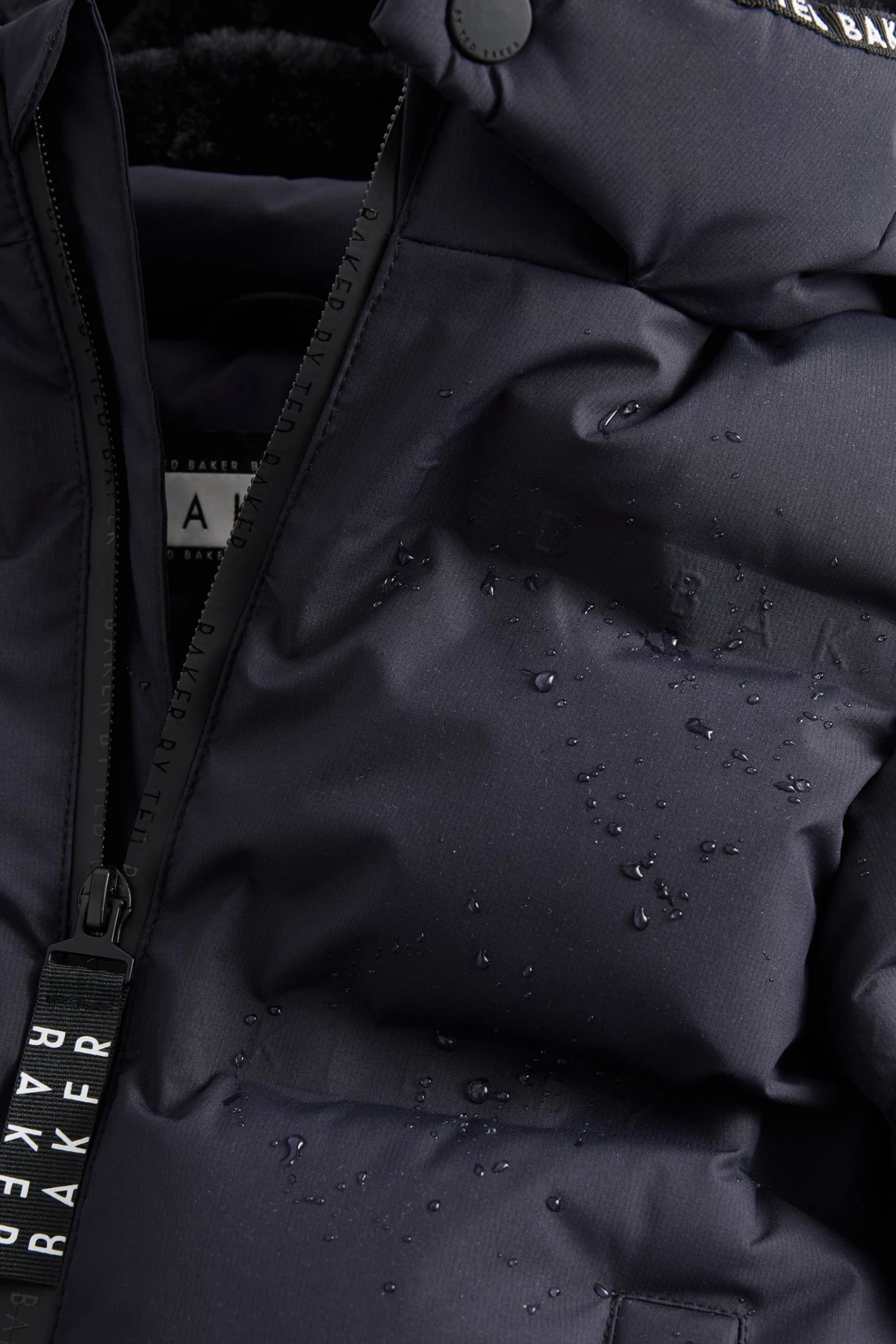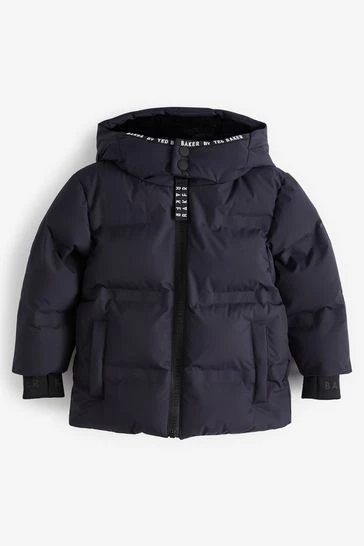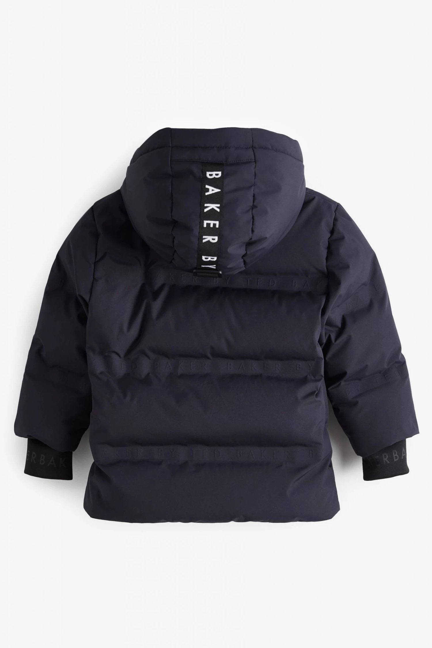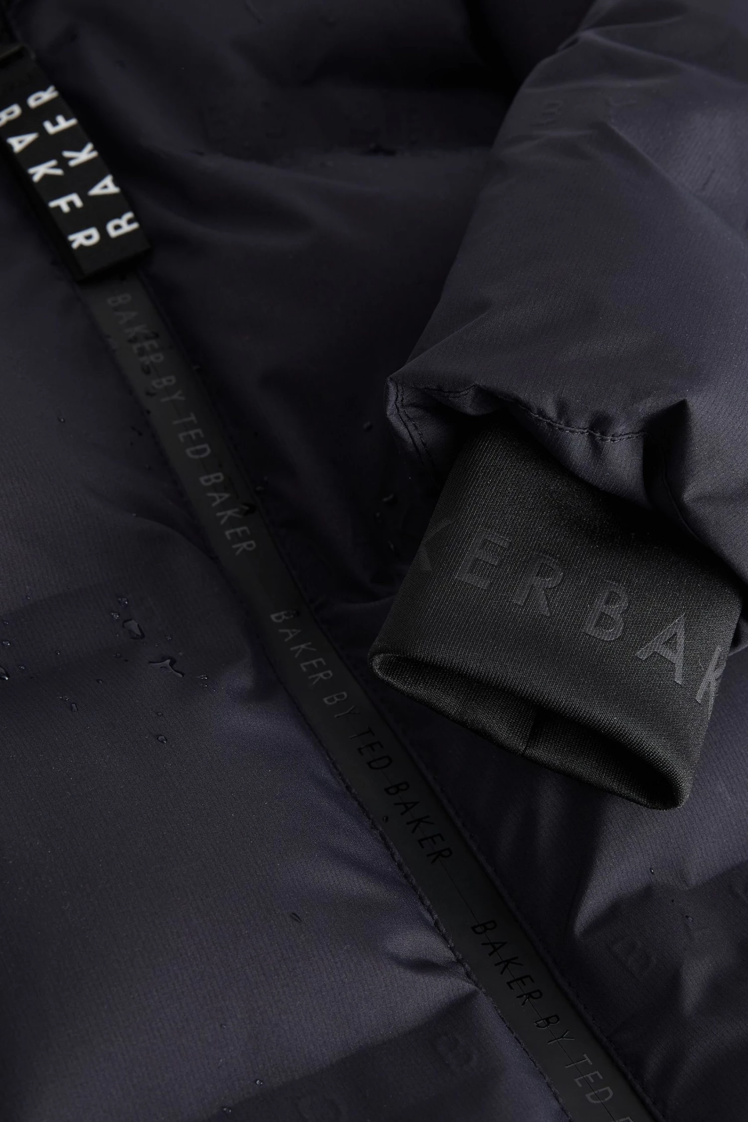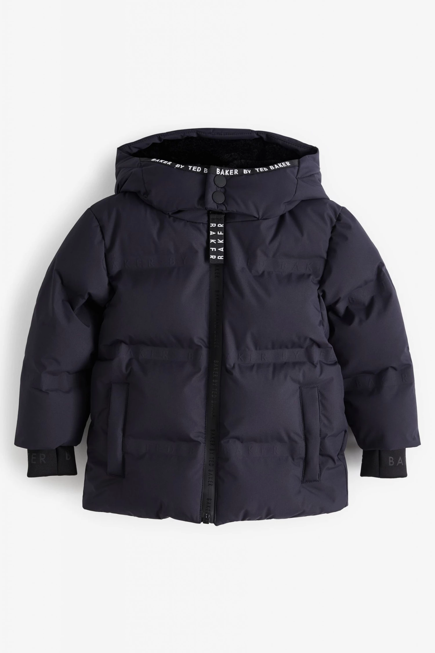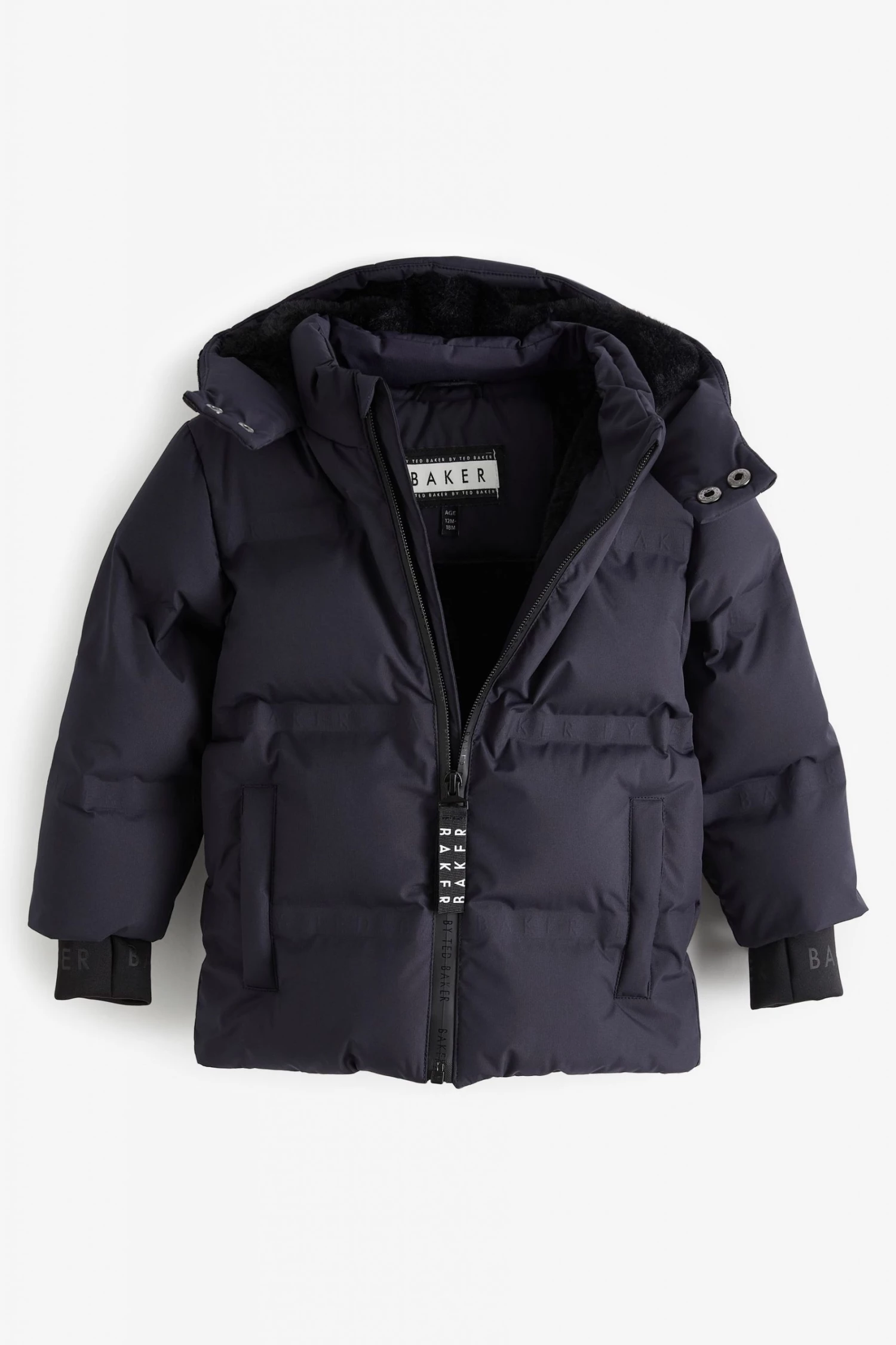 This short padded coat from Baker by Ted Baker is designed in a windproof and shower resistant fabric in a warm, heavyweight style. Featuring cosy fleece lined pockets, branded zip pull, hood with branded tape detail and storm cuffs.