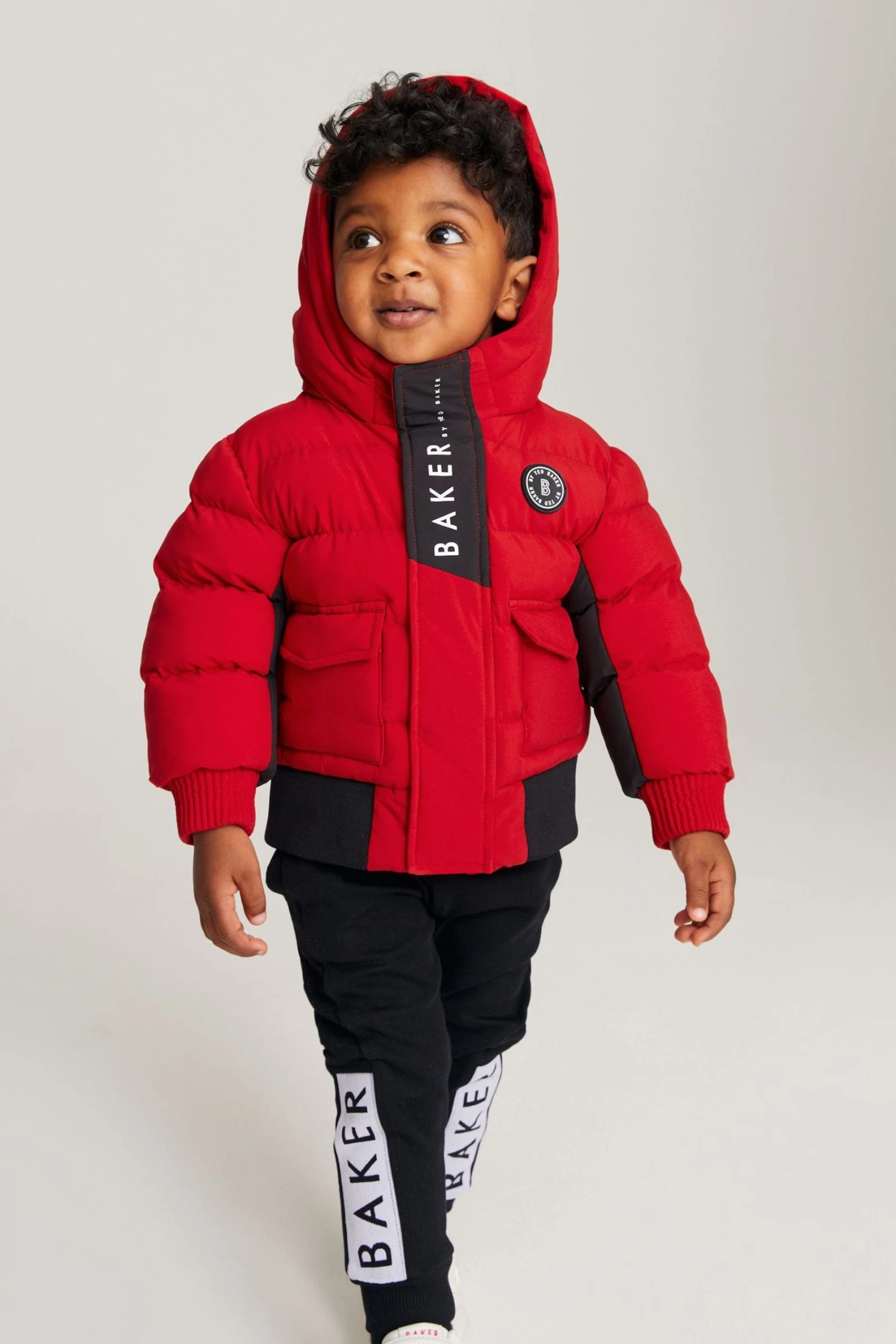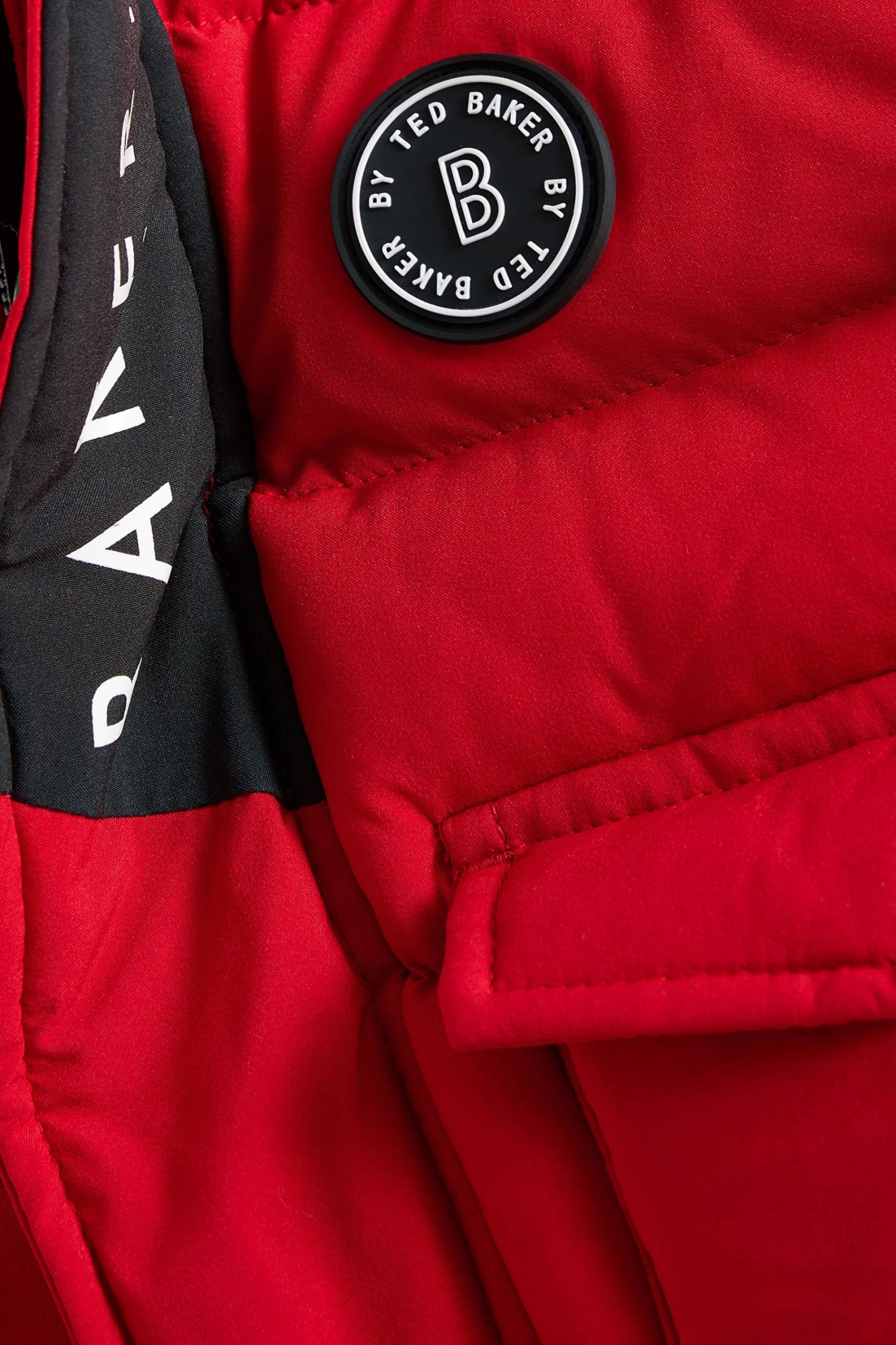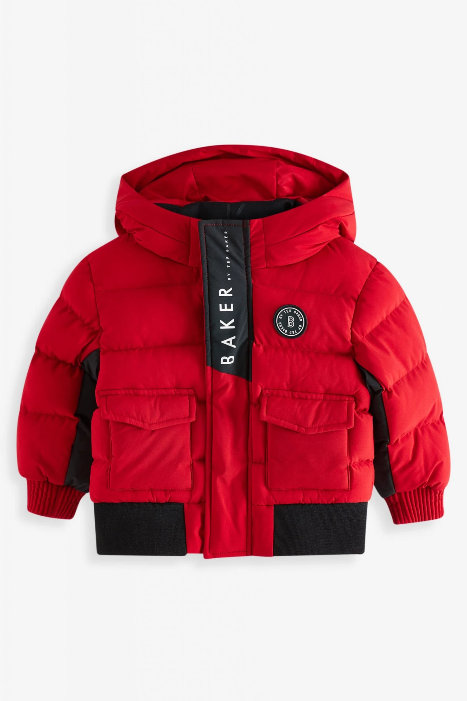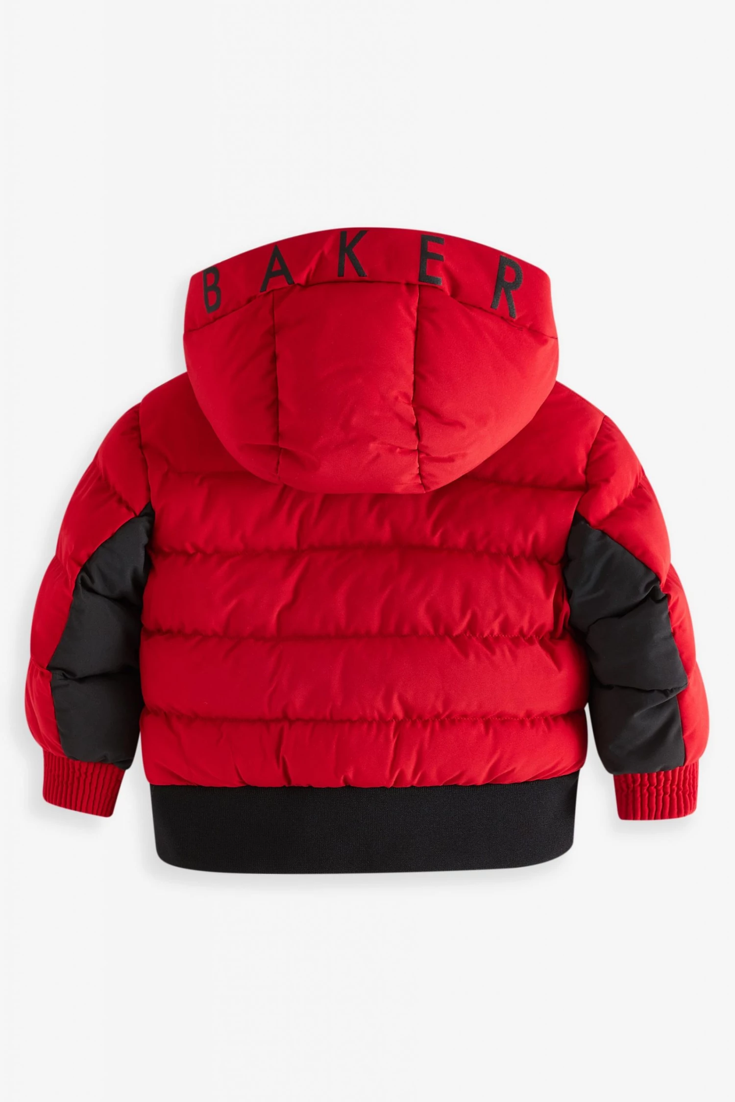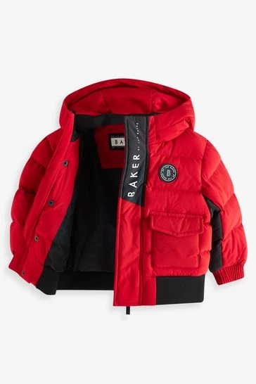 This bright puffer coat from Baker by Ted Baker is designed in a windproof and shower resistant fabric in a midweight style. Featuring ribbed cuffs, elasticated hem, branded zip pulls, hood with contrast Baker branding and fun internal graphics.