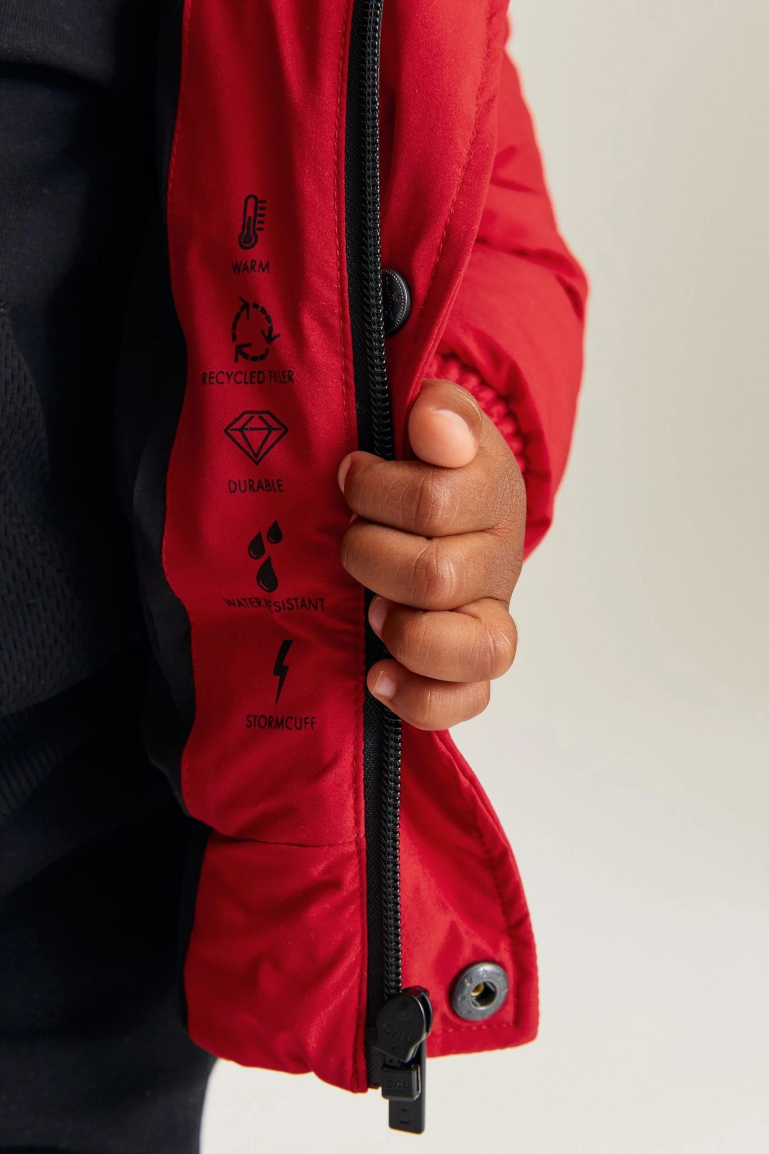 Shell 100% Polyester. Lining 100% Polyester. Wadding 100% Polyester. Rib 98% Polyester, 2% Elastane.