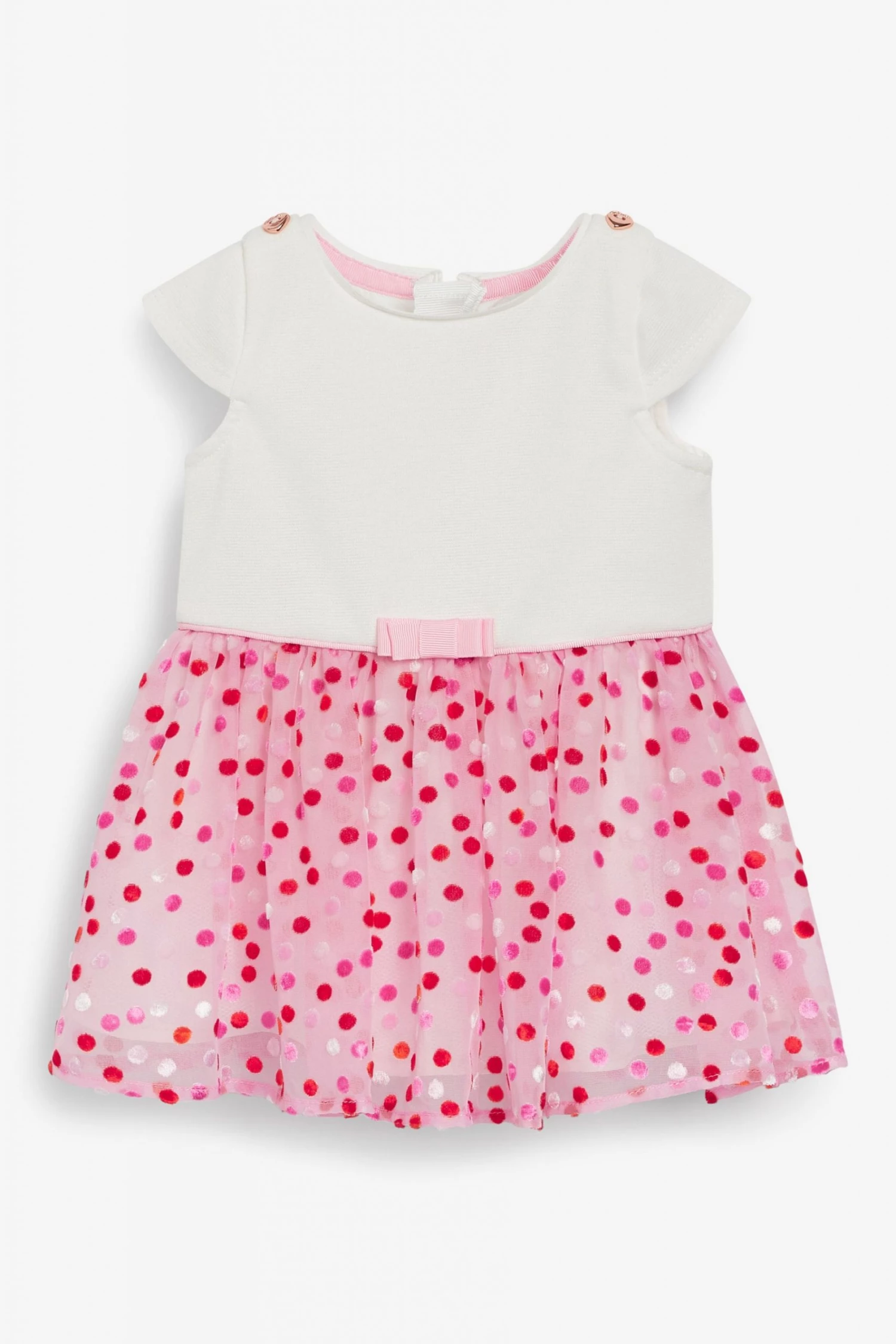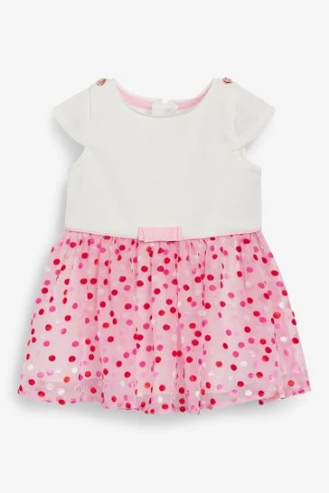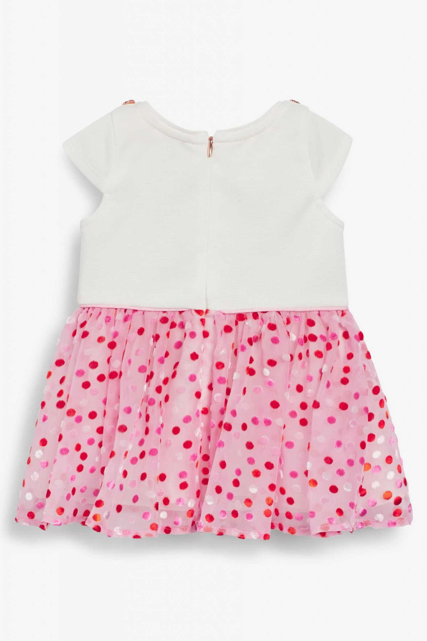 Get your party on with this gorgeous spot flock dress by Ted Baker. Designed with a pink mesh skirt that is perfect for twirling, this dress is guaranteed to make your newborn the star of the show.