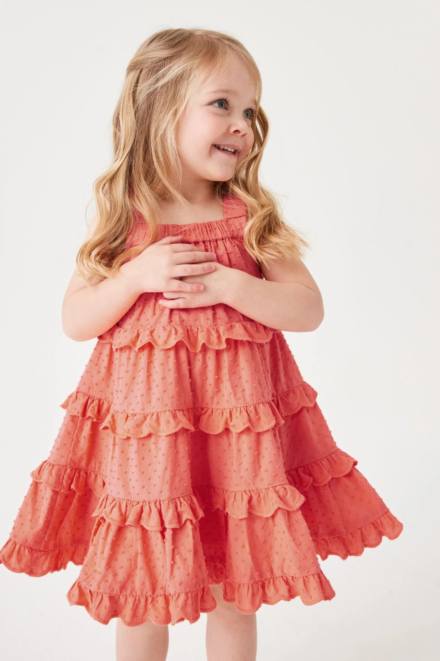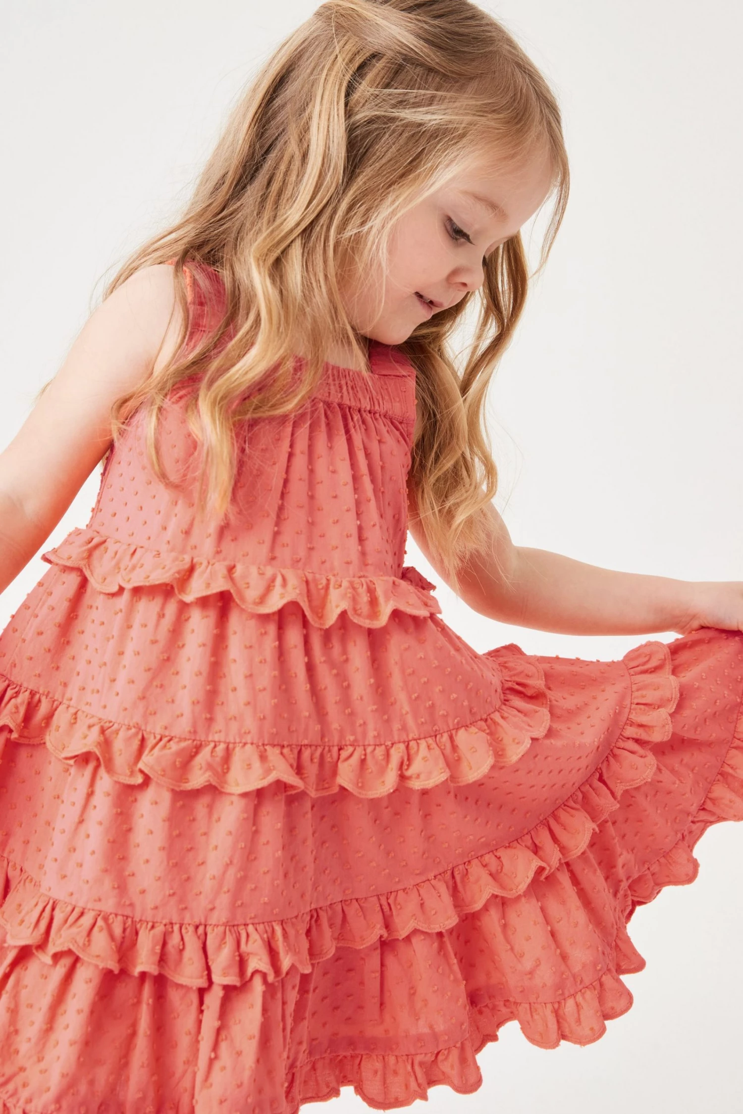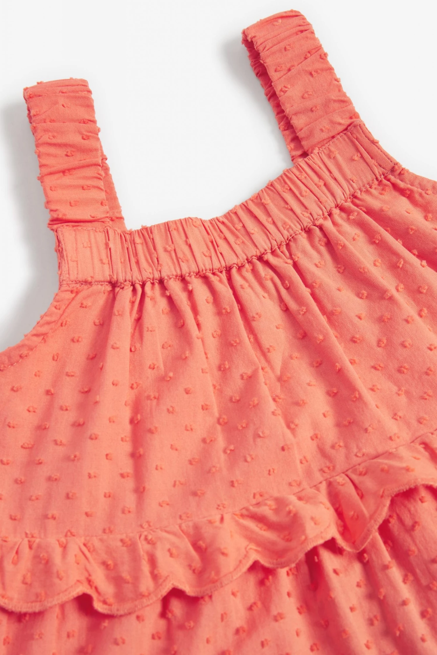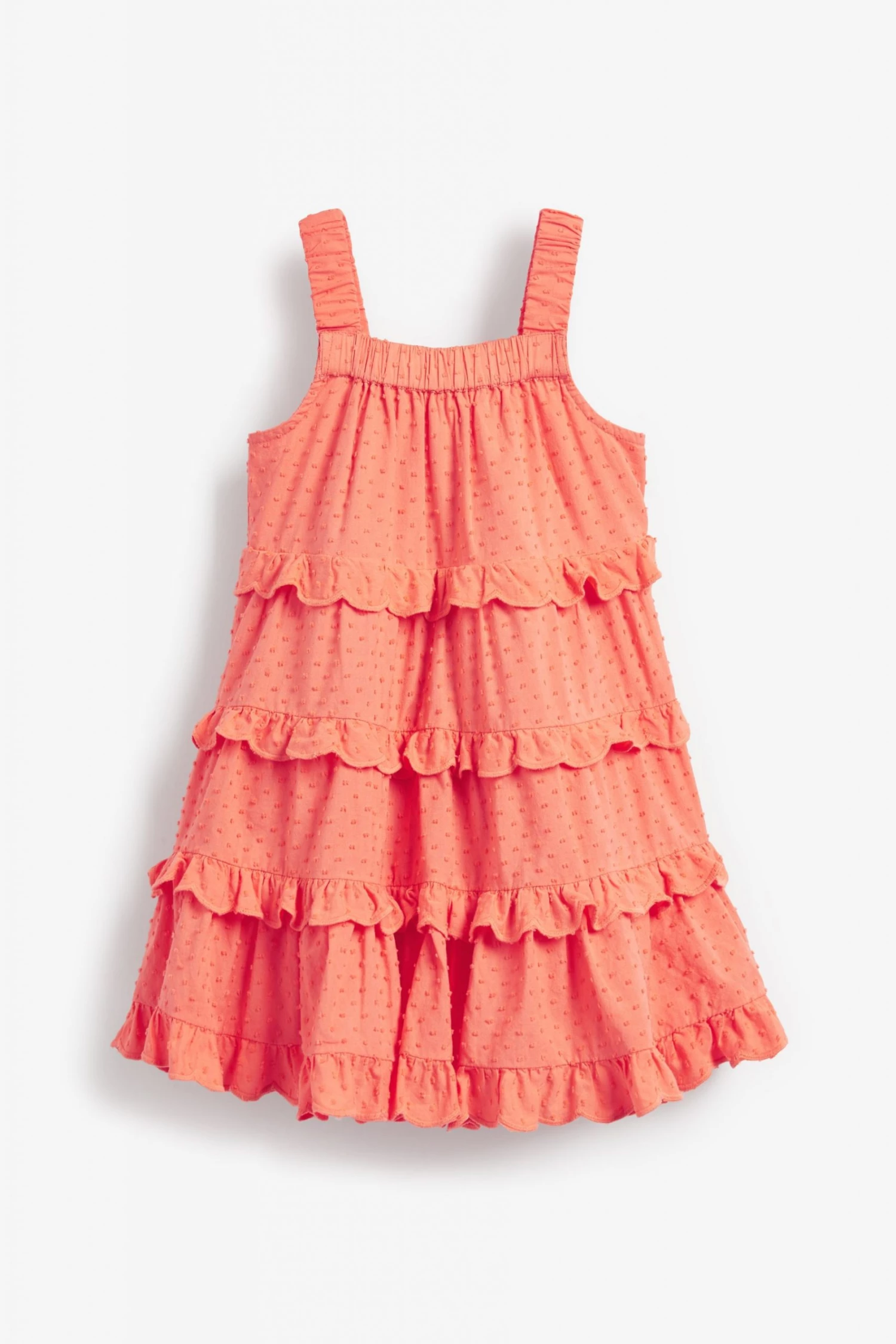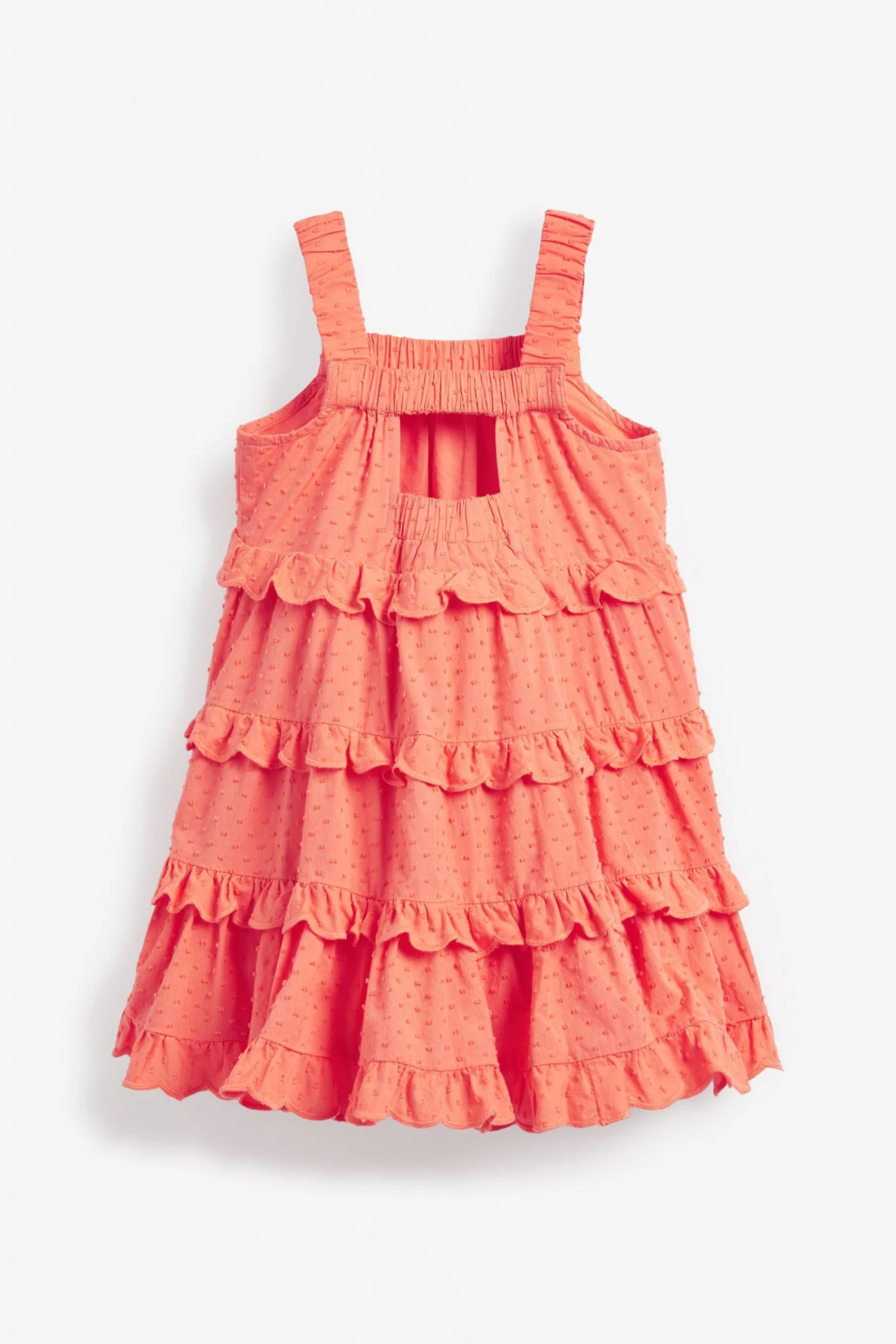Perfect summer dress in coral pink with this ruffled tiered dress by Ted Baker. Featuring elasticated chest and straps with a cascade of floaty tiers in soft and cooling cotton.