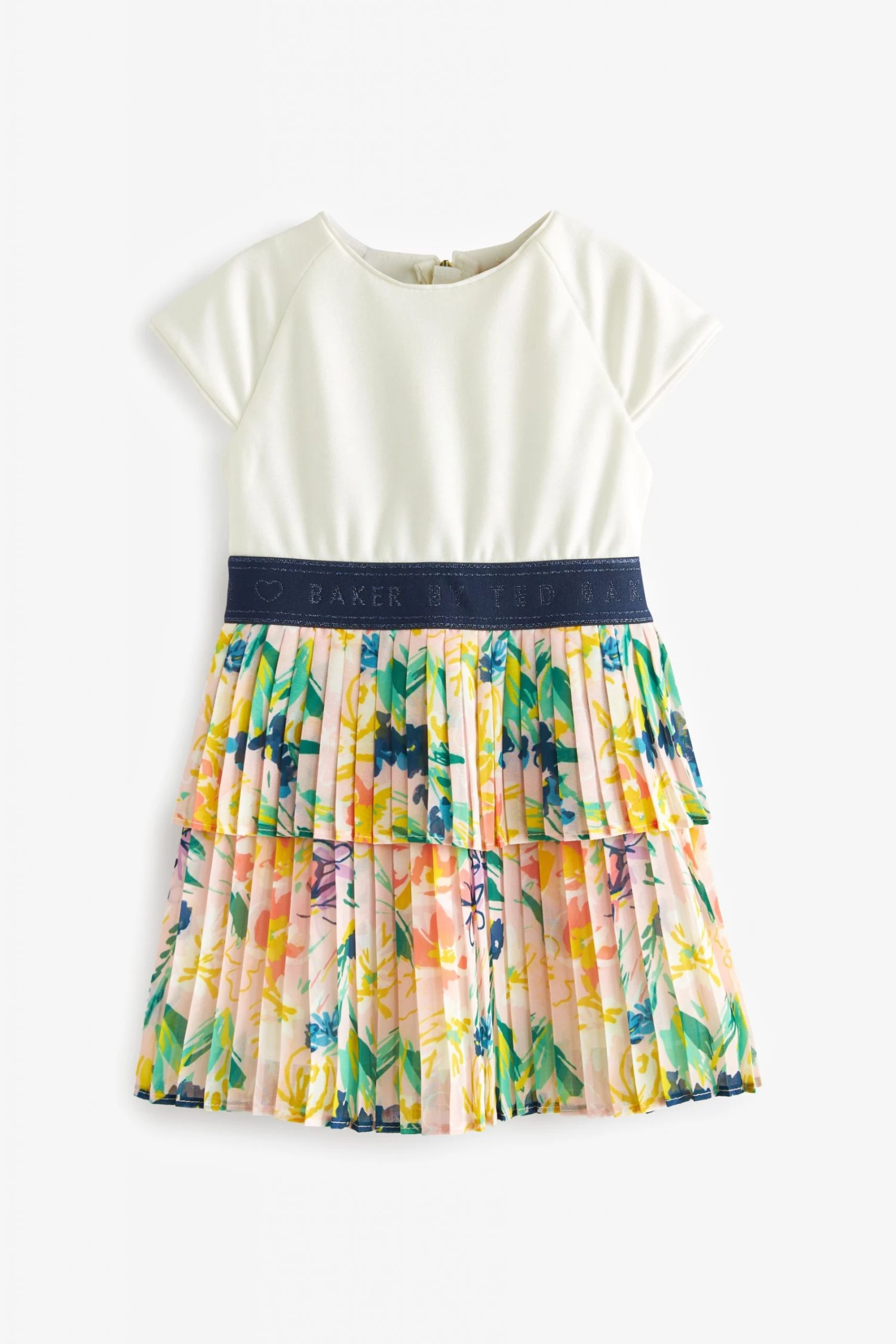 This gorgeous dress from Baker by Ted Baker is designed with a crew neck, short sleeves and comfy branded waistband for a relaxed fit. Featuring a lovely tiered, pleated skirt with an all-over floral print. Finished with a concealed zip-up back for easy dressing.