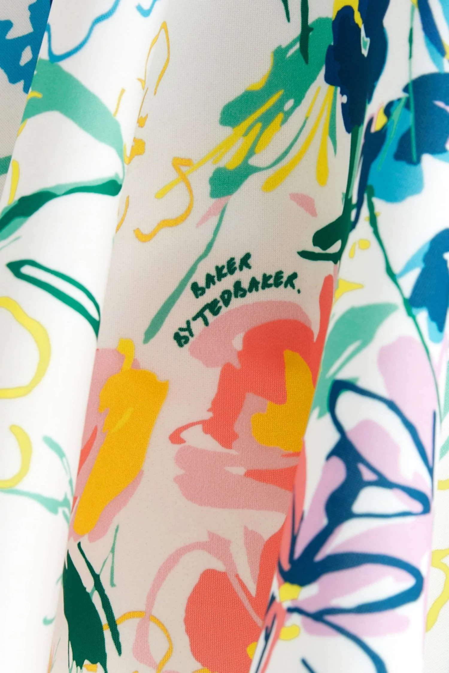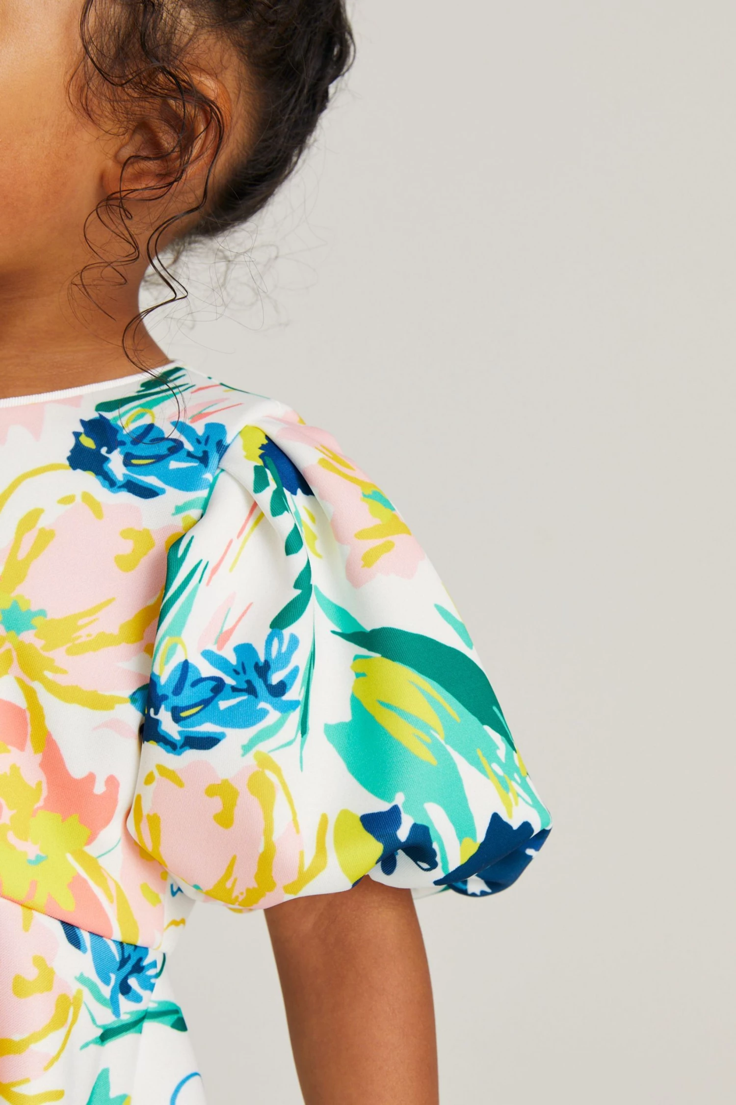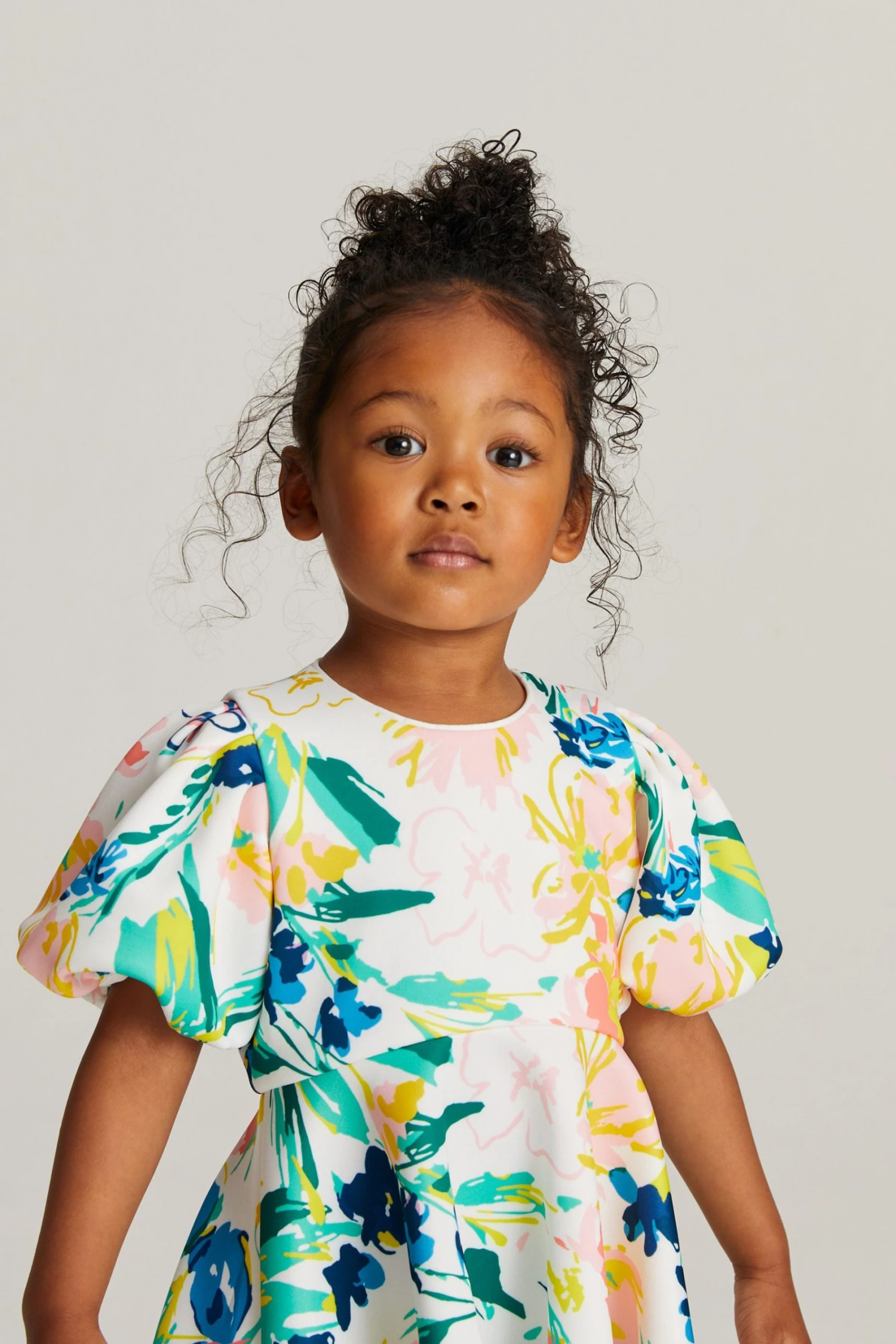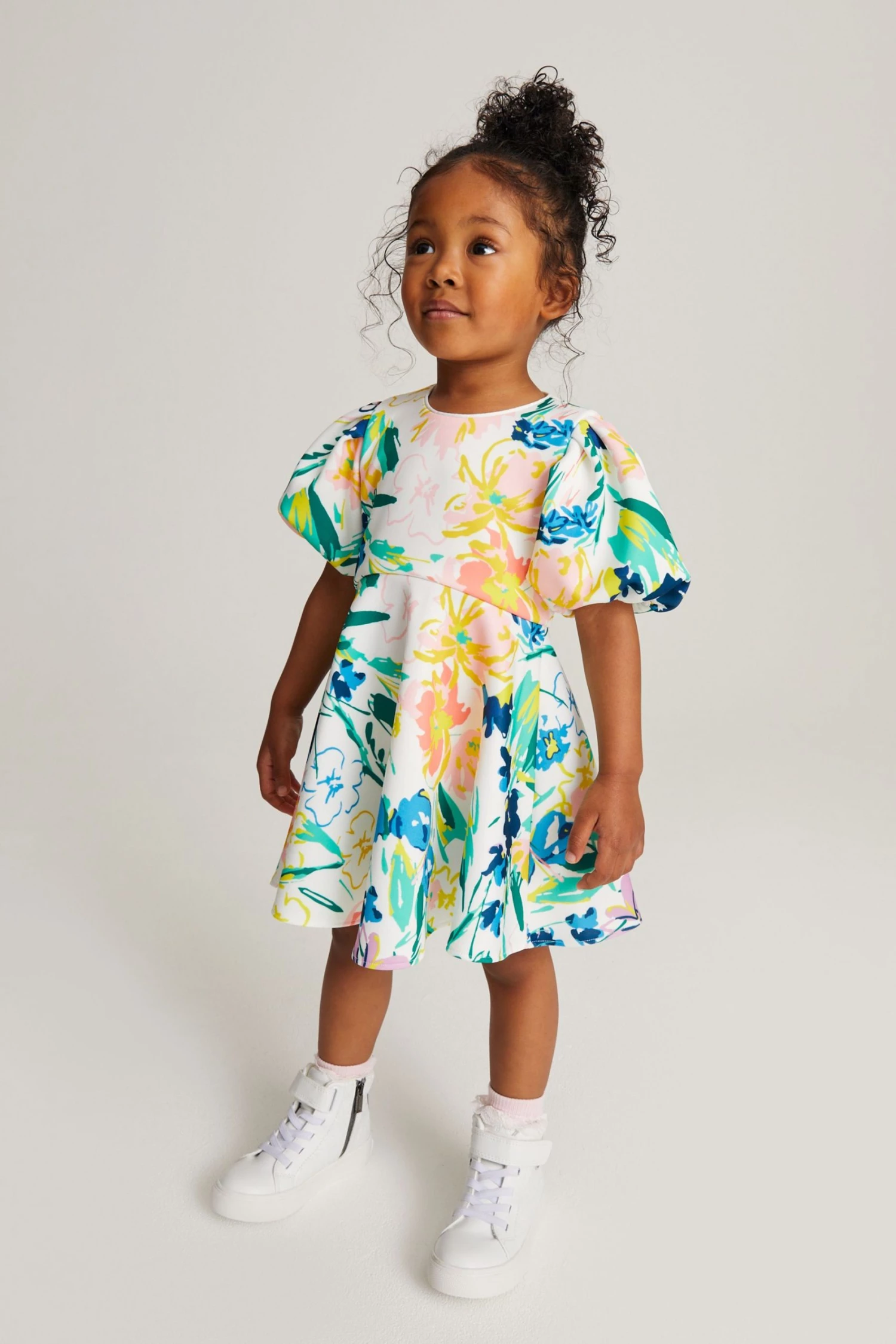 This pretty dress from Baker by Ted Baker is made in a beautiful floral print scuba fabric. Designed with a round neck bodice with puff sleeves and full, twirl worthy skirt with soft lining. It’s finished with a concealed zip fastening at the back. Perfect for parties, weddings and special occasions.
