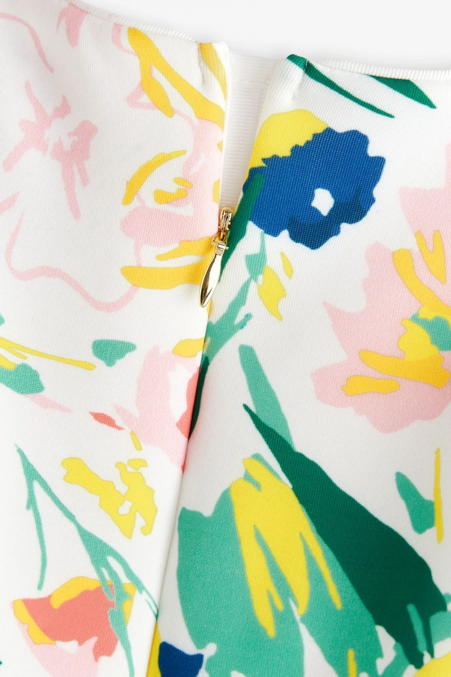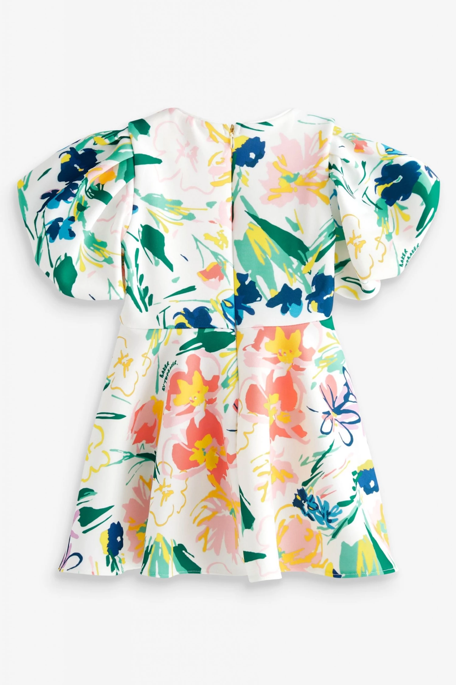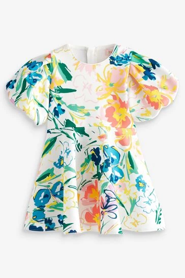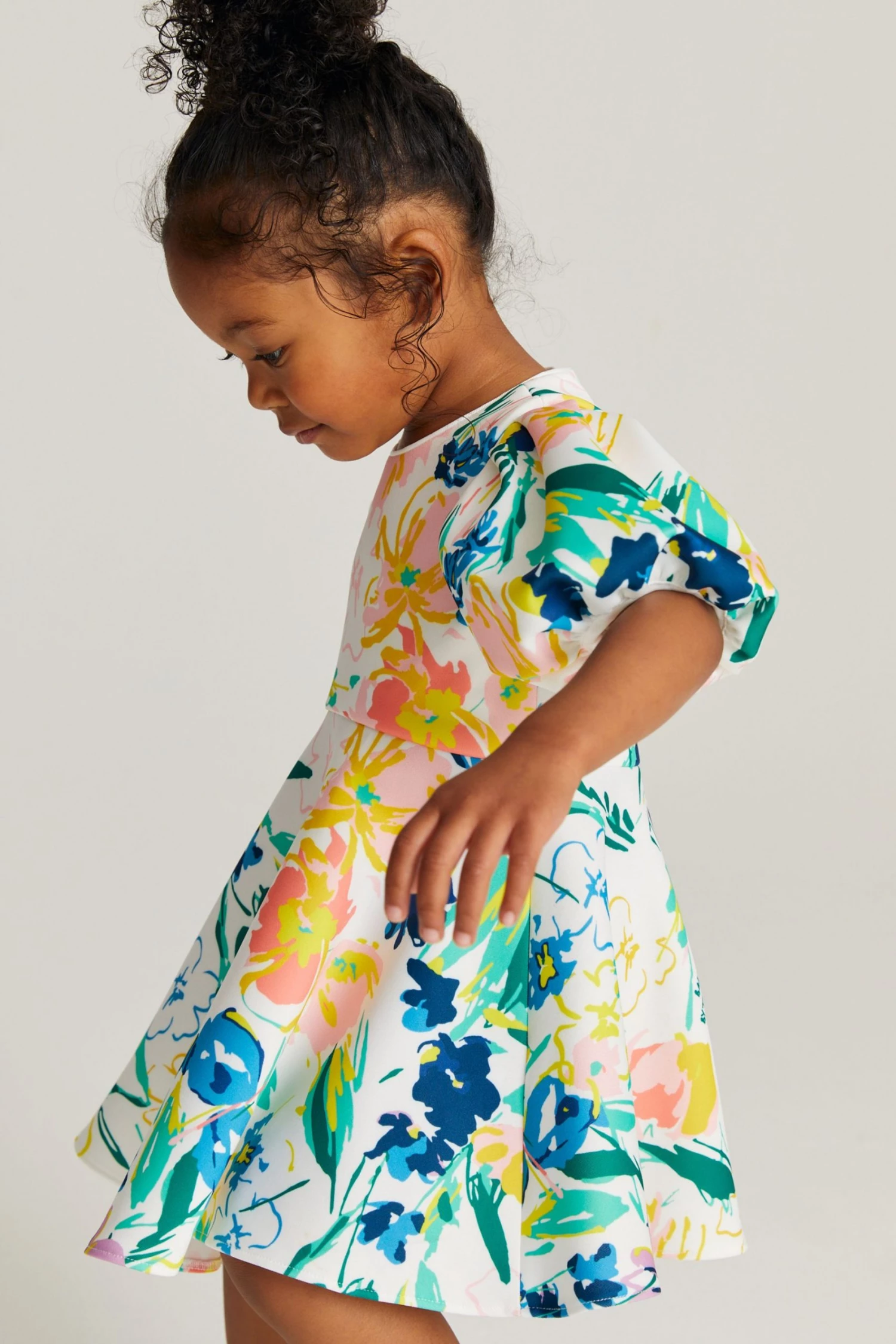 This pretty dress from Baker by Ted Baker is made in a beautiful floral print scuba fabric. Designed with a round neck bodice with puff sleeves and full, twirl worthy skirt with soft lining. It’s finished with a concealed zip fastening at the back. Perfect for parties, weddings and special occasions.